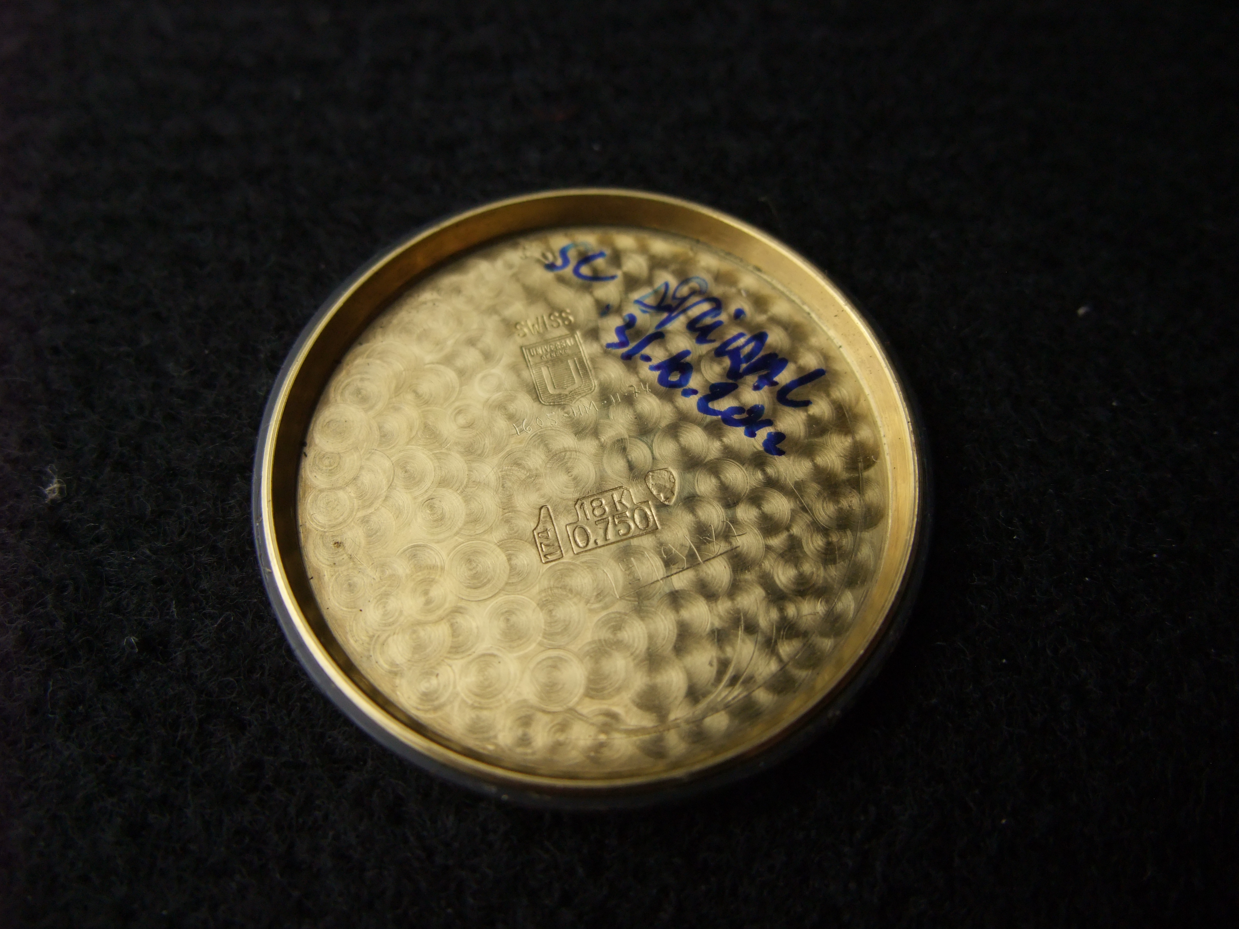 Furthermore, look at the edges of the engraved letters. They are too pronounced. The case back shows wear, and over many years, those edges, or ridges, should be worn down.