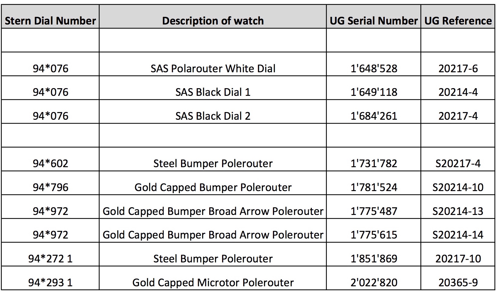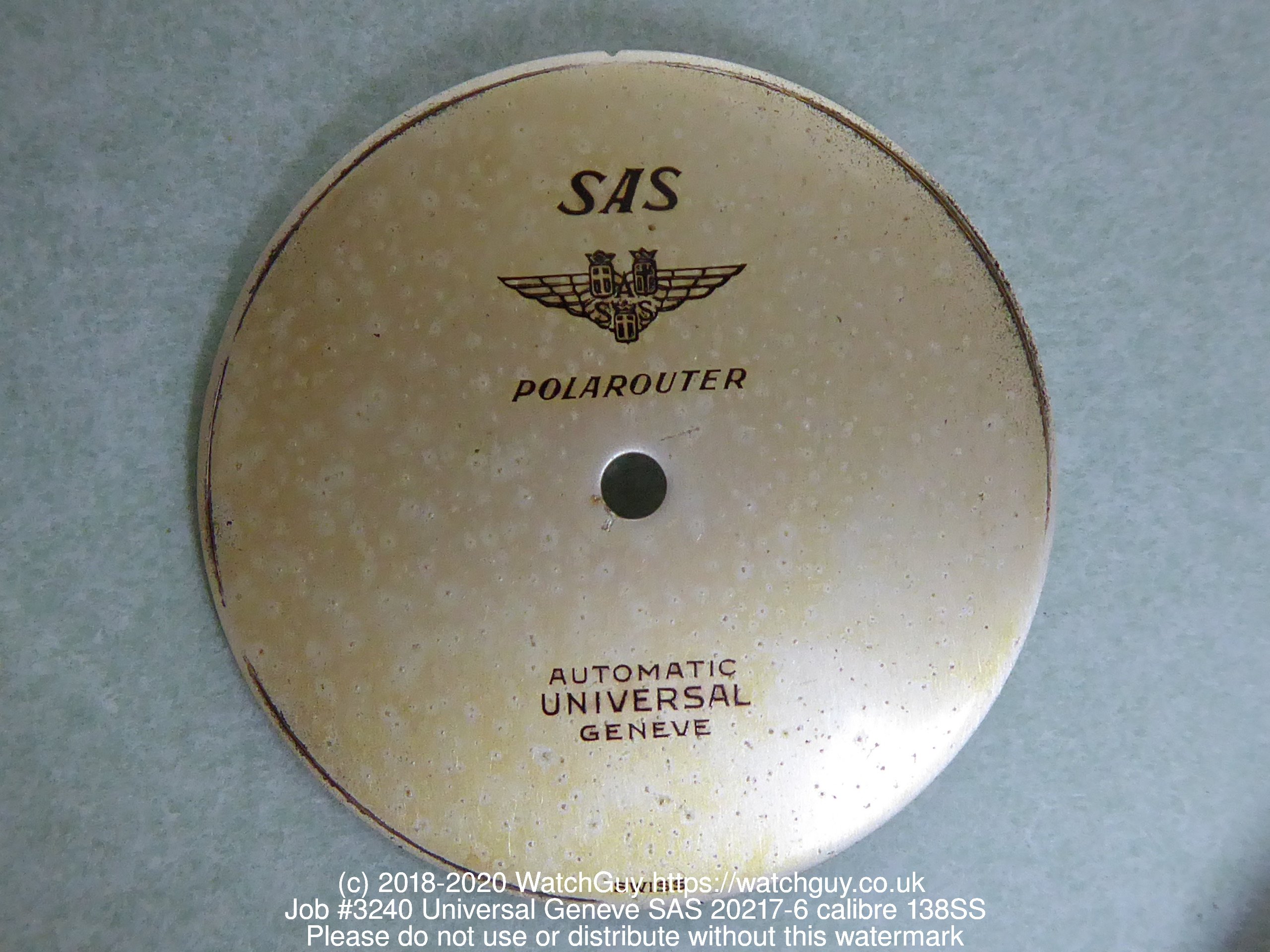 These black SAS dials are not redialled Polarouter or Polerouter dials. The reason I can be sure of that is because there are no holes where a logo had previously been riveted to the dial. All UG logos on Polerouter dials are riveted in place, something that I only realised myself recently.