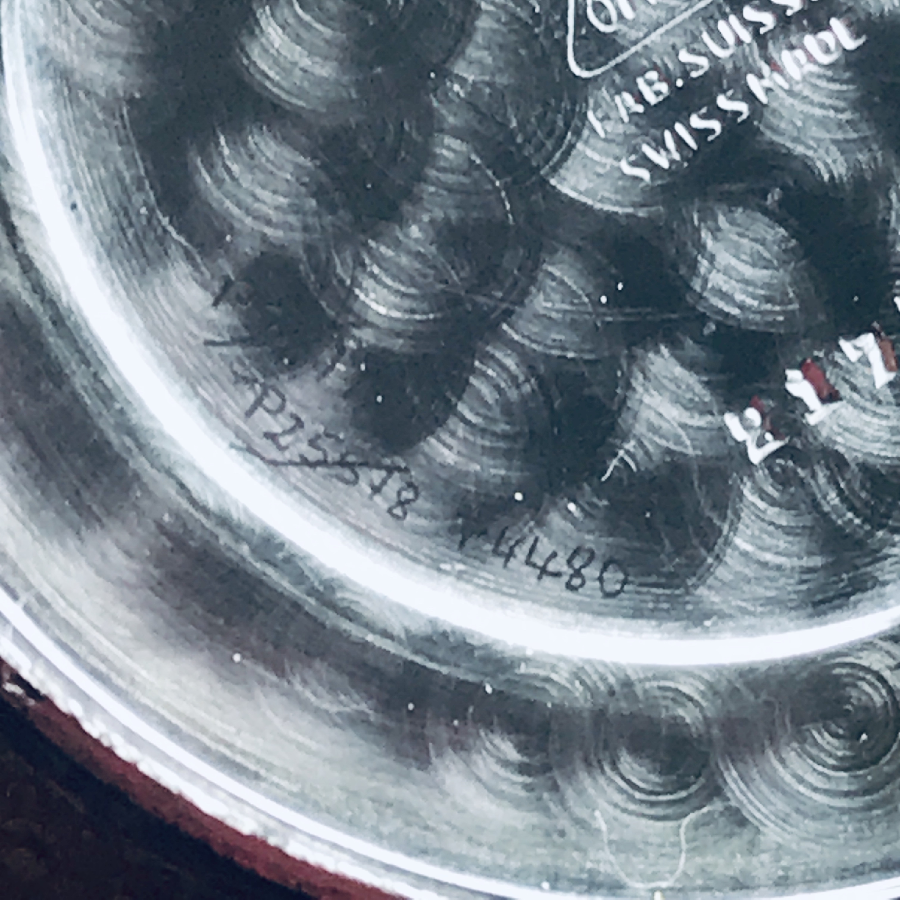 Service signatures on the 2179 case back. Had a total of nine, now on the crappy photo you can see the three interesting ones, the begin with the letter P, to scratched across. In my defense I was really testing the 8 ball, finally got one.
