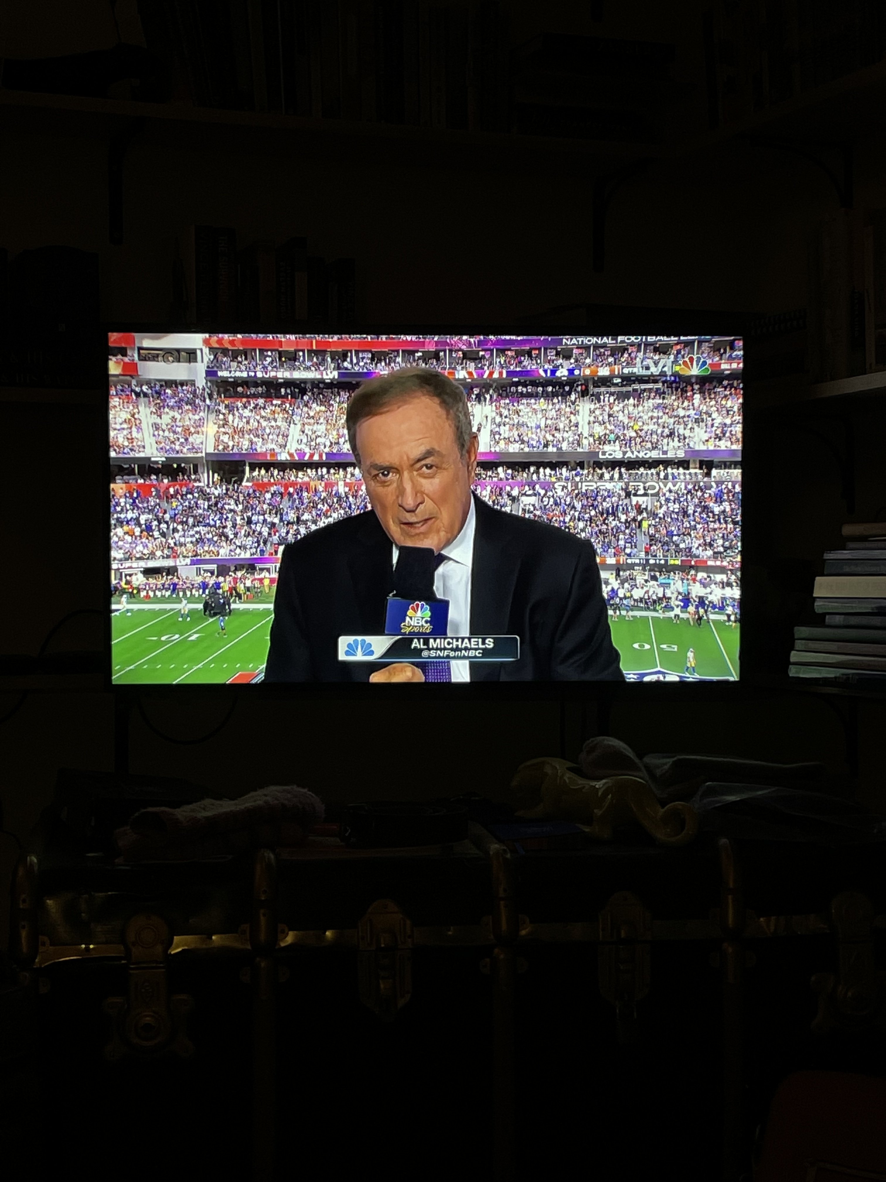 the channel that highjacks the NBC feed and commercials about banks. I like both teams tonight. Stafford deserves to win after suffering in Detroit way too long. Bengals also deserve a win. Lets hope for a close one.