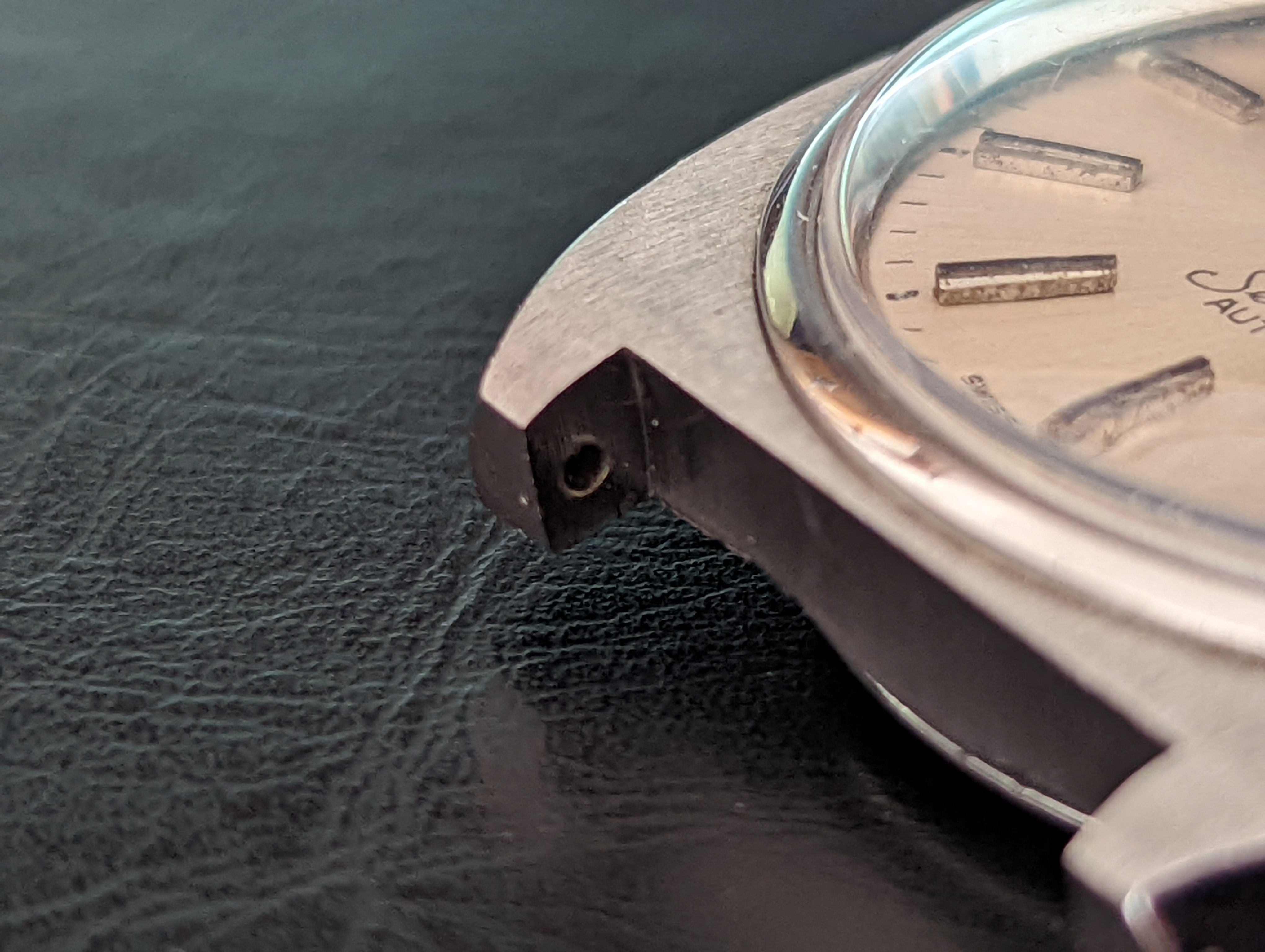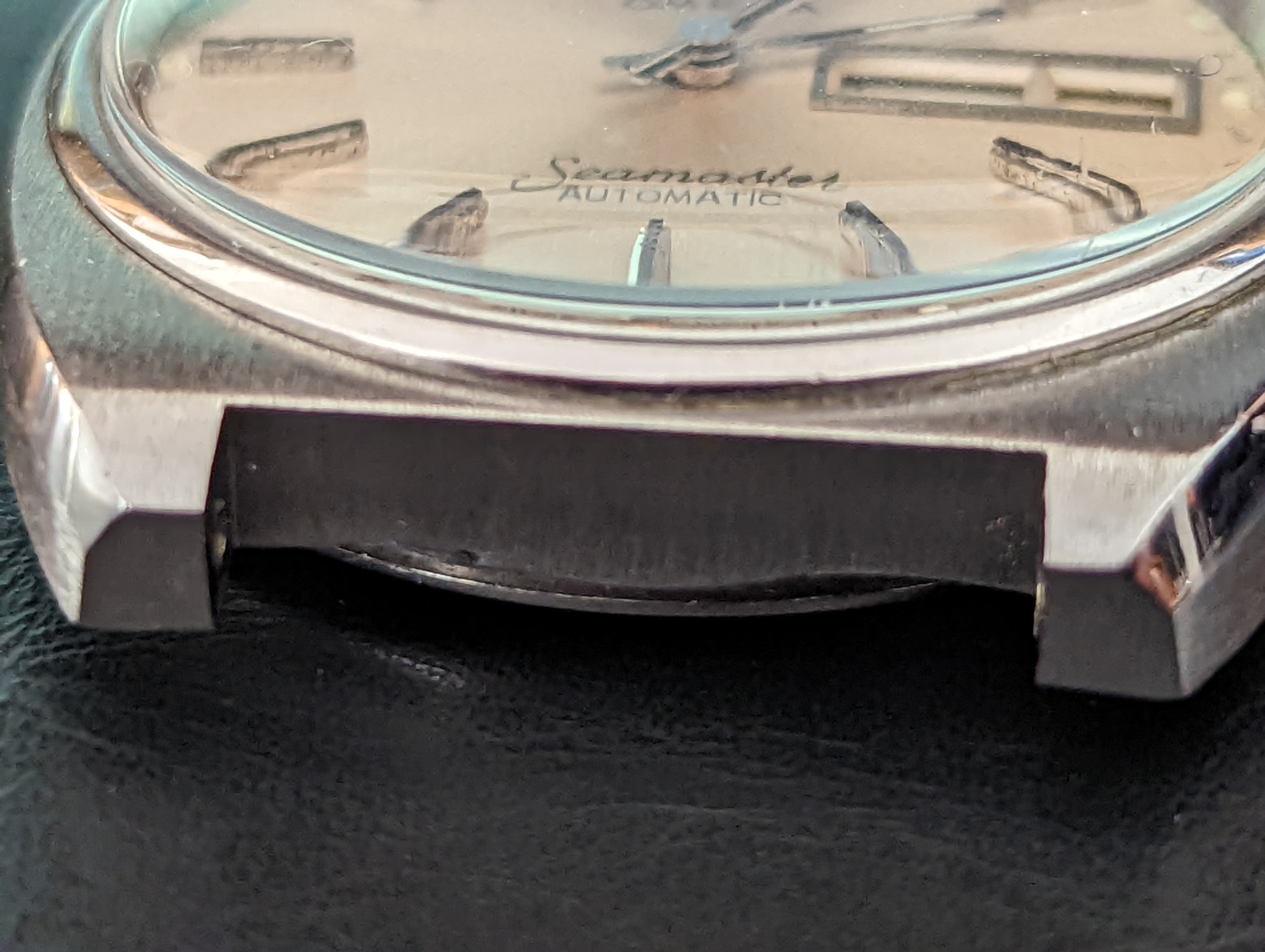 Case back also looks a bit odd when comparing it to others from watchguys photo library, case crystal isn't an original as it doesn't have the embossed logo above the dial centre.