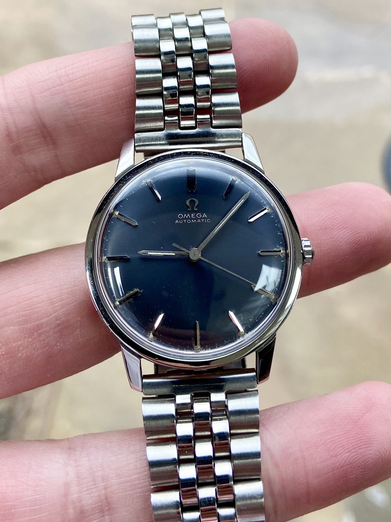 ·I’m meant to be having a quiet year but I’ve ended up buying four 60’s Omegas over the last few months. This is the latest, a Seamaster 120 auto, ref 166.027. I’ve been keeping an ear to the ground for another of these as the no crown guard 37mm case and matte black dial are a winning combination for me.