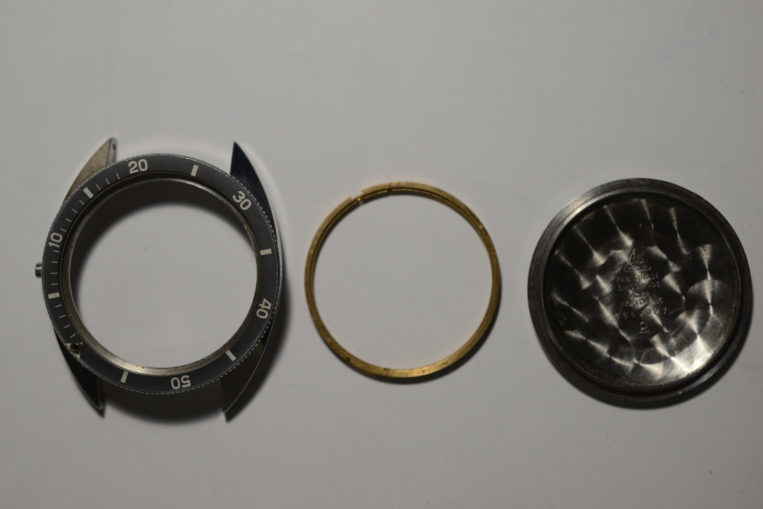 I'm cleaning up some things and this project will likely never be completed. Here are for trade the remnants of a Seamaster 120 166.027. It came from the graveyard of a long retired Omega-related watch repair guy who was active in the 60 through the 80s, so it is not a modern copy. If you have a cheap seamaster 120 with a wrong/missing bezel this is your chance.