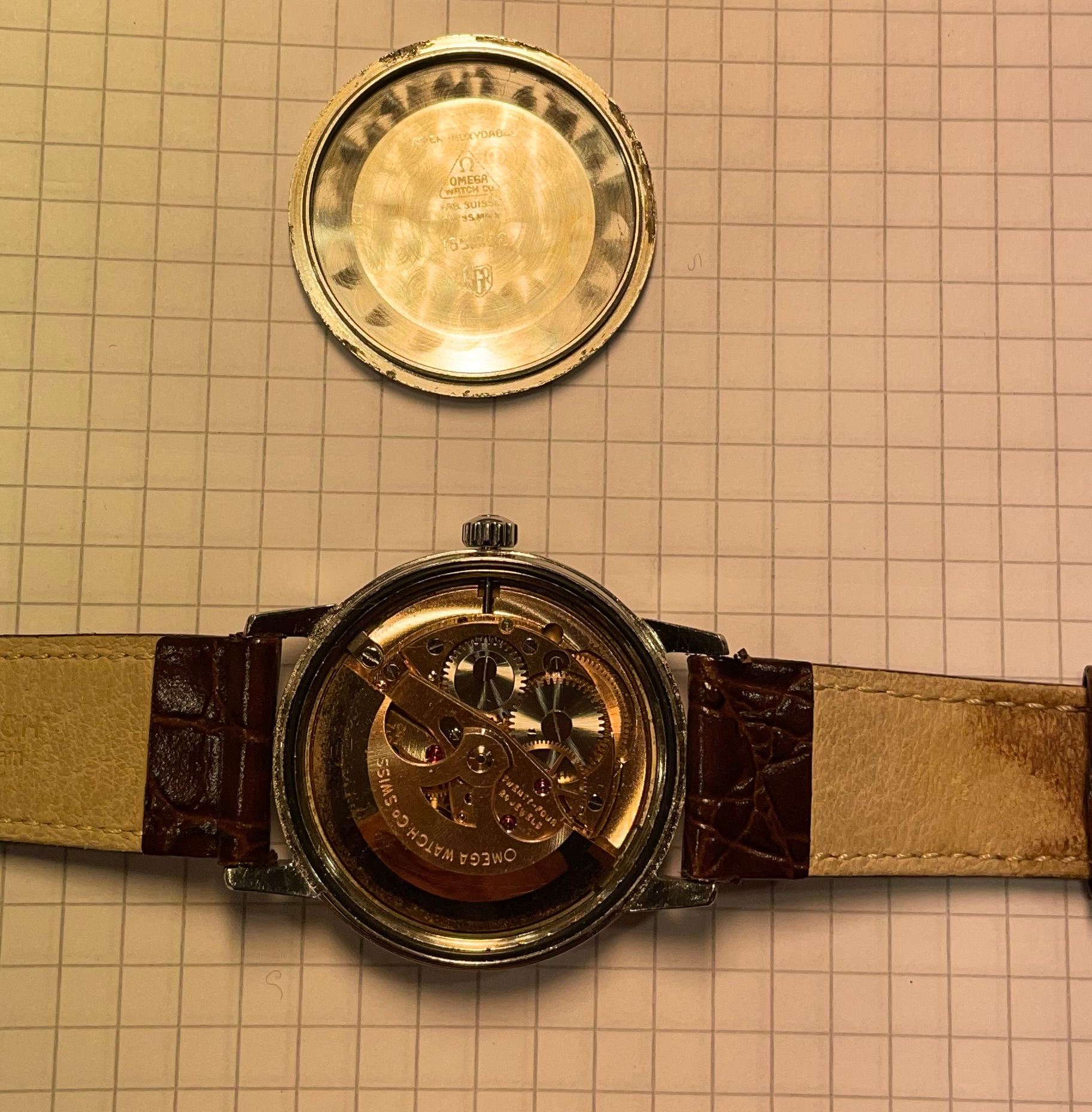 Posts 1,570 Likes 2,681 Caliber561 ·Nov 9, 2021 Genuine, and likely original condition. Not sure about the crown but I think I see the Omega logo in the crystal.