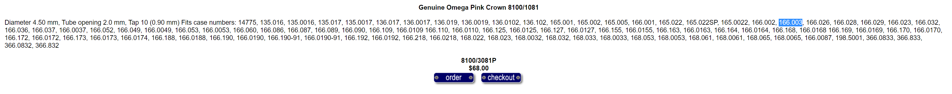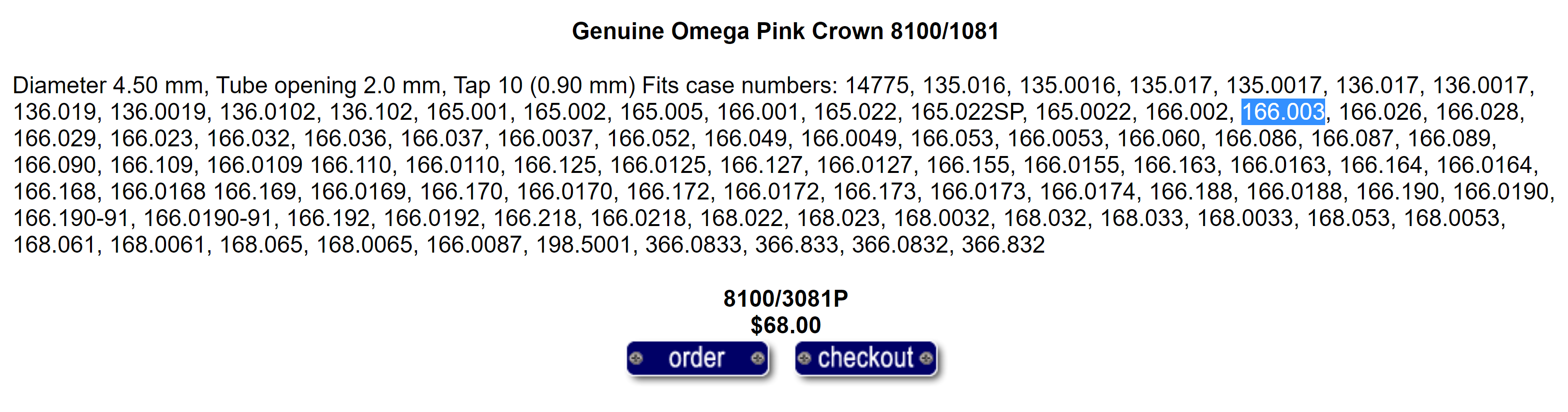 I have a Seamaster from 1966, 166.003, cal. 565 and the only thing that bothers me a bit ist that the crown is not original. I was told by a local watchmaker that a new crown would cost about 300 Euros, which I don't want to pay, since I paid around 400 euros for the watch and there are a lot of crowns on ebay, that cost around 20 euro. The problem is, that I don't know, which to buy. So could anyone help me out please? I would like to change the stem as well und would need an advice on this as well.