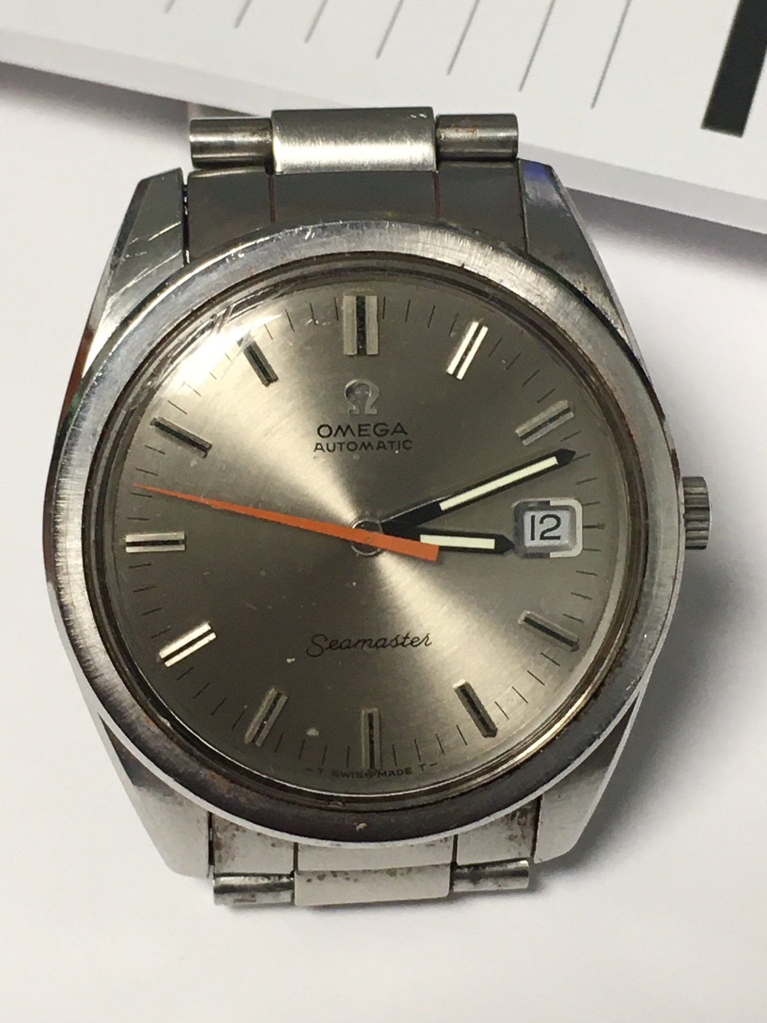 The watch on Chrono24 looks over polished, bracelet links are very “stretched”, and I’m thinking closer to a 1969 production date than 1967, listed as “very rare” with 3 for sale at the same time ? Looks more like a faded red hand than orange and overpriced by over 2x.