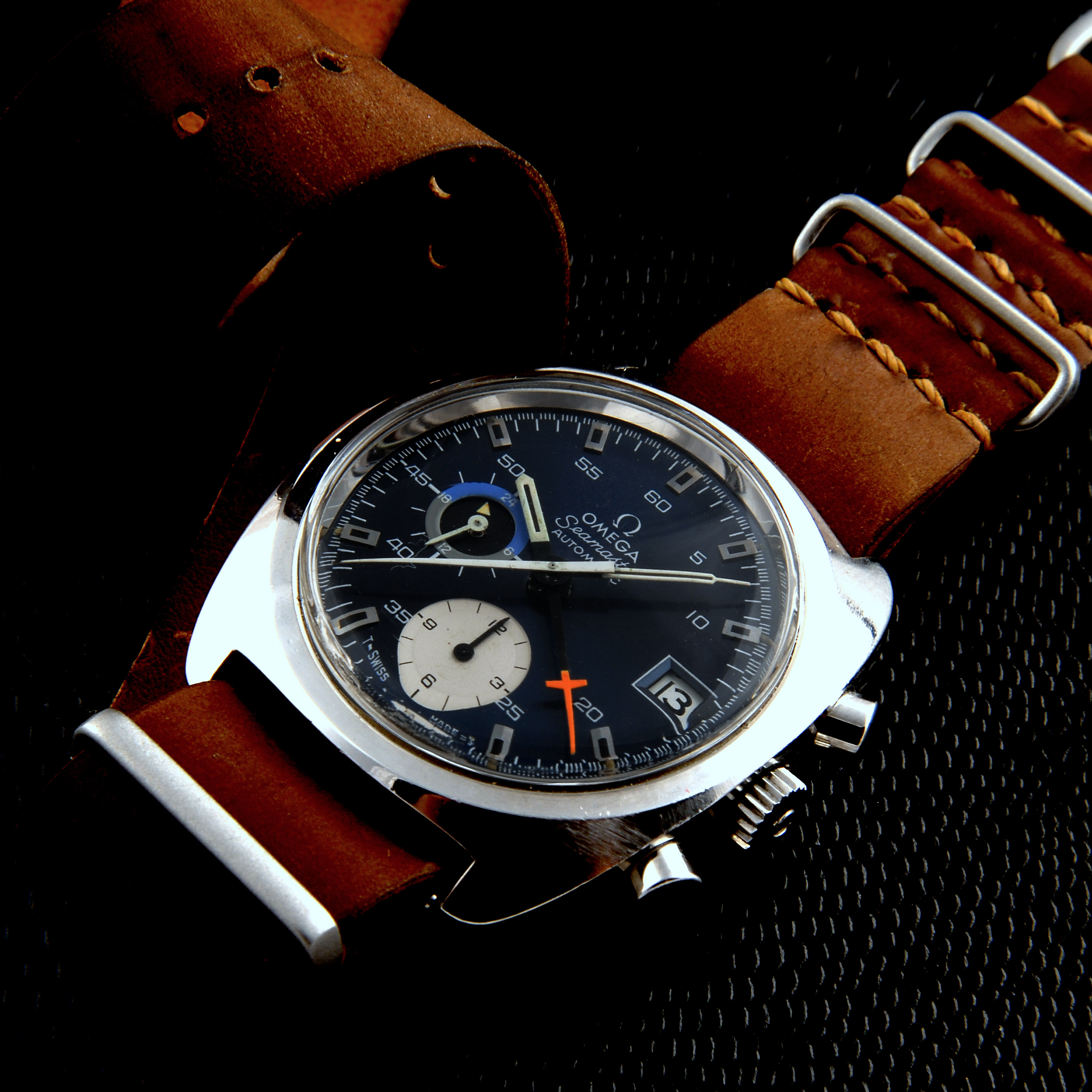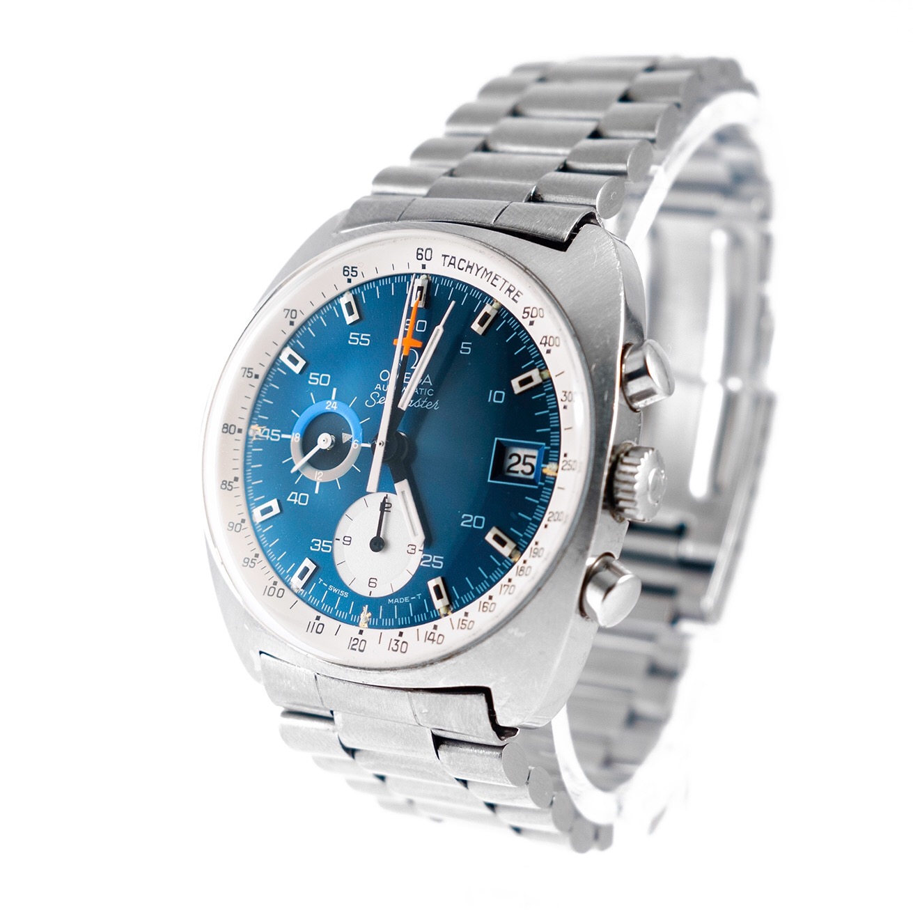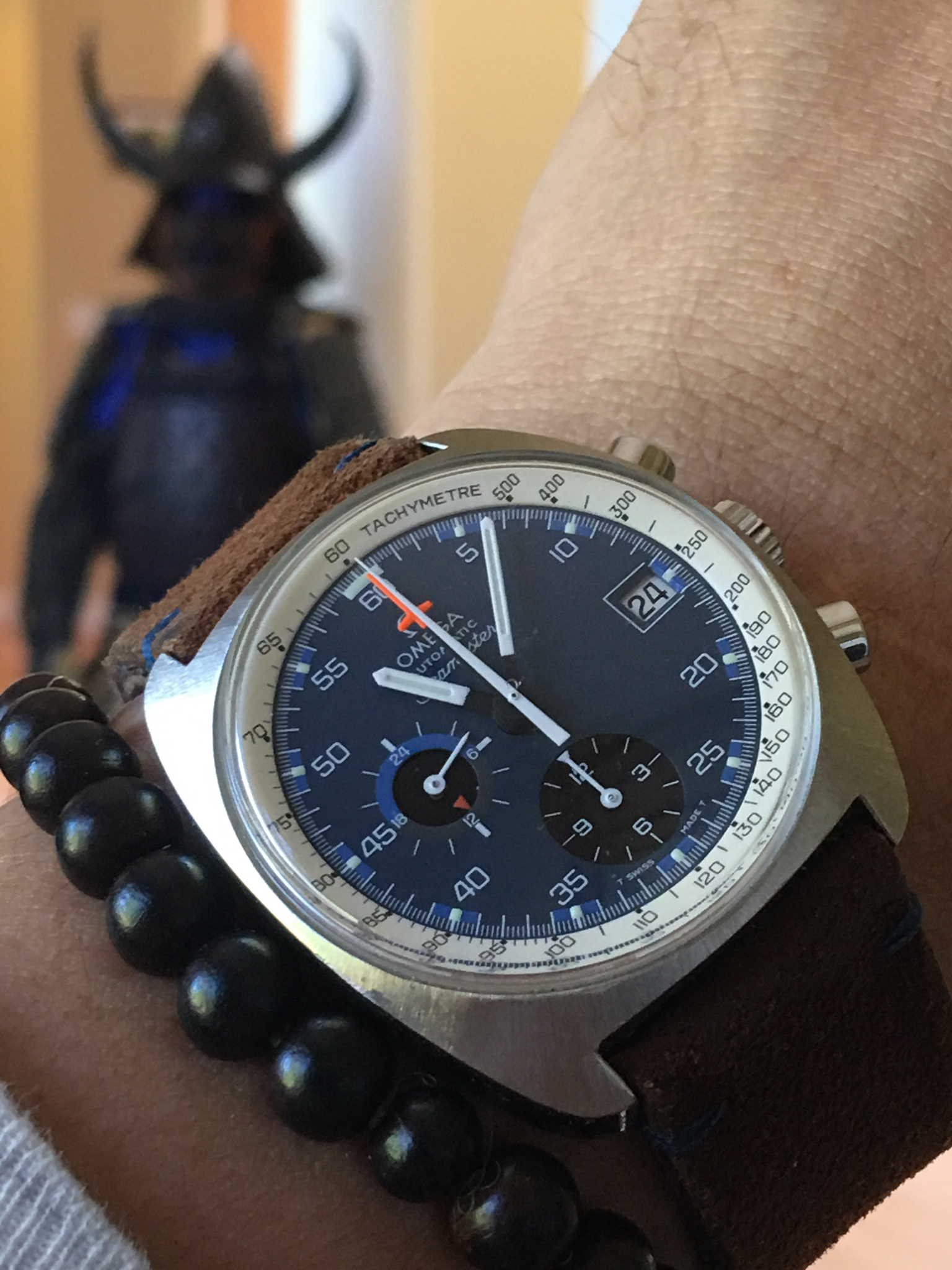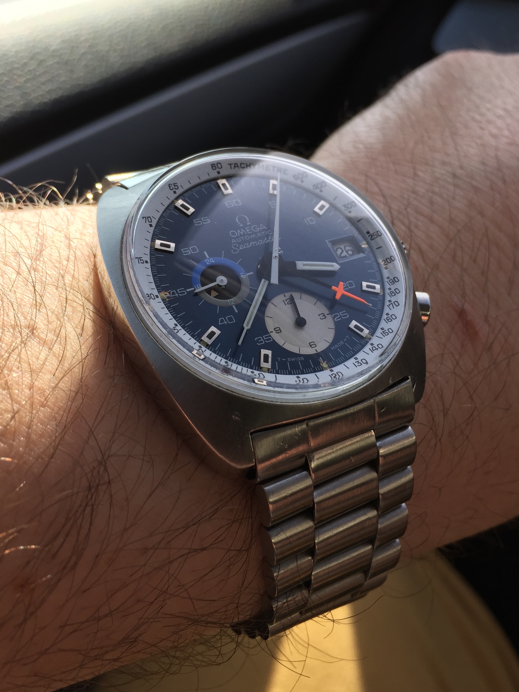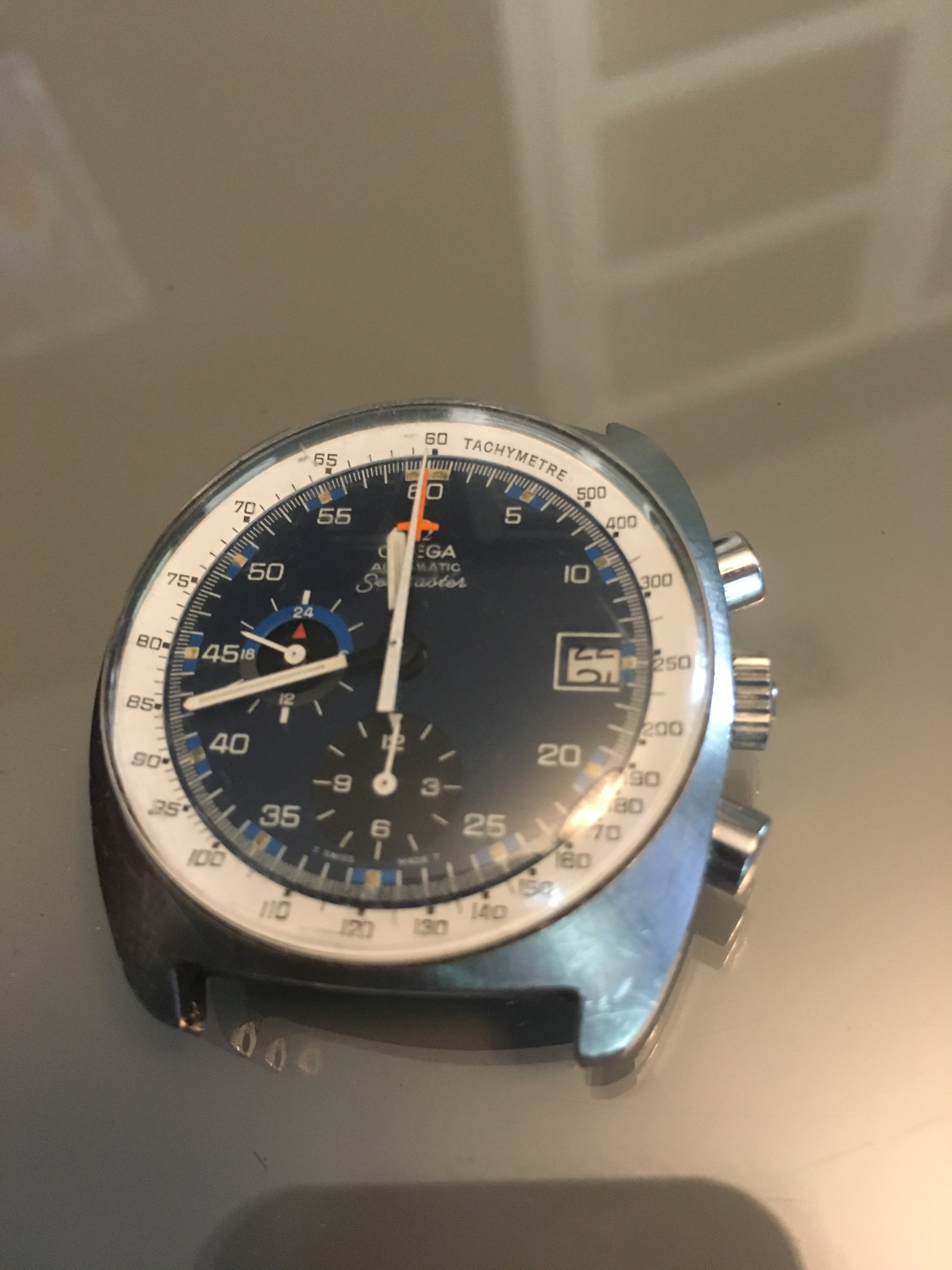 Second question first, to my knowledge the only way to get a production date is to order an extract. But, 3559 is a common batch and I've seen two production dates from Extracts in that serial batch: a Speedmaster 125 from October 16, 1973 and a Big Blue from February 12, 1974. If I had to guess I'd say yours is probably from that same late 73/early 74 timeframe.