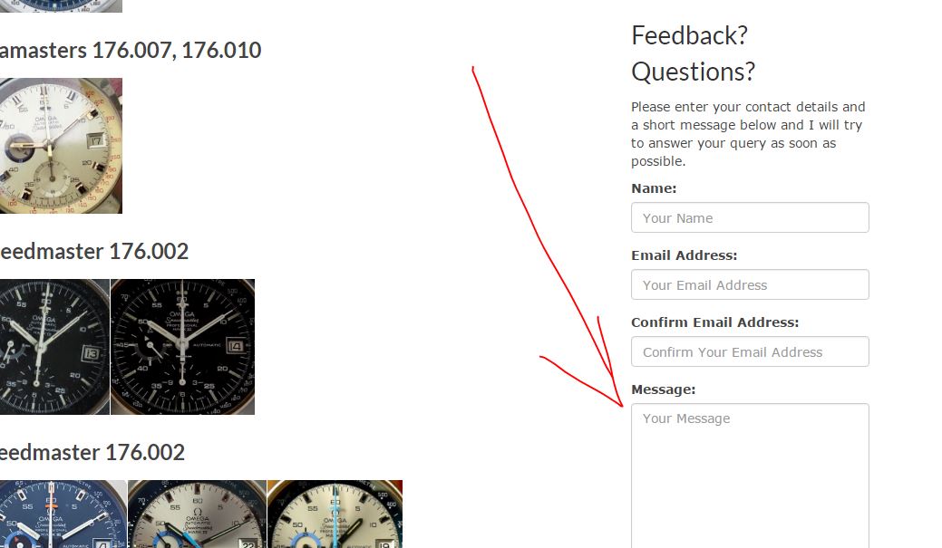 As to submitting a message on the site, did you use this box on the right?