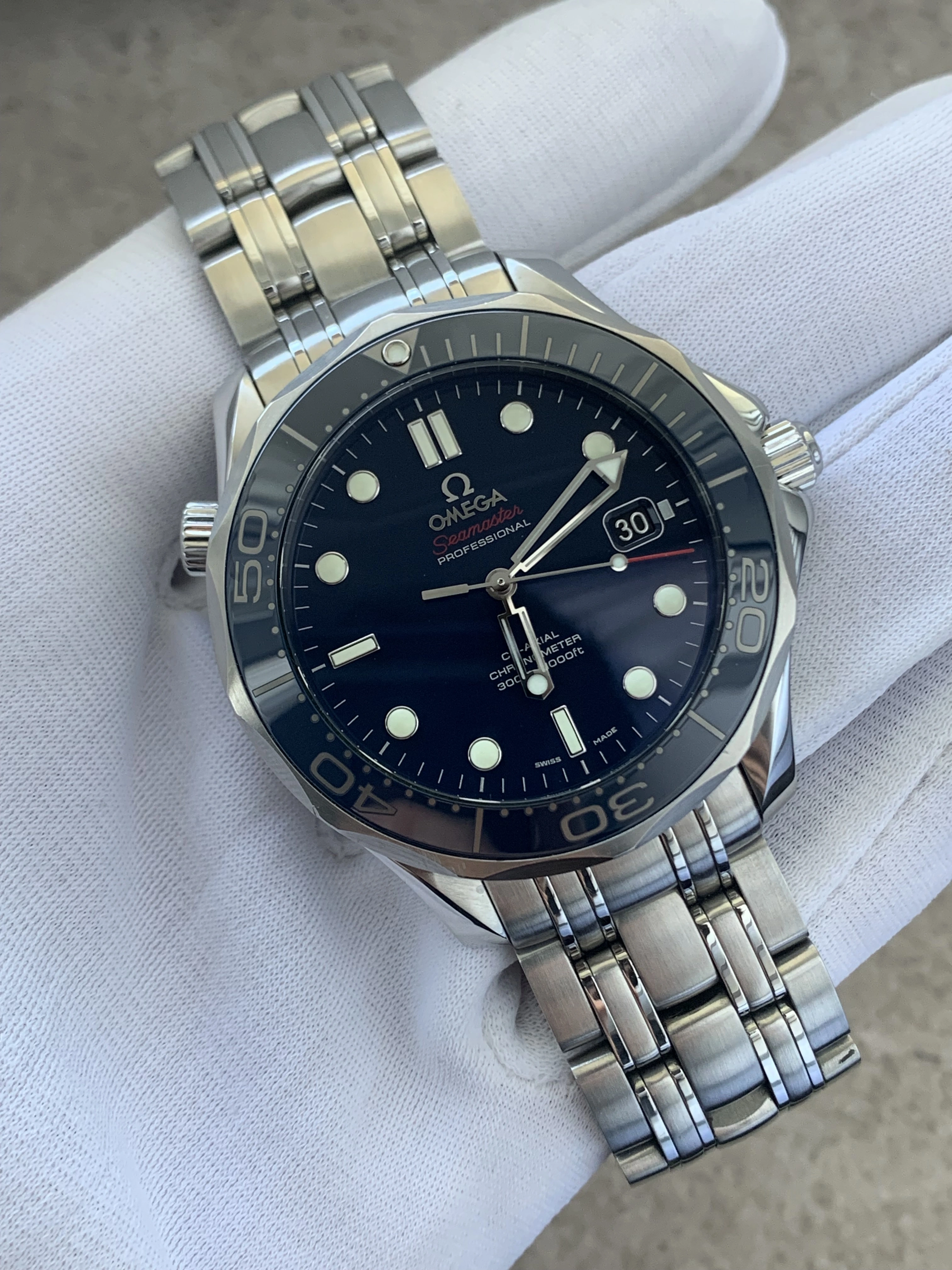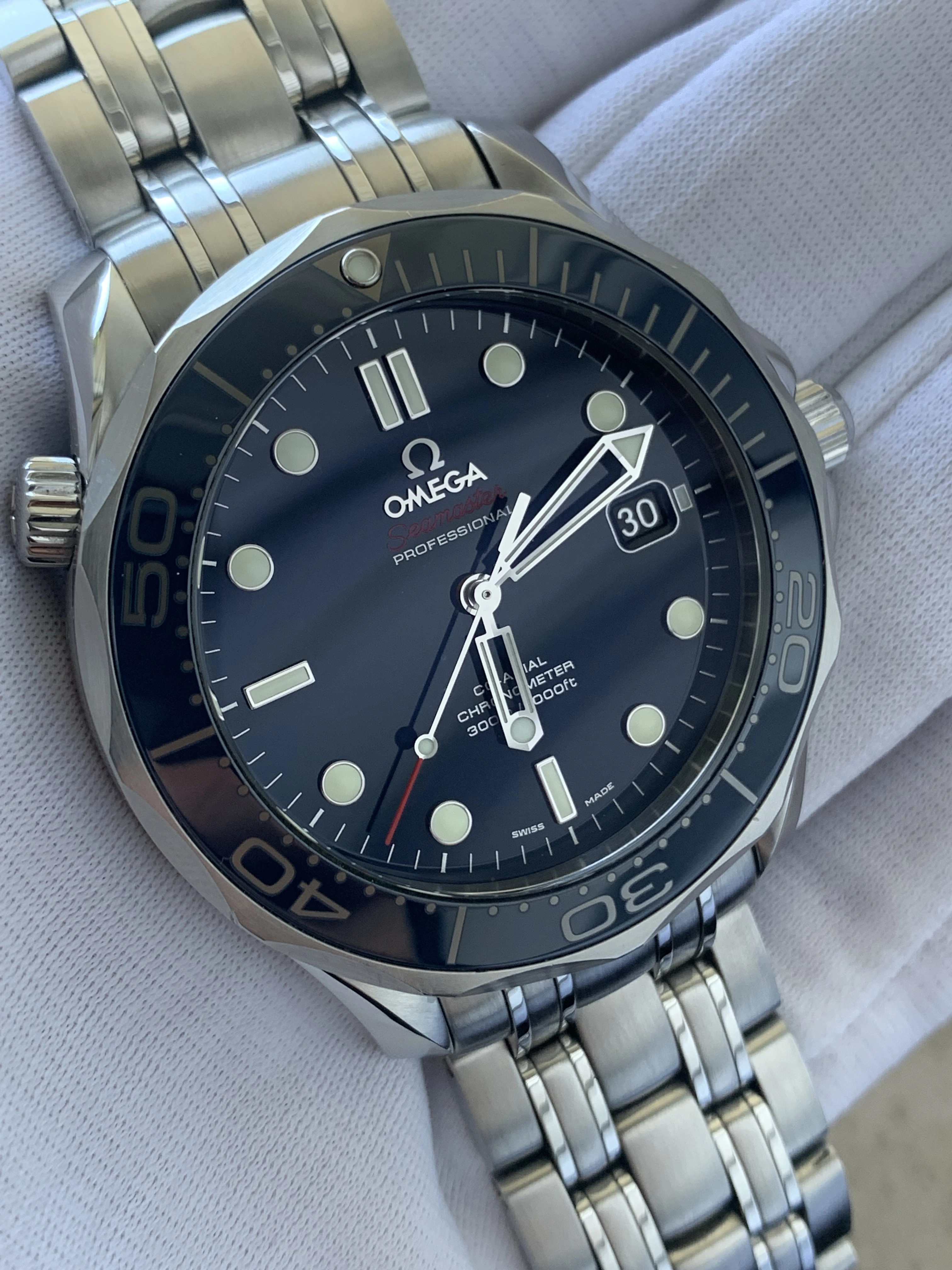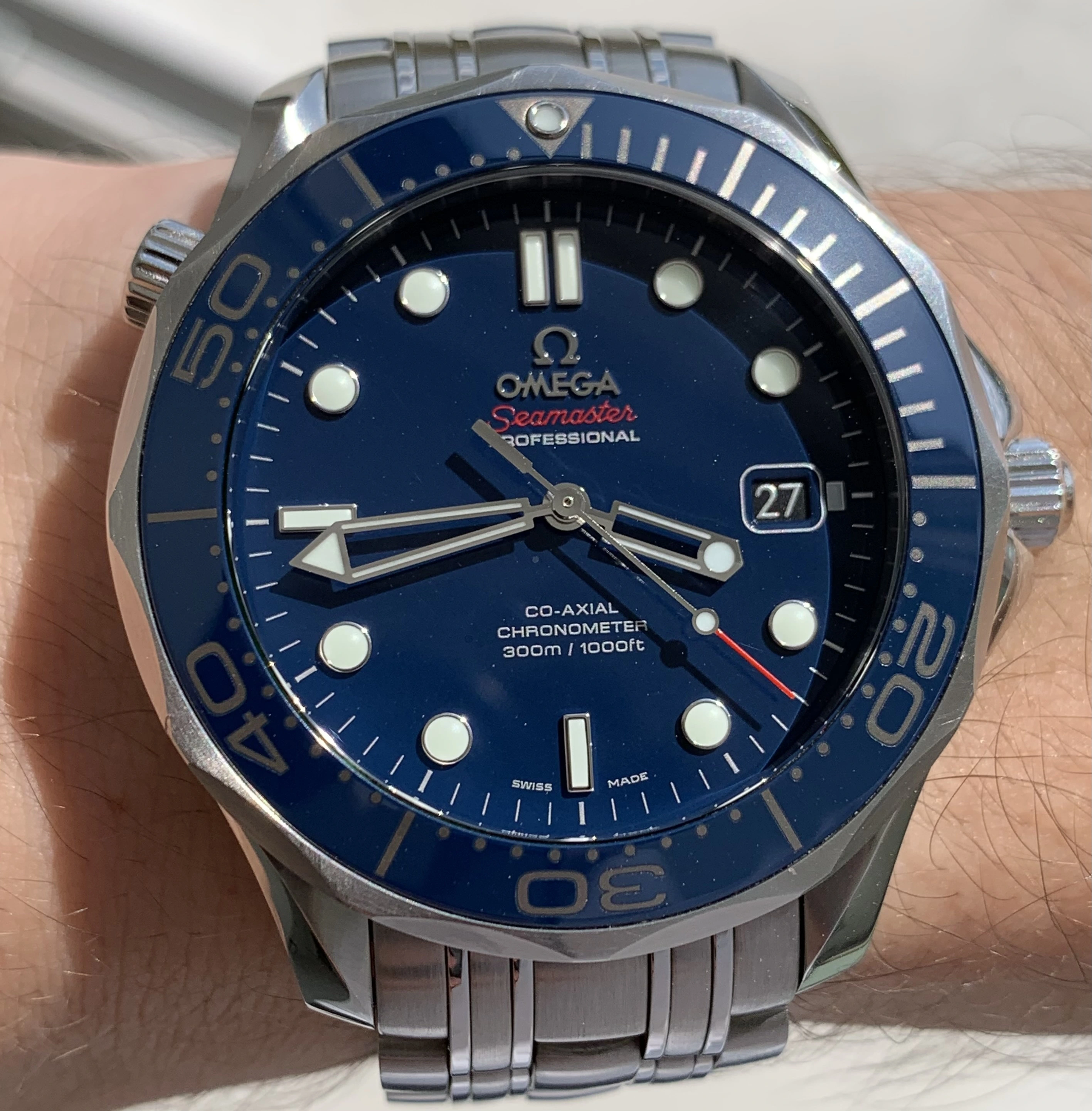 ·Hi everyone! I recently exchanged my Tudor Black Bay Pepsi watch for a 212.30.41.20.03.001 ref Omega Seamaster. The watch is from the end of the series 2018.12. What do you think based on the pictures, is the fading of the numbers on the bezel also visible here? In certain lights (e.g. in a room) it is very pale, almost gray. In the sun it is nice and bright