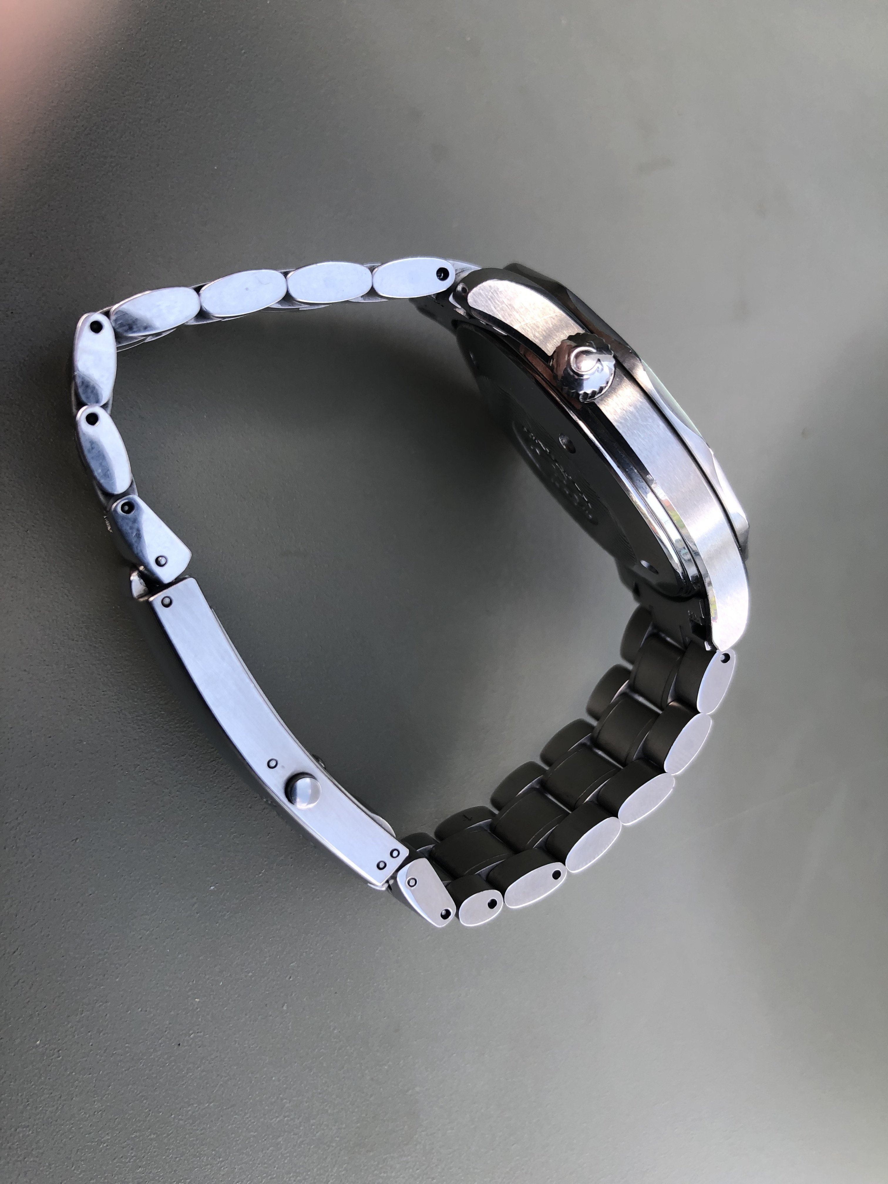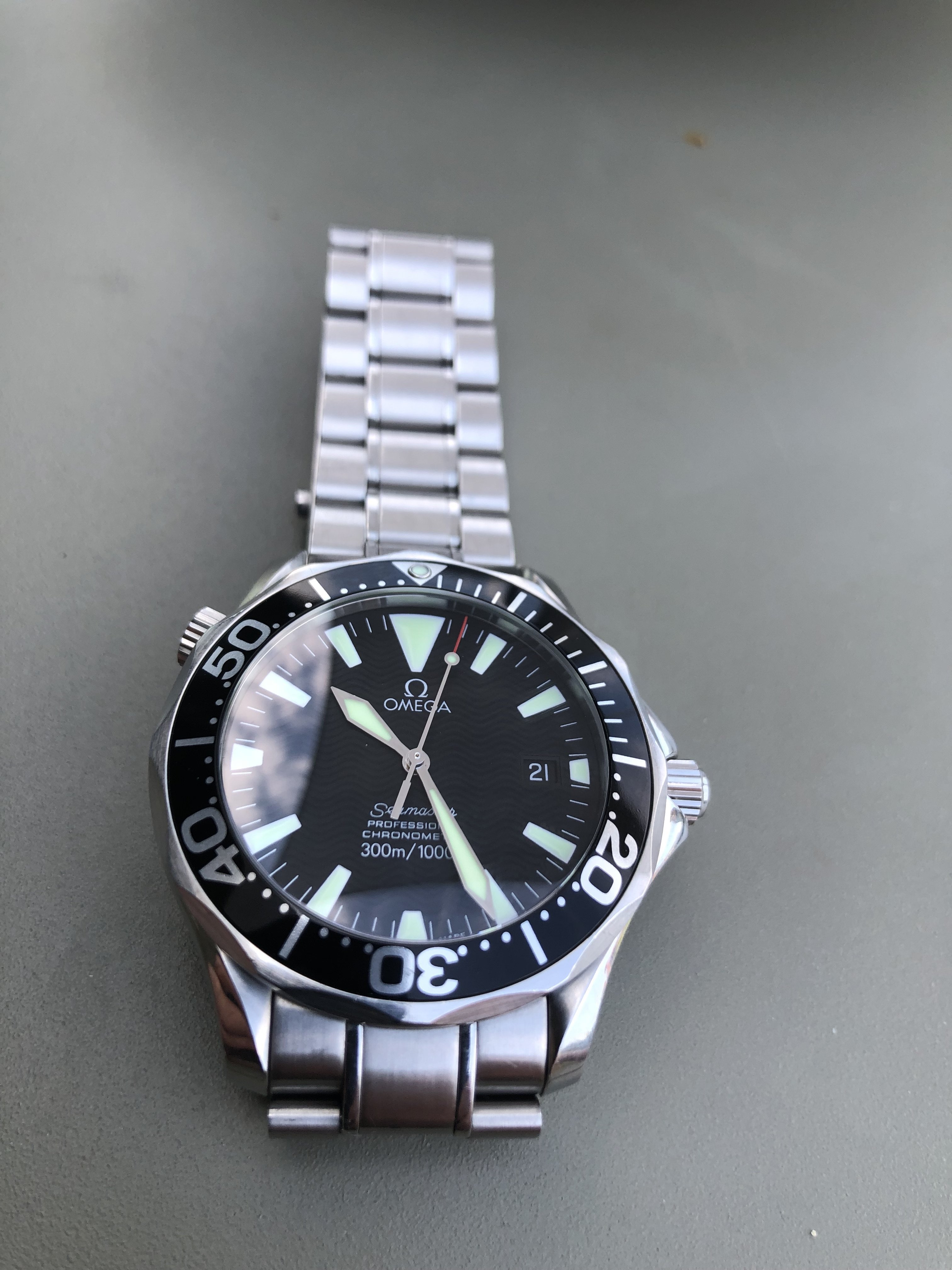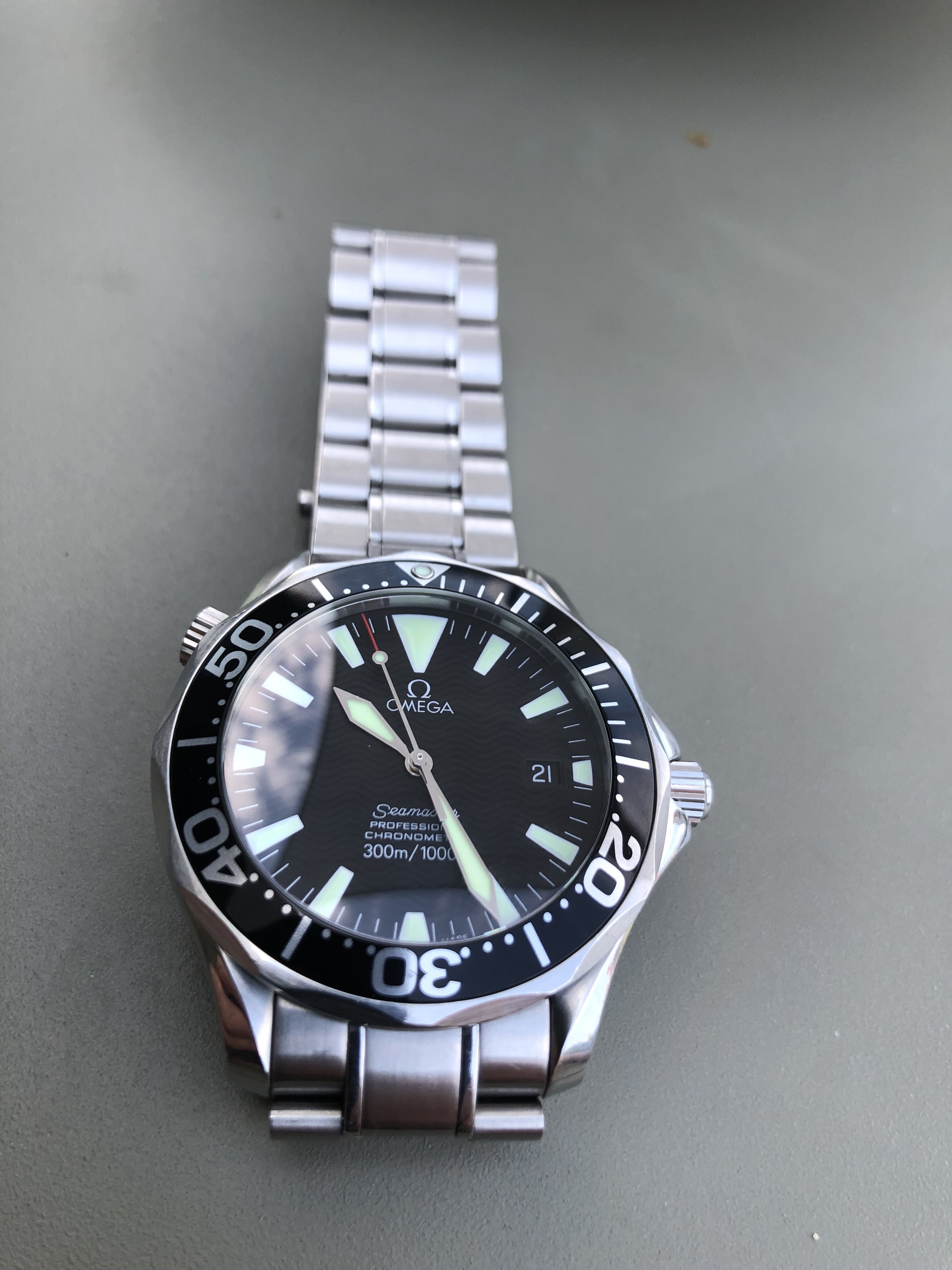 The watch came with box and cards from the first owner stating it was never off for service. It shows razor sharp edges and the wholes on the back seem untouched. So I figure this watch is unopened abd it is the first set of hands.