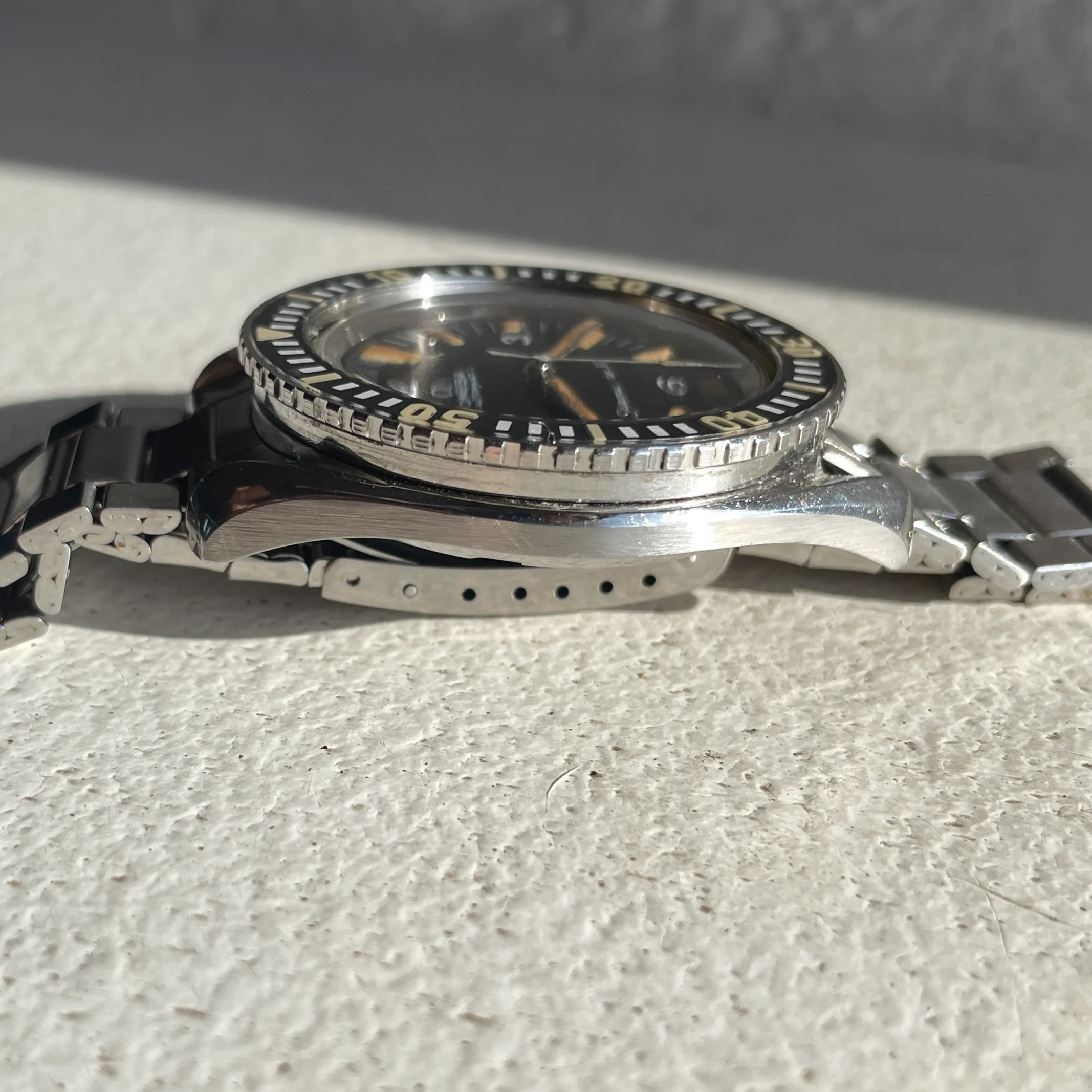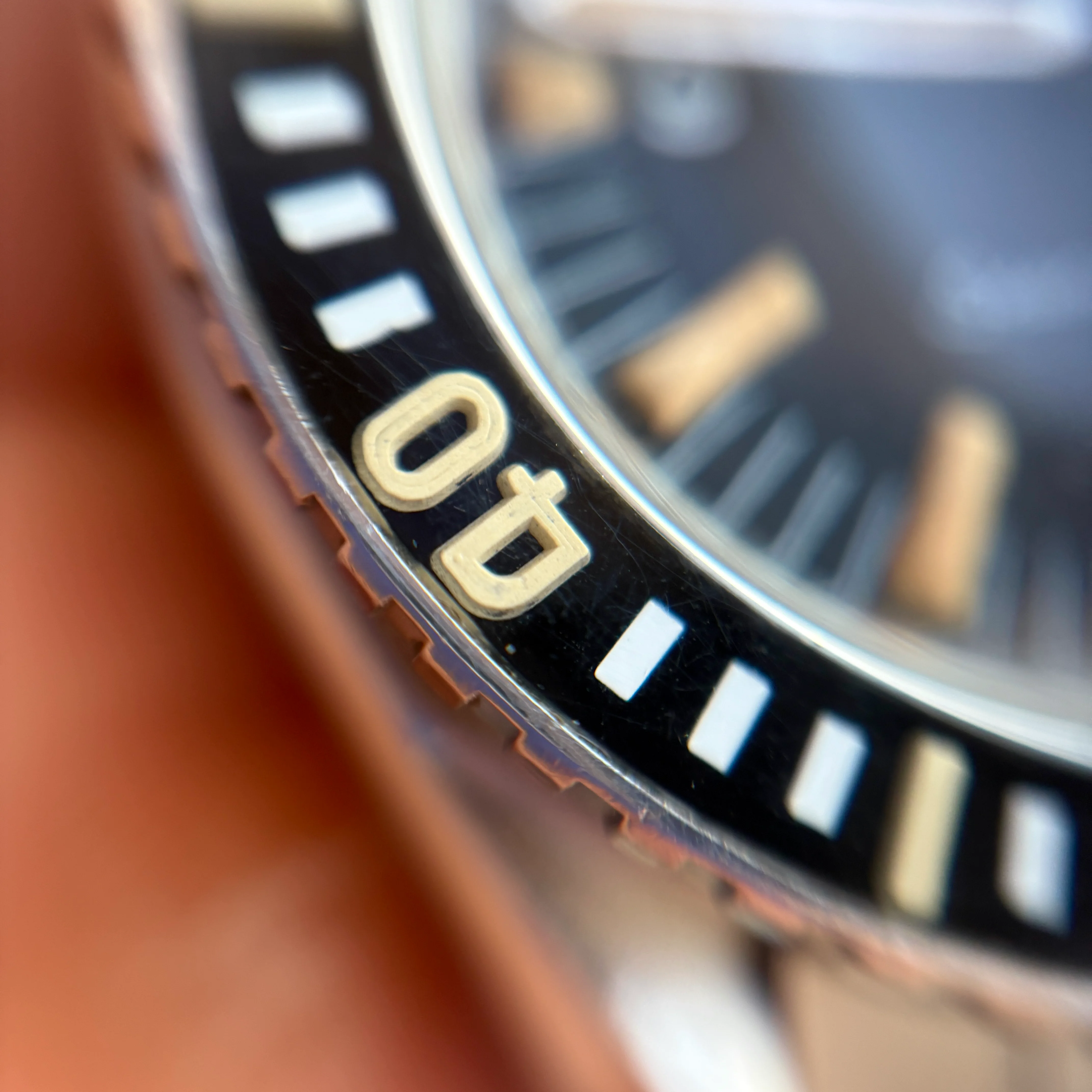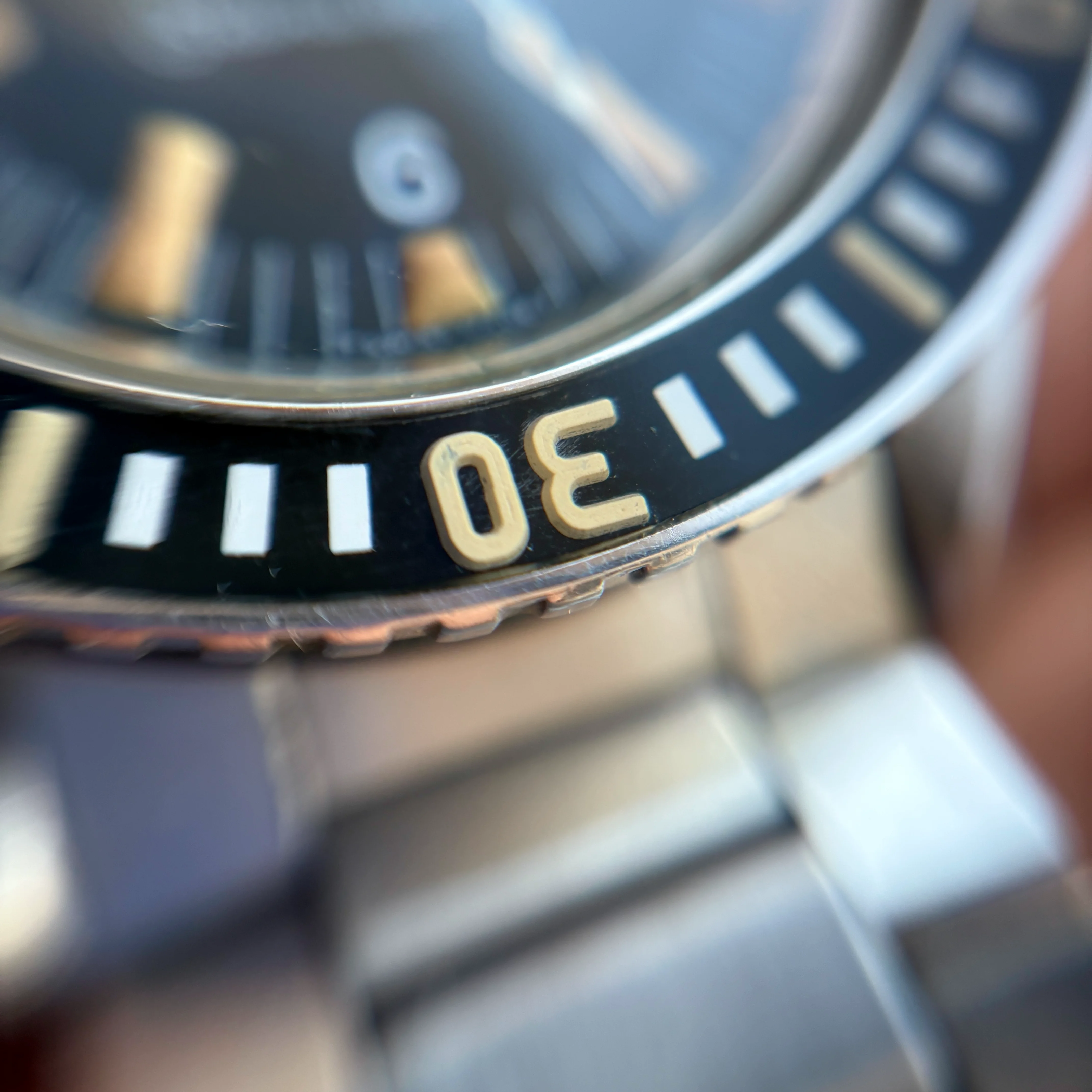 Bezel insert have been renovated by our own McGyver and really looks great, fonts are as the original -64 and it reacts just as tritium would (and matching the reaction of the lume on the hands and dial).