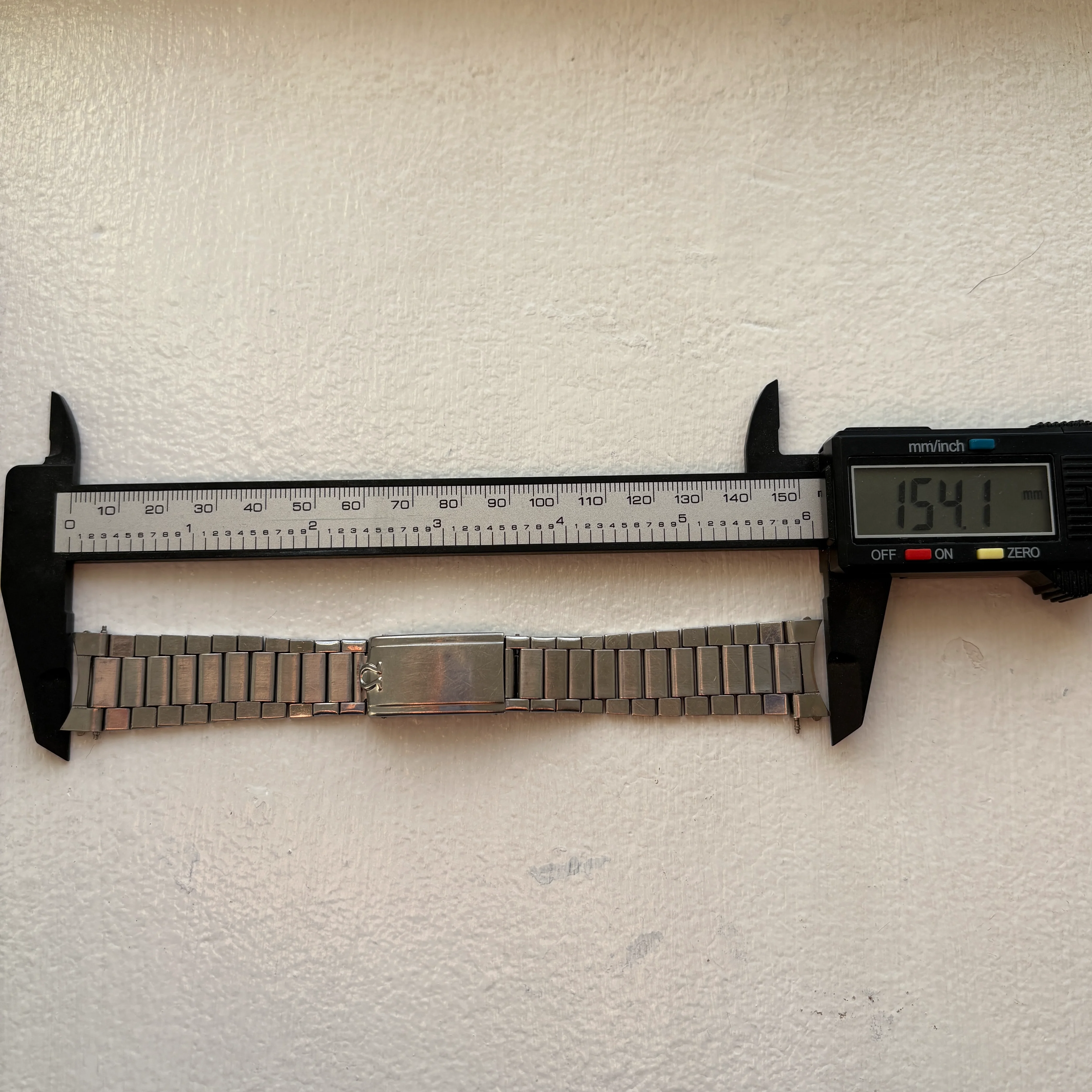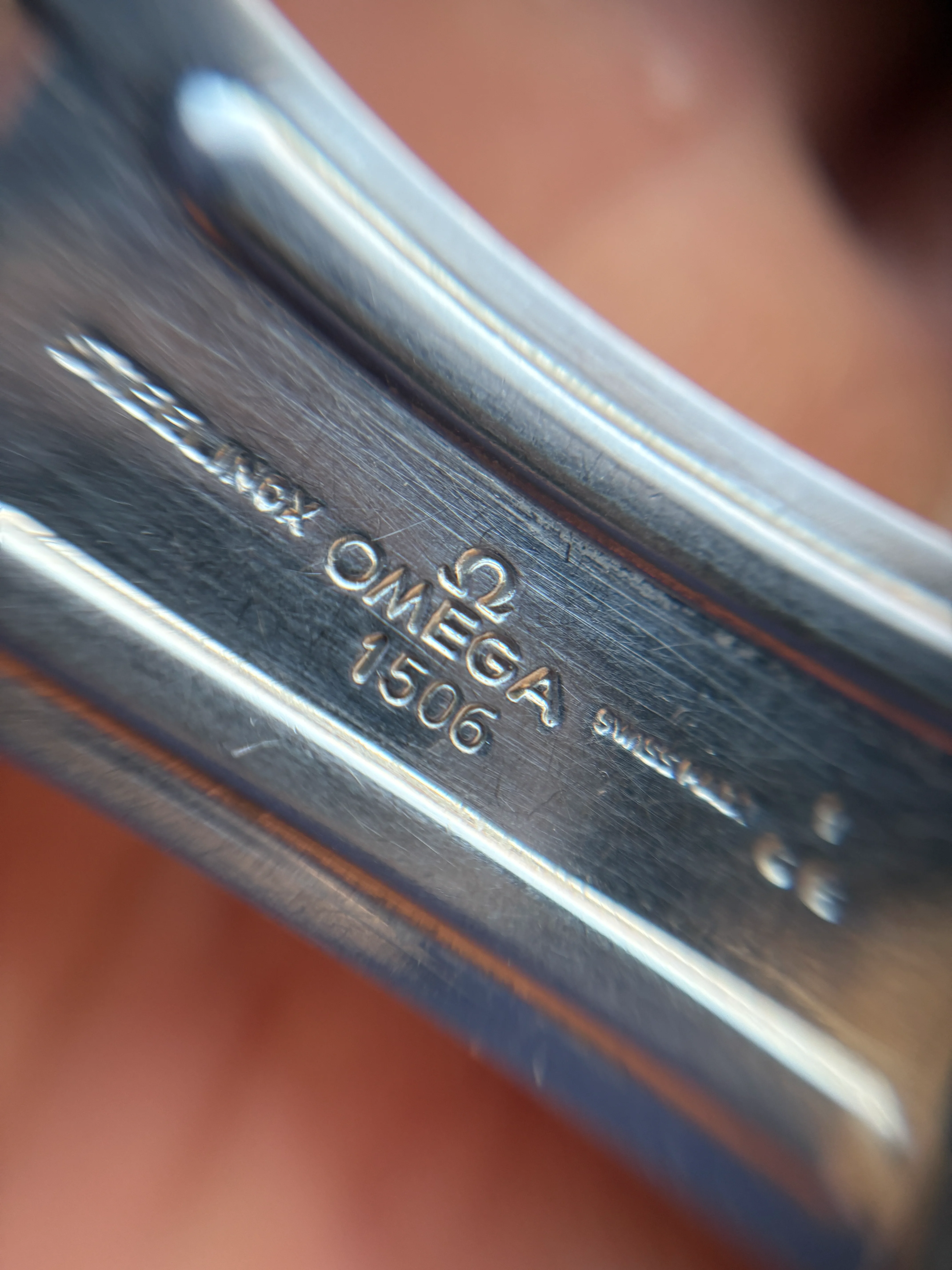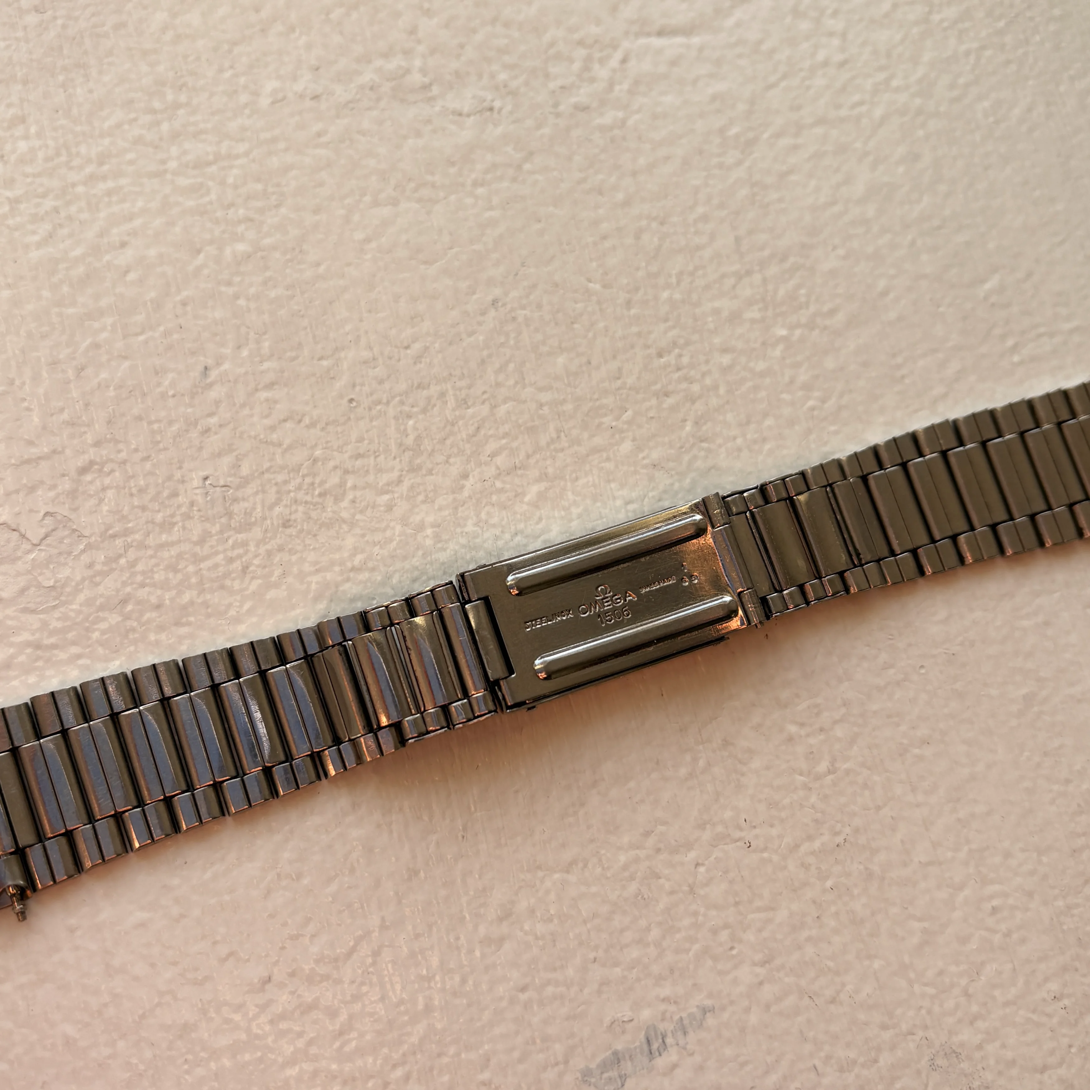 Original 1506/16 bracelet stamped -65 (which is not unusual with a 1964 production year watch). The bracelet is in good shape with tight springs, its not full length but will fit a 18cm wrist without any flex as it is now. The watch will be offered head only or including the bracelet.
