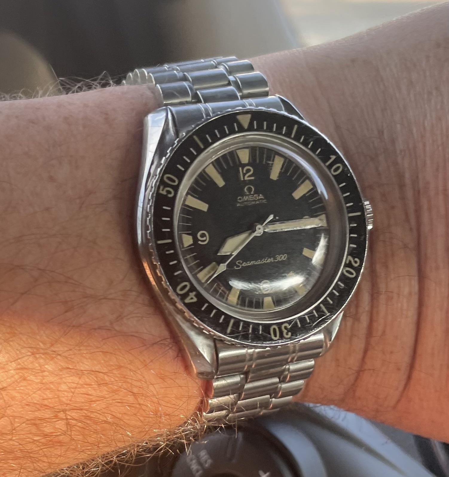 - Matching extremly rare type A bezel (https://omegaforums.net/threads/seamaster-300-bezels.36357/)