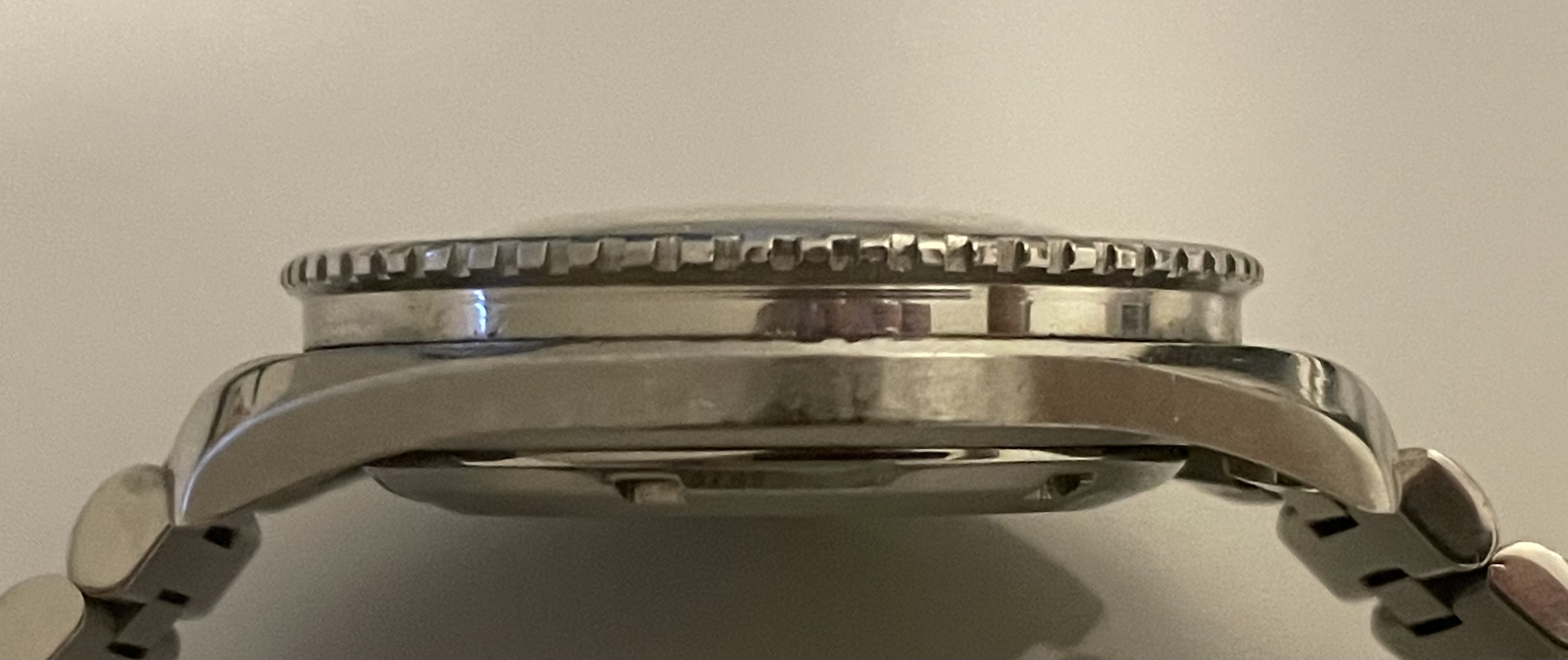 - Matching early case with slightly different profile around the outer edge and case opening slots (as discussed here -> pic 9 https://forum.tz-uk.com/showthread....mega-Seamaster-300-including-Military-watches).