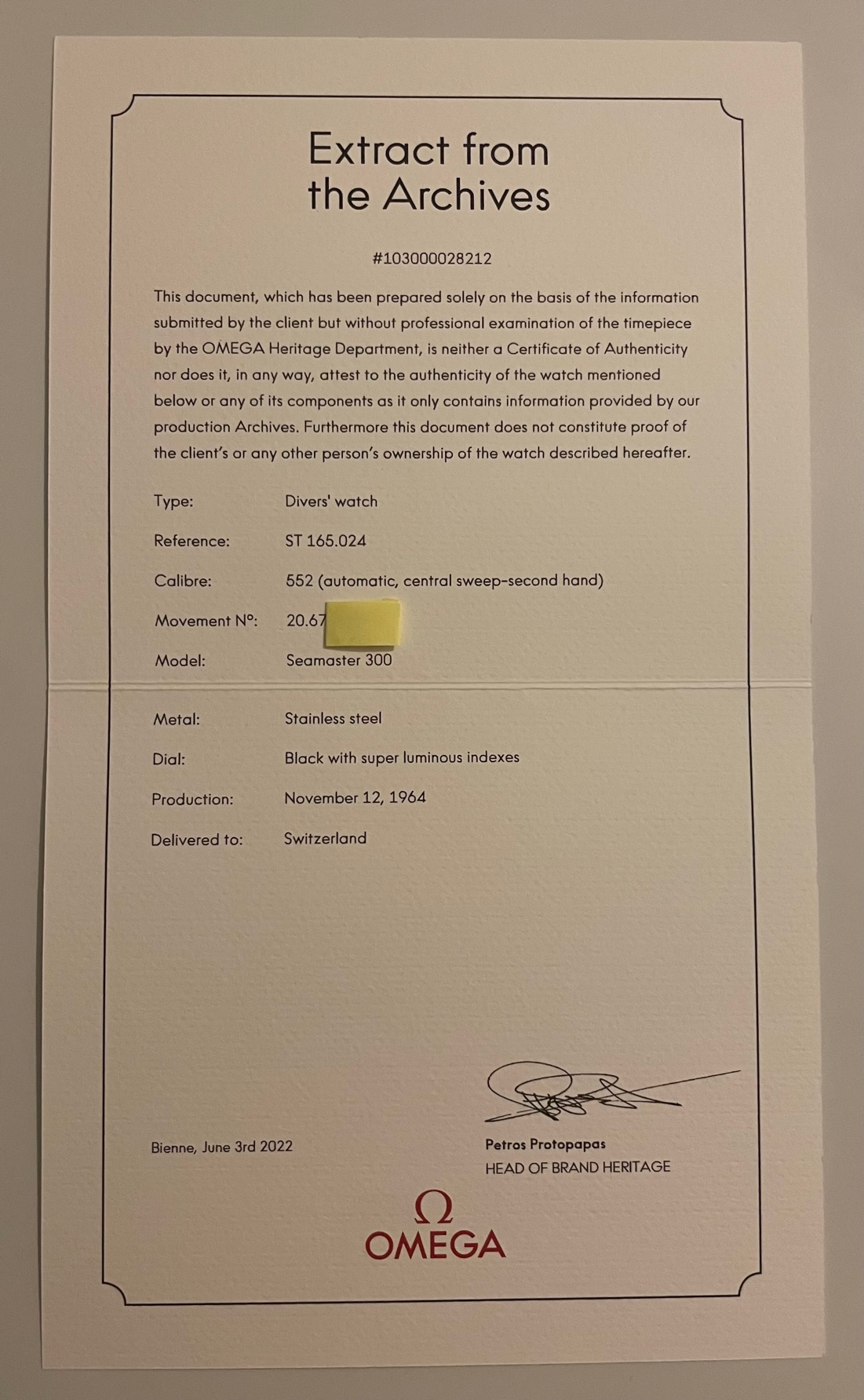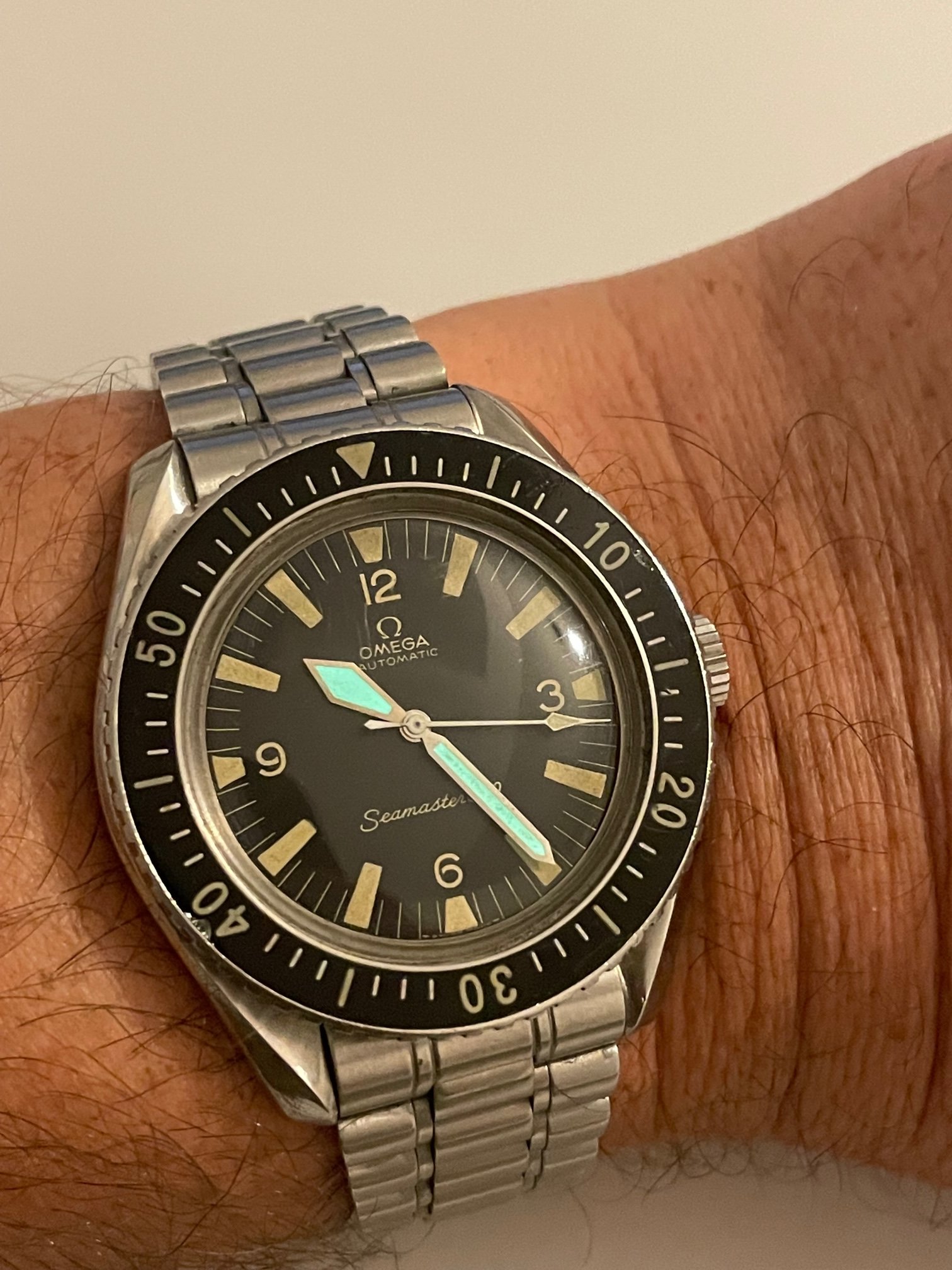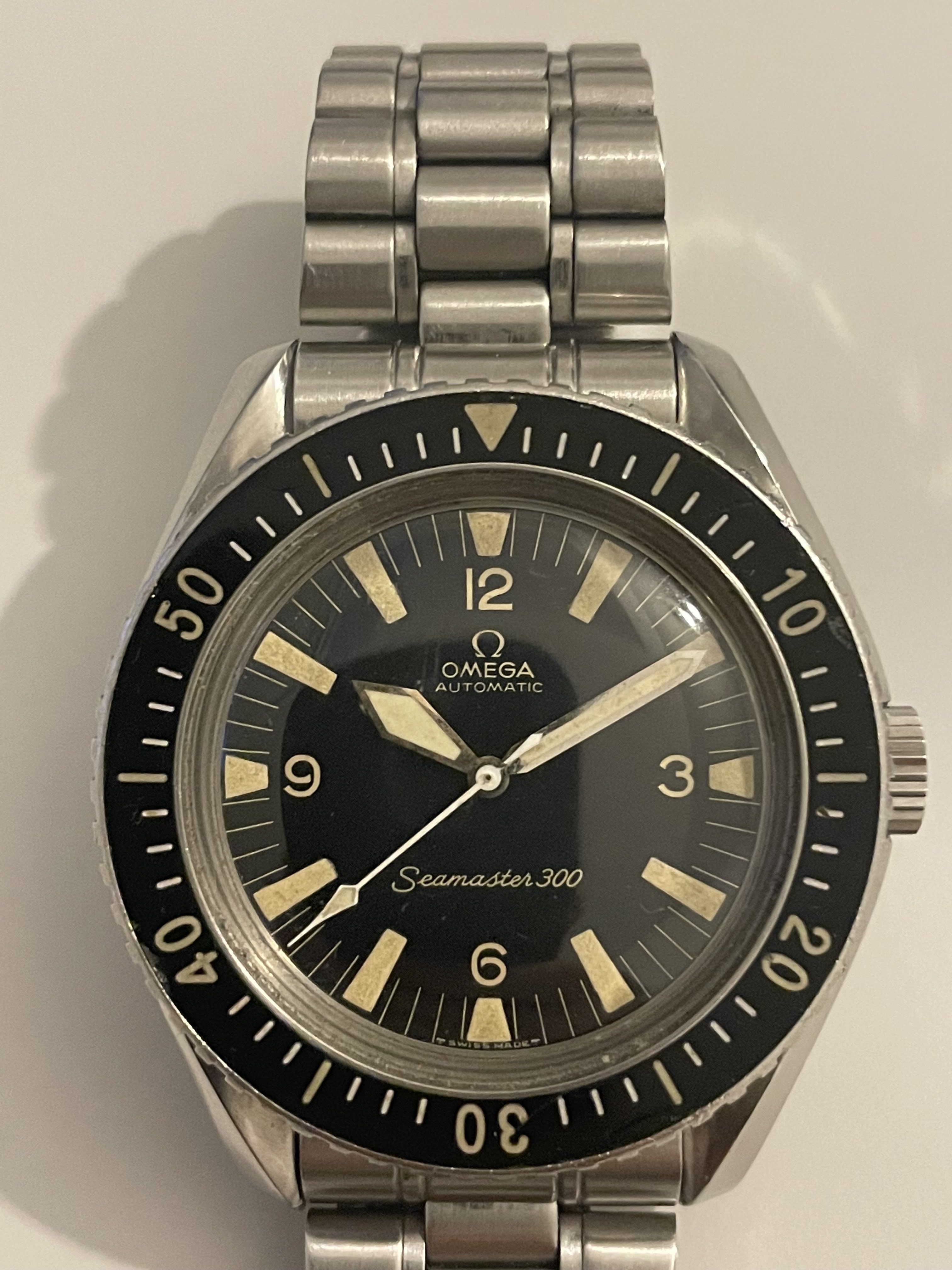 ·After nearly buying an overprice 1967 SM300 some time ago, I want to take another chance to find a honest one which is worth its money. This one is from a retired watchmaker who bought it some years ago. It's an Omega Seamaster 300 165024-63 HF with a very low serial number 20.672.xxx from 1964.