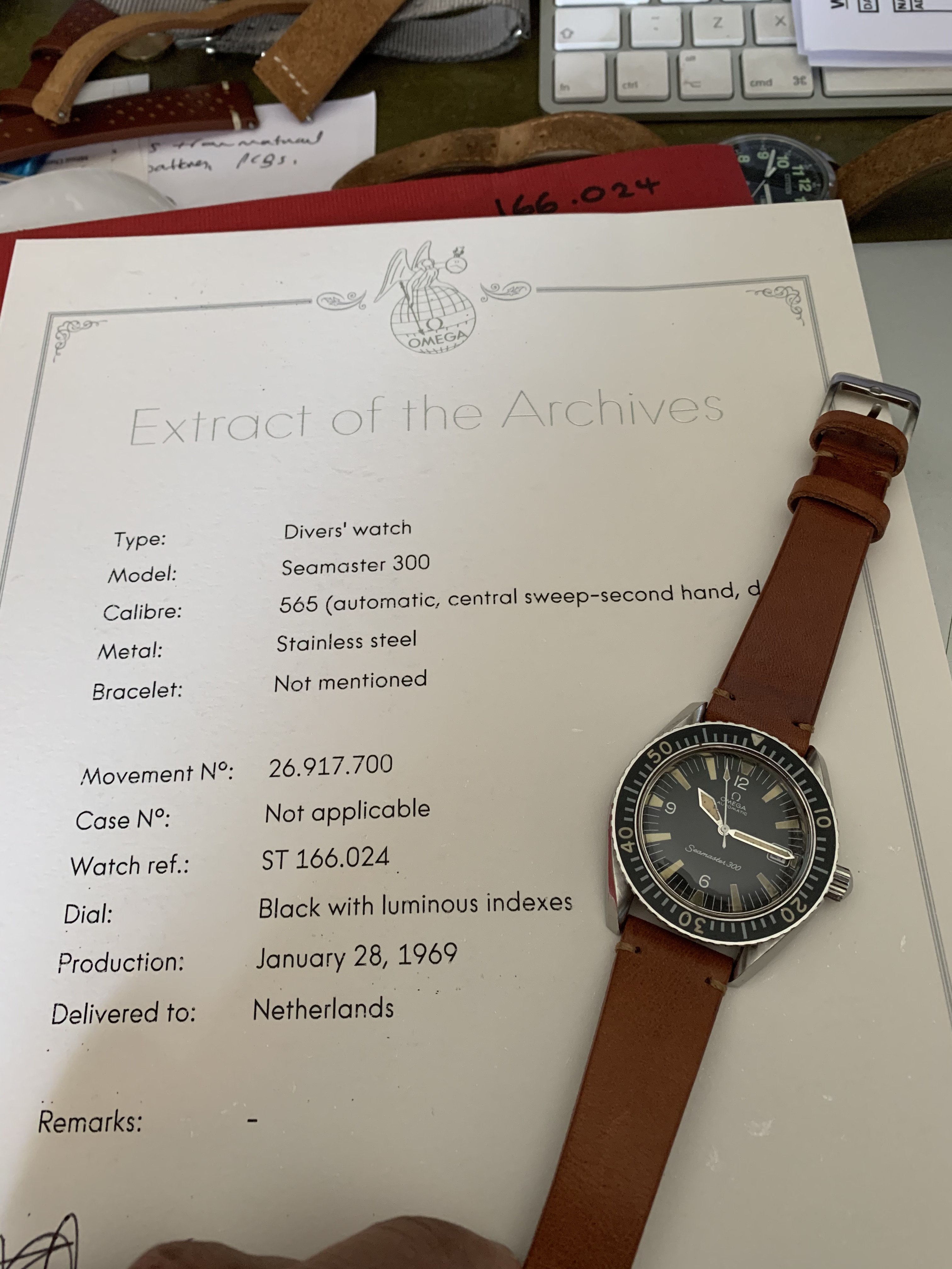 For sale is my nice Omega Seamster 300 166.024, dating from Jan 1969, delivered to the Netherlands, with Omega Extract. Perhaps a great present for a 50 year old Dutchman?