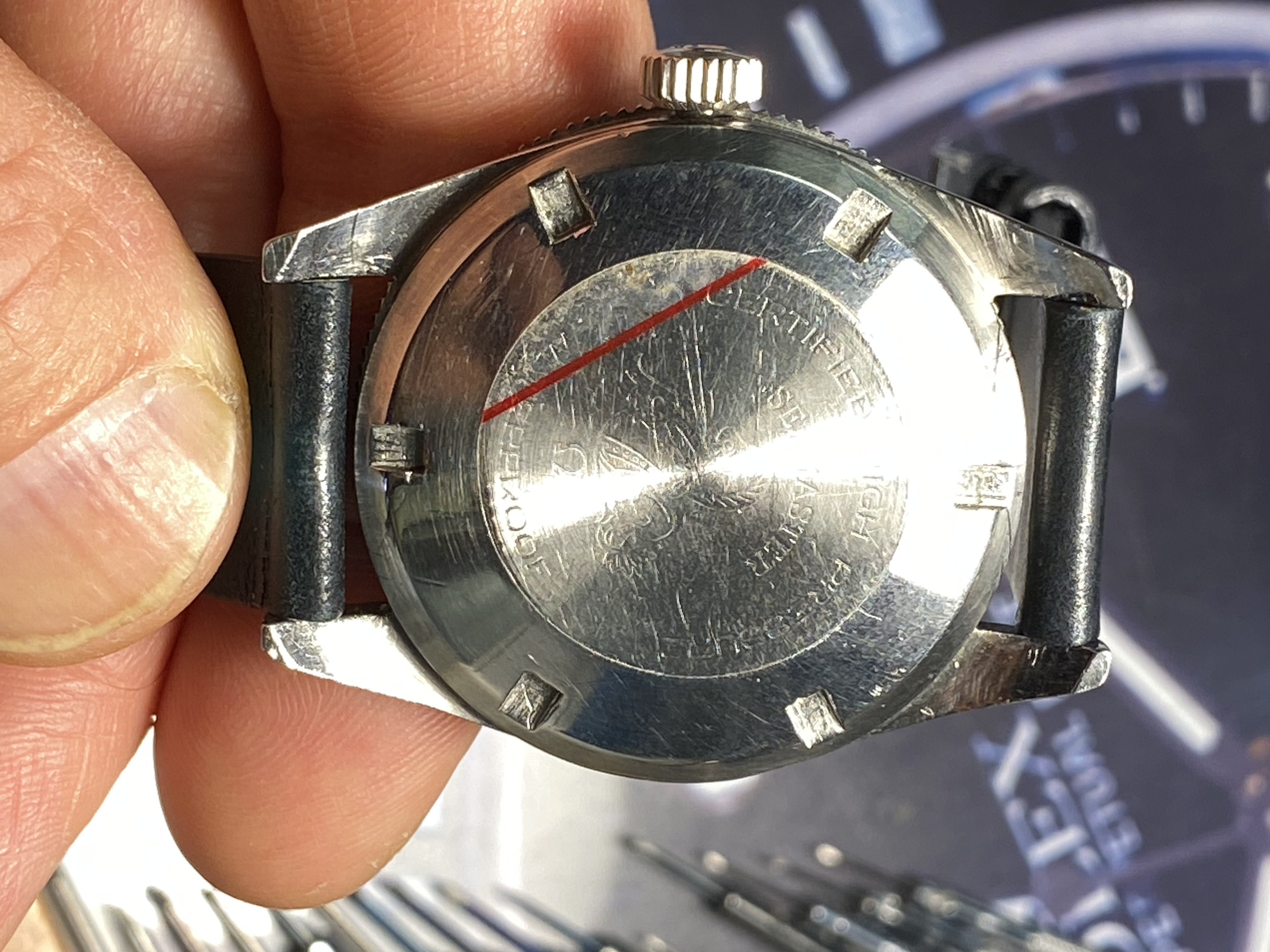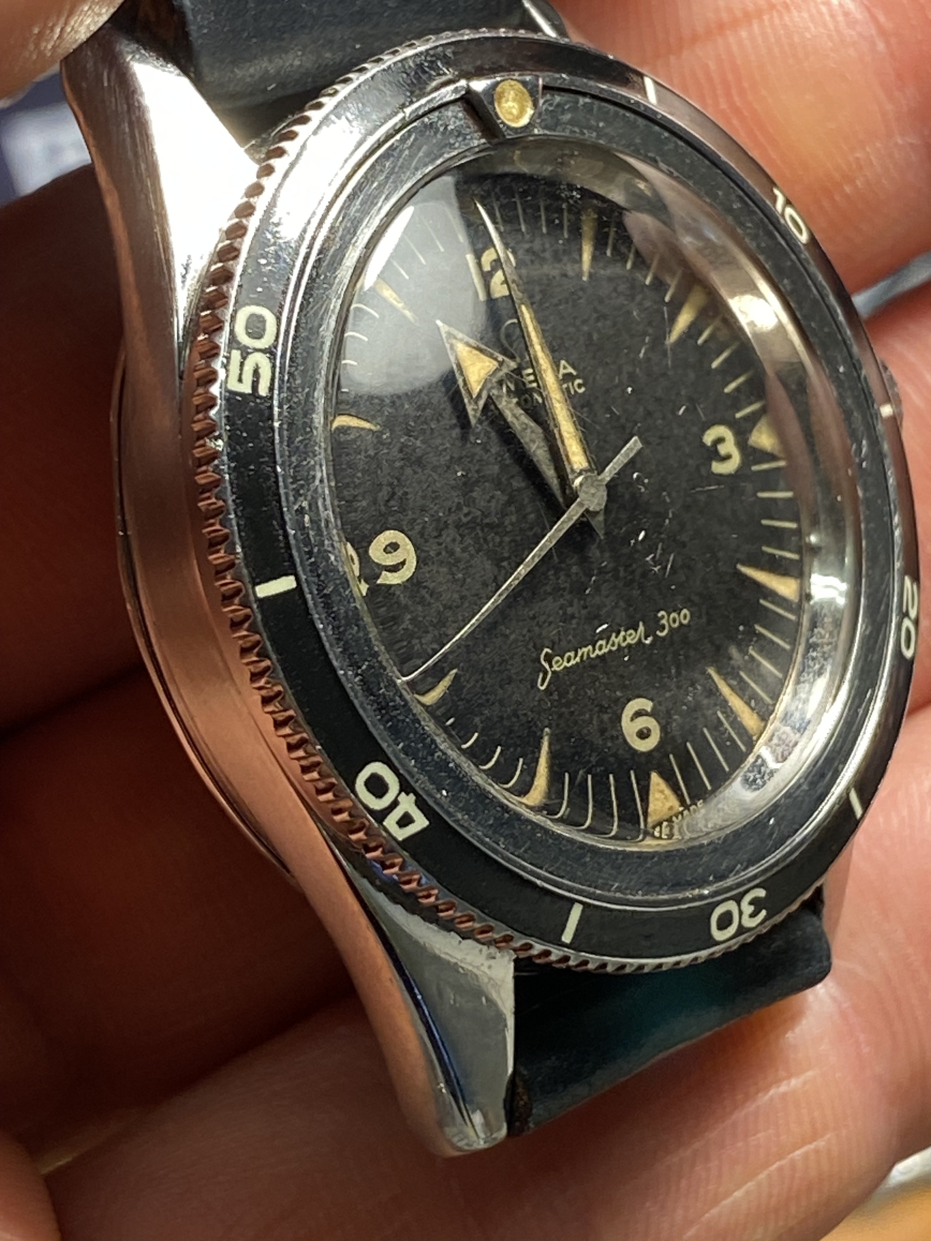 -Seamaster 300ck 2913-3 only head (1958) with Extract. Restored Bezel (I'm told by Aldo but I don't have any documentation on it). It comes with a generic leather strap.