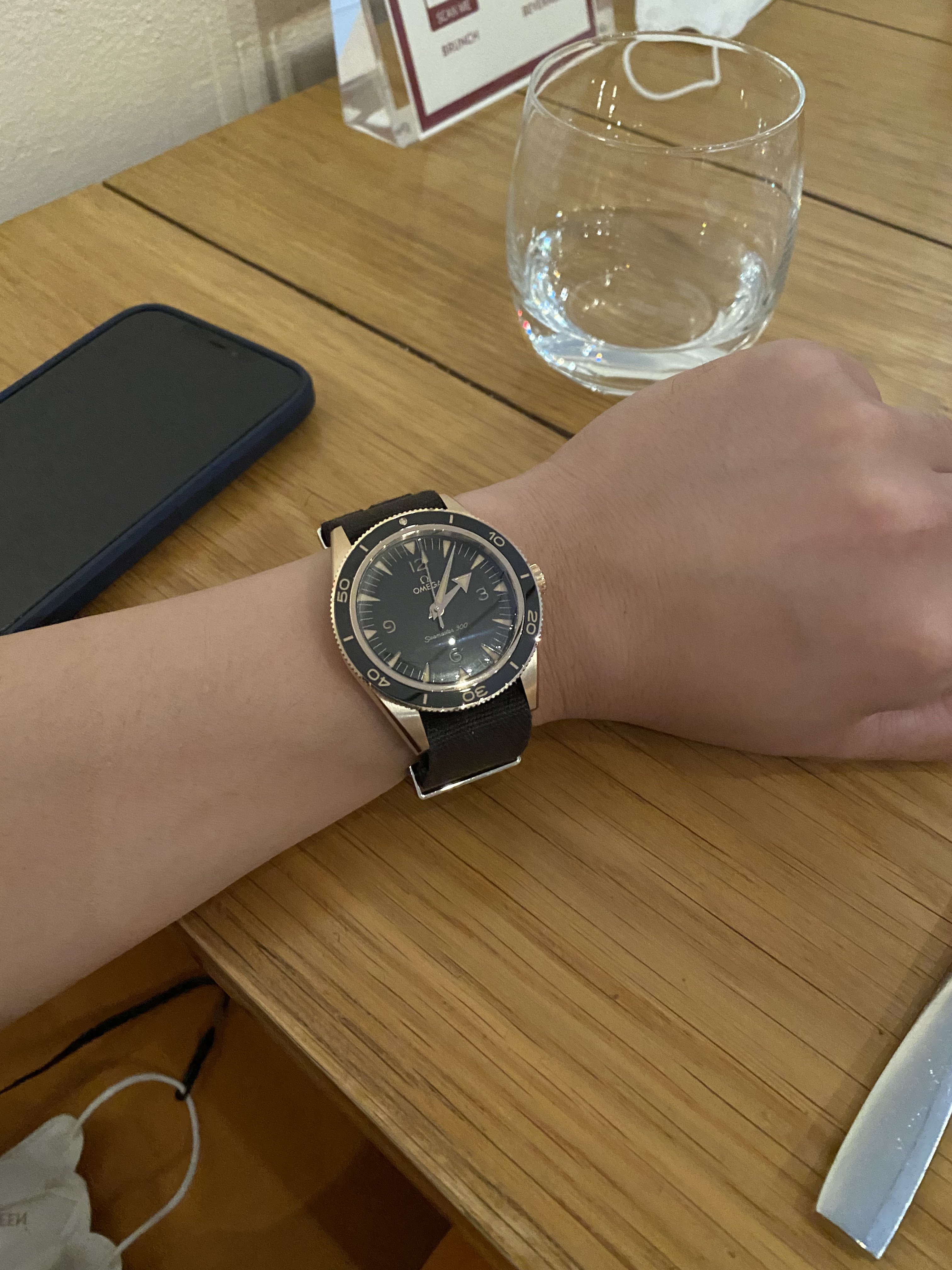 As happened with the new Bronze/Gold Seamaster - in my opinion a really great looking watch which I wanted to see it in flesh. So I visited my local Omega Boutique to try it on.