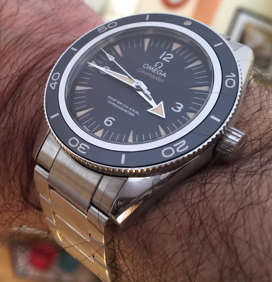 路I had been wanting to get back into an Omega and when I saw the Seamster 300 Co-Axial, I pretty much knew that would be the one. The only aspect of the watch I did not care for was the center polished links of the bracelet. I asked the dealer where I bought the watch if he could have a watchmaker create the same finish as the outer links of the bracelet. Let me know what you think as I am very happy with the look. What do I like about the watch? Well, just about everything. The dial and style is fantastic as I had an old Seamaster 300 many years ago and was always attracted to that look. The movement is beautiful, and the fit and finish of the watch is so high quality. I know many people will miss the date window but I am really pleased Omega decided to leave it out as having the three, six, nine, and twelve, gives such great balance to the look. Here are some shots of my watch:View attachment 110526