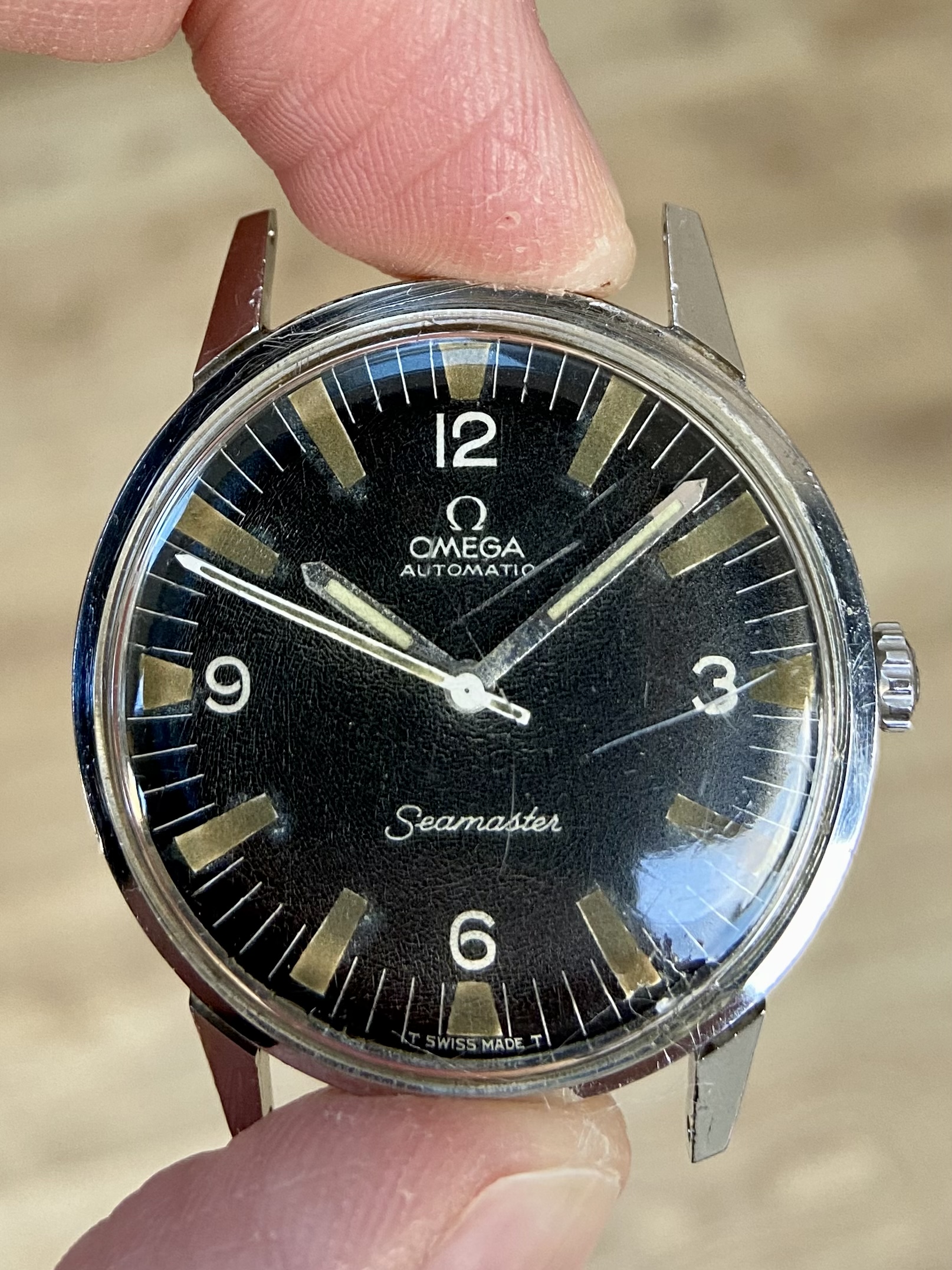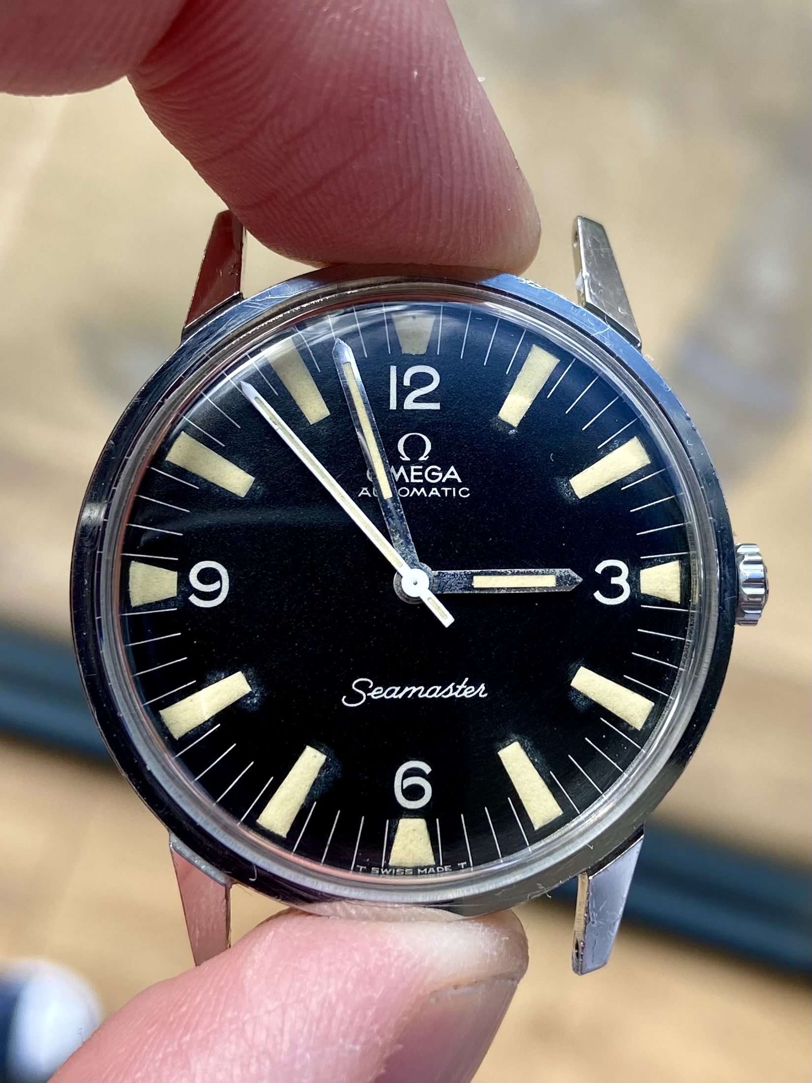 Anyway, I’ve been looking for a genuine ‘Seamaster 300 Companion’ on and off for a few years and they’re not easy to find. Crucially, it’s not just the dial but the hands that are rare, particularly the seconds hand which I believe is only seen on this specific version of the 165.002. Apart from the specific dial and hands, the case, movement and crown are the standard items seen on the 165.002.