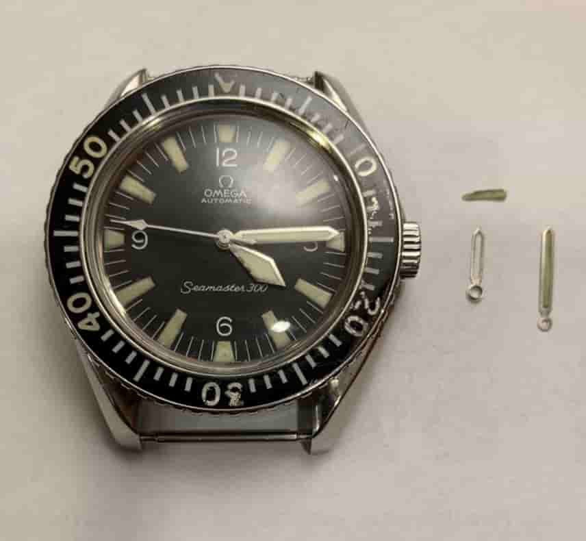 ·Hi - I have this vintage 165.024 which came with the hands shown in picture. The lume in the hands is brighter than that of the dial, and hour/sword hand has some irregularities around the outer part where it looks like the chrome (?) has come off. The watch also came with a second set of hands, from one of which the lume has come out, but that lume seems to match that of the dial. This set, however, includes a narrow hour hand, which I've not seen on one of these watches before. It seems that this could be the original hands based on the matching color, but I wasn't aware of these watches coming with type of hands.