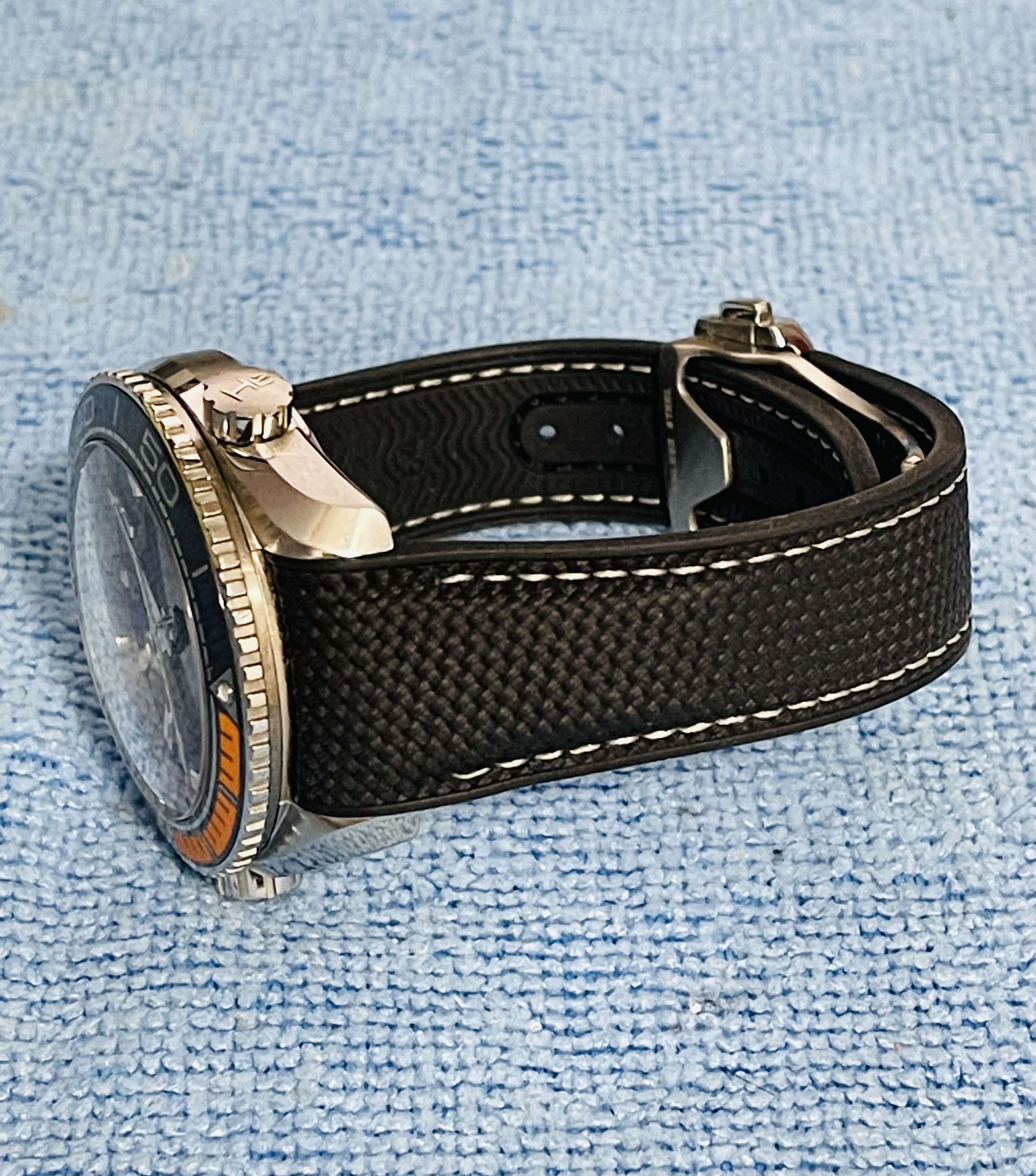 ·Hi All, I am trying to find a waterproof strap for my Seamaster 300 something along the lines of the Planet Ocean black and orange rubber one. I suspect the PO one would not fit as it is 22mm and the springbars would not line up. It does not necessarily have to be rubber, looking for black, dark grey possibly with a red or orange edge, 21mm, just has to look the part, sailcloth, nylon etc. Has anyone come across anything bonny for their 300. I would prefer one to go on a deployment buckle but could live with a tang one. I have searched the web and can find nothing. Any info would be appreciated. Show me what you have.