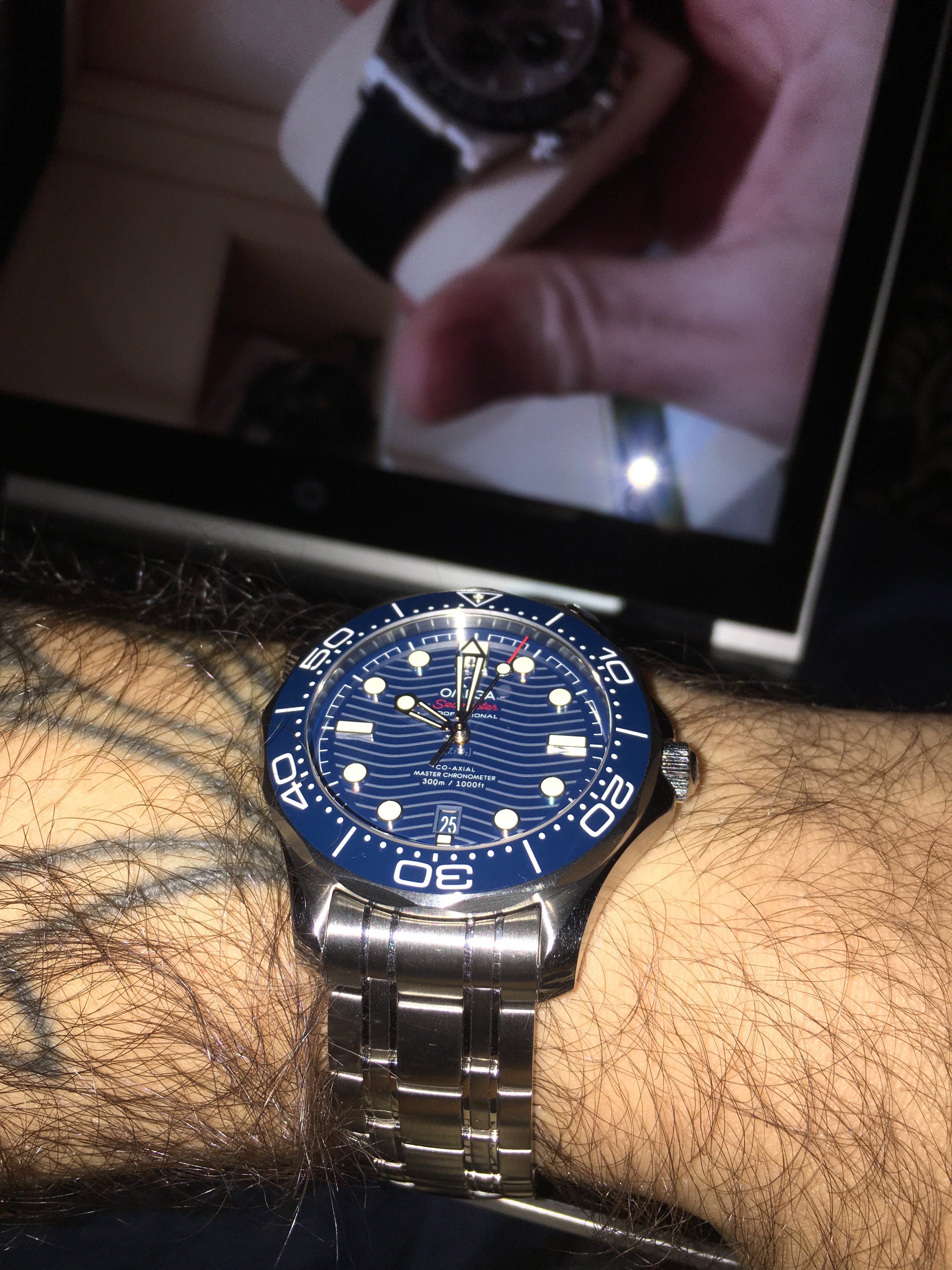 Each iteration of the Seamaster 300M is better than the previous one. I can't wait to see what the next generation will look like. Hopefully Omega will keep the same case and the rubber option, make it a fully lumed bezel, make the hands narrower, and get rid of the waved dial. That's how I would like it but everyone has a different take on it I suppose.[/QUO