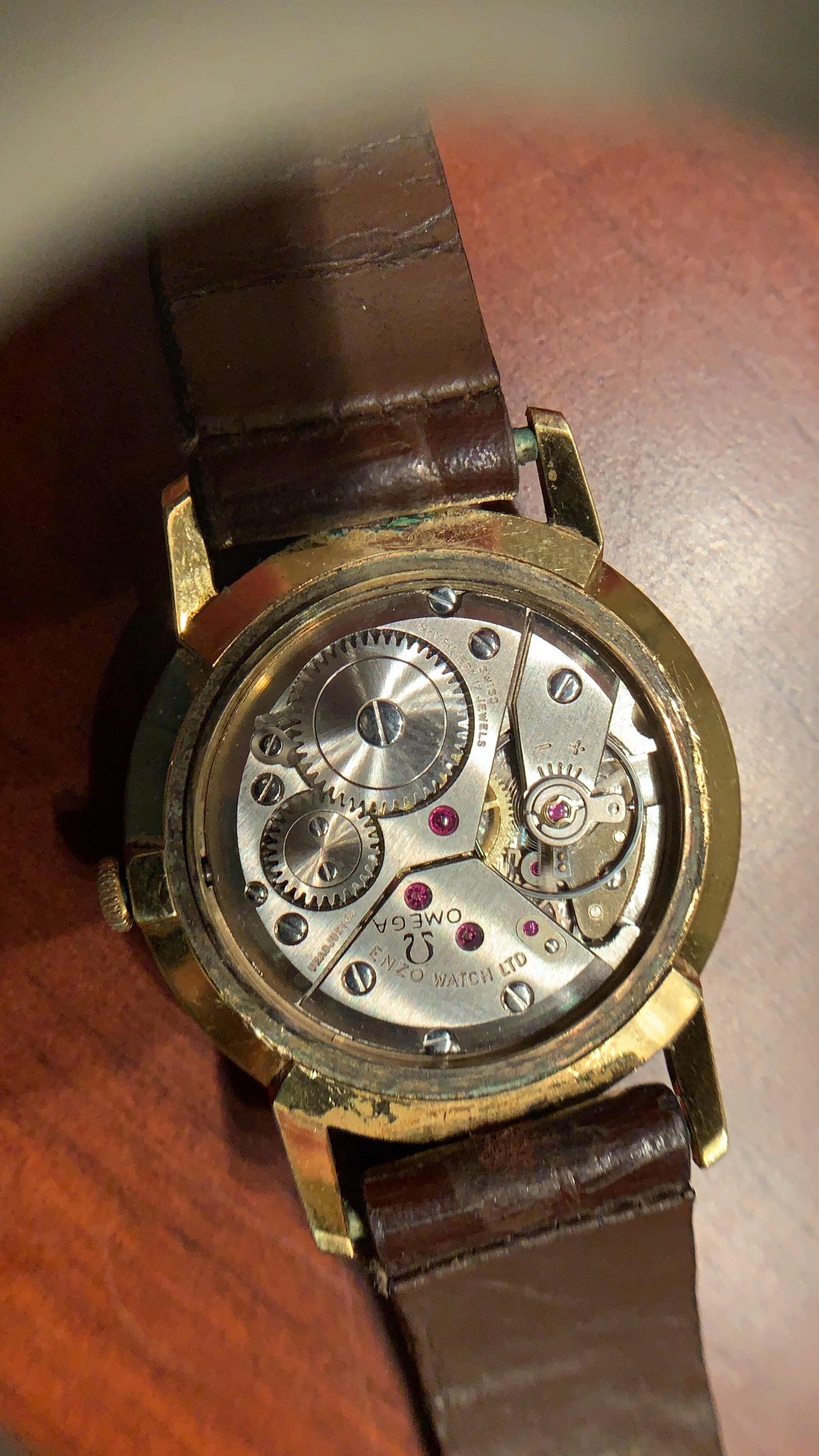 I believe its a real Enzo watch, but nothing to do with Omega, and the plated interior markings are more believable than the solid gold exterior marks.