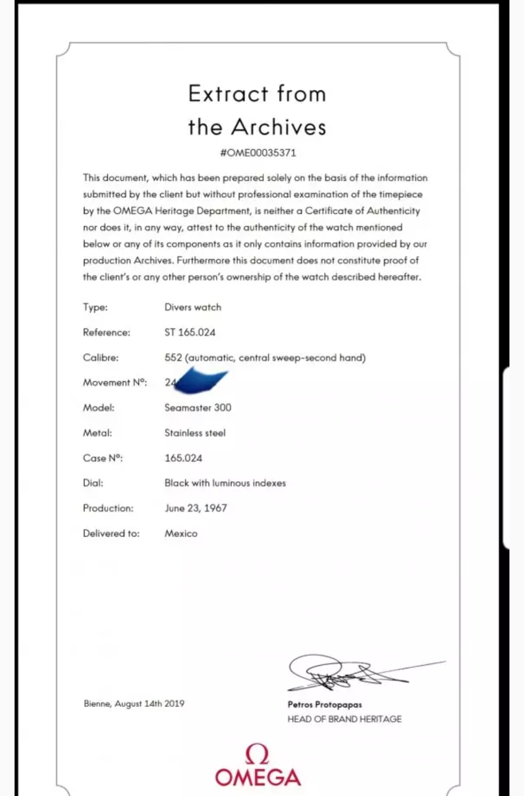 "We know it's a 1966 by the Serial Numbers on the movement which are in the 23,200,000 range. Omega released their serial numbers to the public at some point.