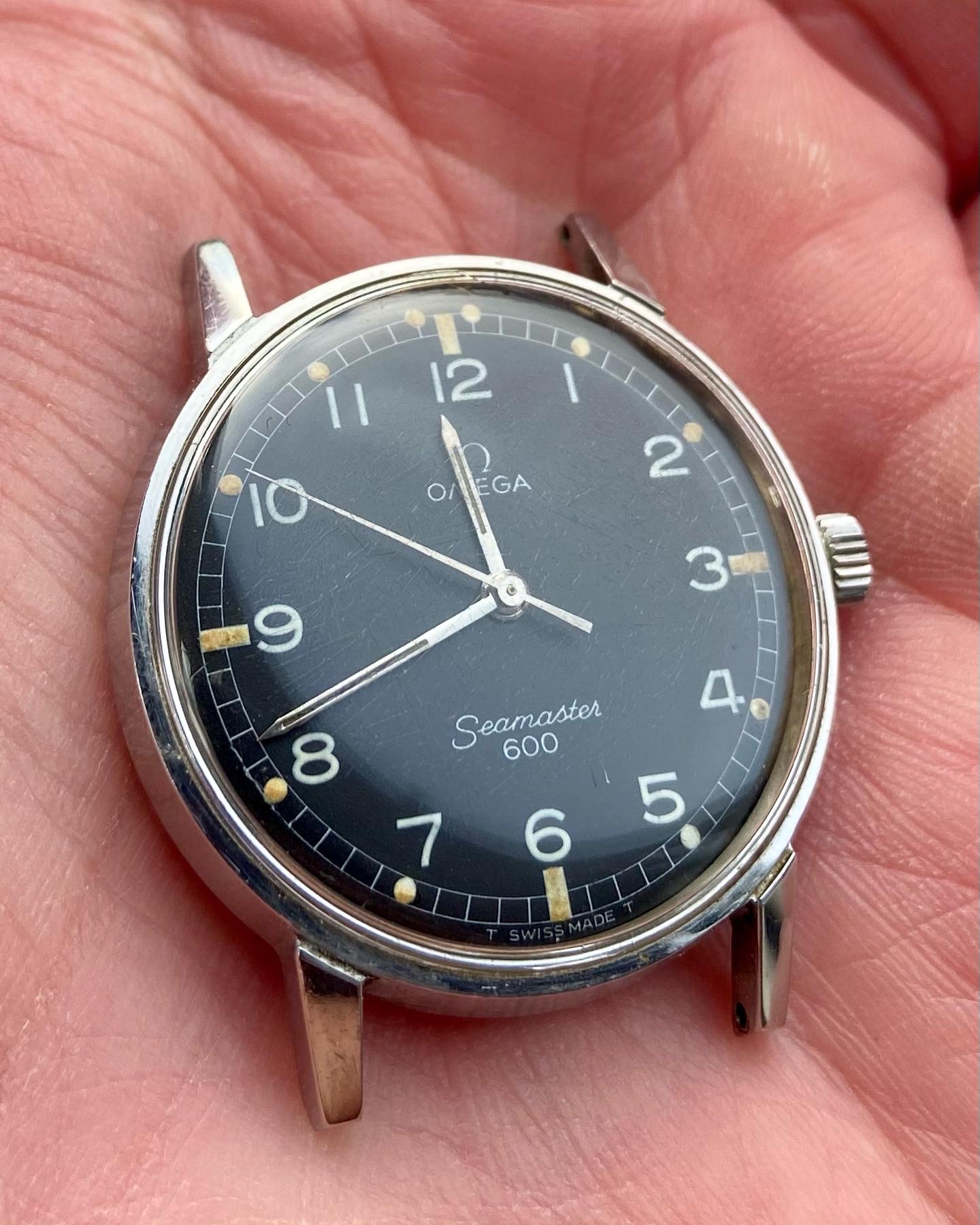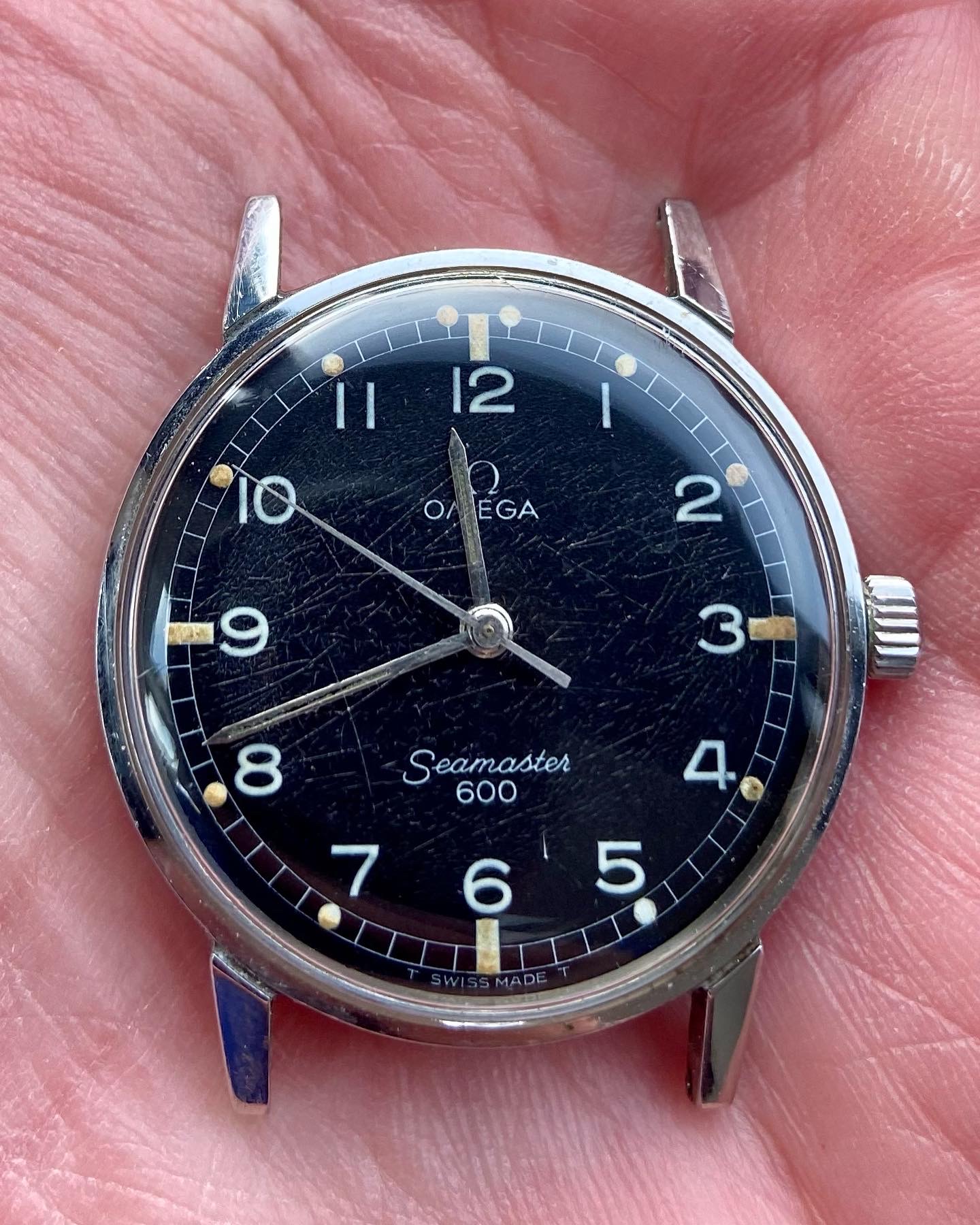 These are much less frequently seen. I’ve been looking for a good while and this was the first I’d seen for sale. Having a good look this morning, through an original a very crazed crystal, I’m happy it’s a factory original dial and it’s truly beautiful. Now to see if I can salvage the crystal...