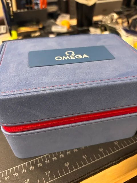 ·I recently picked up a SMP 21.32.42.20.04.002 from an online dealer. I have purchased other watches from them before with no problems. I was expecting the red, white and blue box since it was listed as being new, in the original box. Instead I received the watch in a standard omega wooden box. Did they switch boxes on this watch? I will pass this on to one of my daughters so day and would kind of like to have the original packaging.