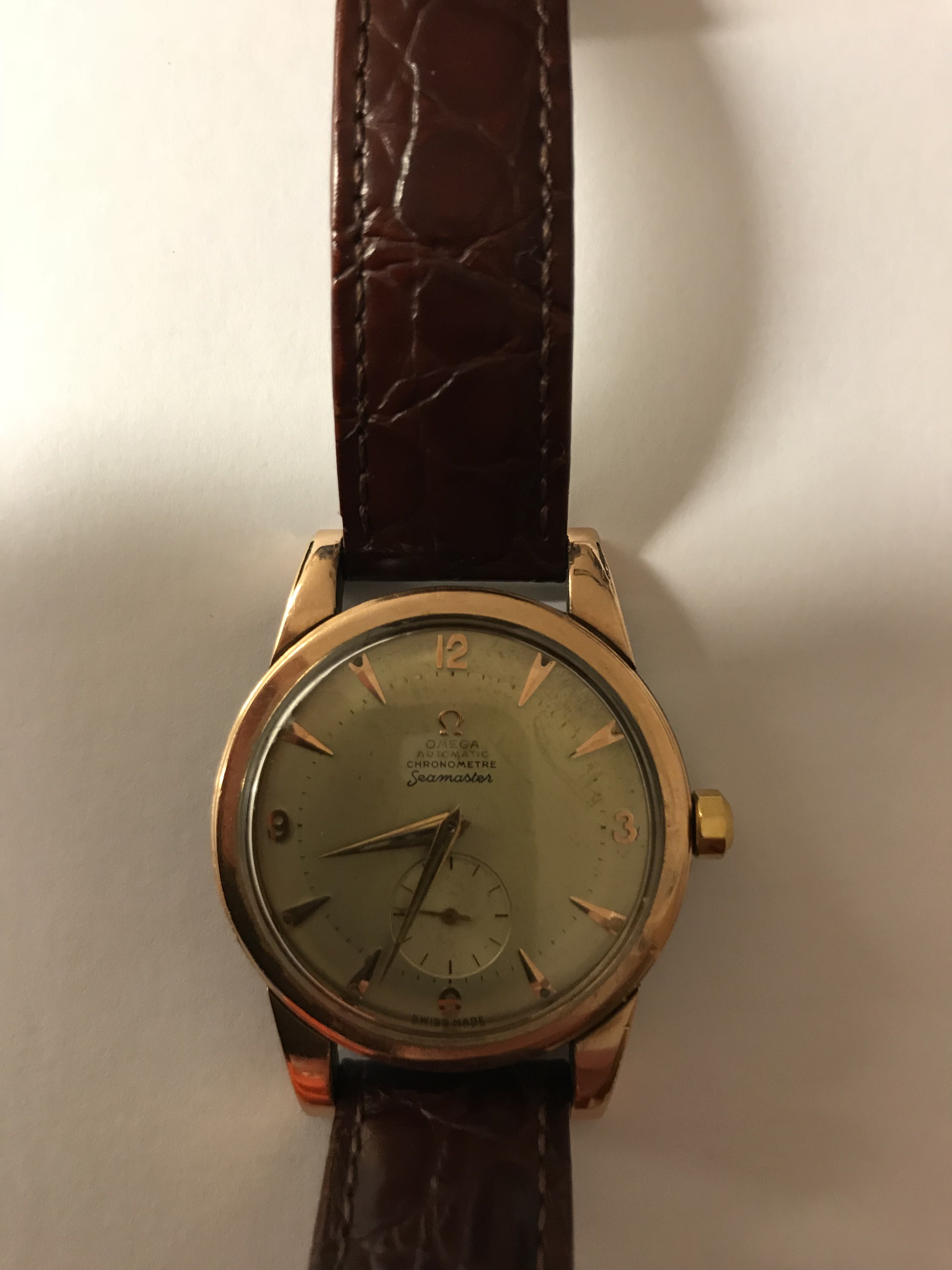 I’m offered to purchase this nice rose gold and steel Seamaster from the 50s. I have tried to search the web for info, but can not find info on this variation. Automatic Chronometre. I think it’s a more exclusive type of Seamaster. Does anyone have an idea of a fair price for it? It’s in working condition, but has some rather ugly inscriptions on case back. Thanks /Ed