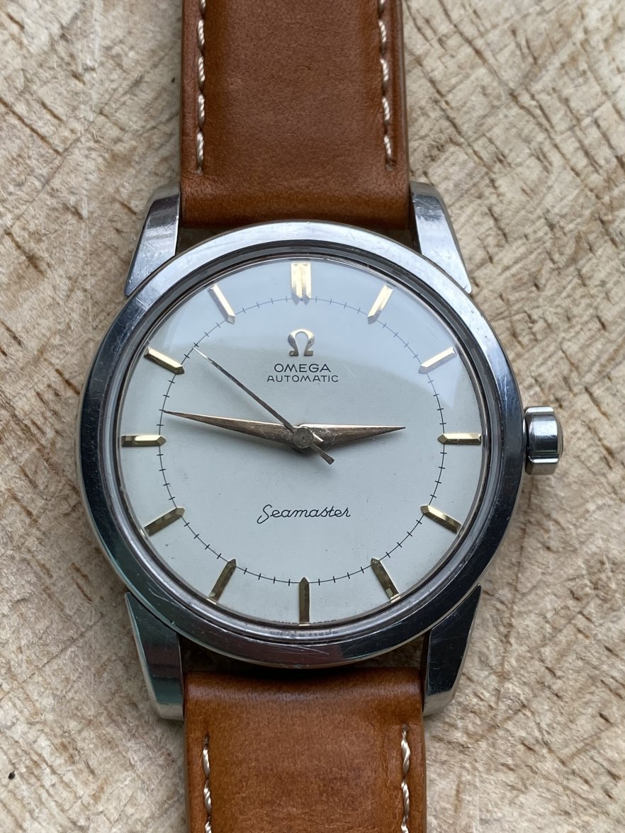 Hi All, I recently received this watch which has been handed down in my family for around 70 years. The watch was purchased somewhere in Europe (probably Germany) in the 1950s and brought back to the US by my great uncle. Thus far, I have not been able to find any similar dial for a 1950s Omega Seamaster. From what I have found, I believe it could be a 2846 model. The watch has been serviced a couple of times for the gasket as well as a main spring replacement in the last 20-25 years, but I do not have papers for it's maintenance history before that. Any help in figuring out when/what this watch is would be much appreciated!