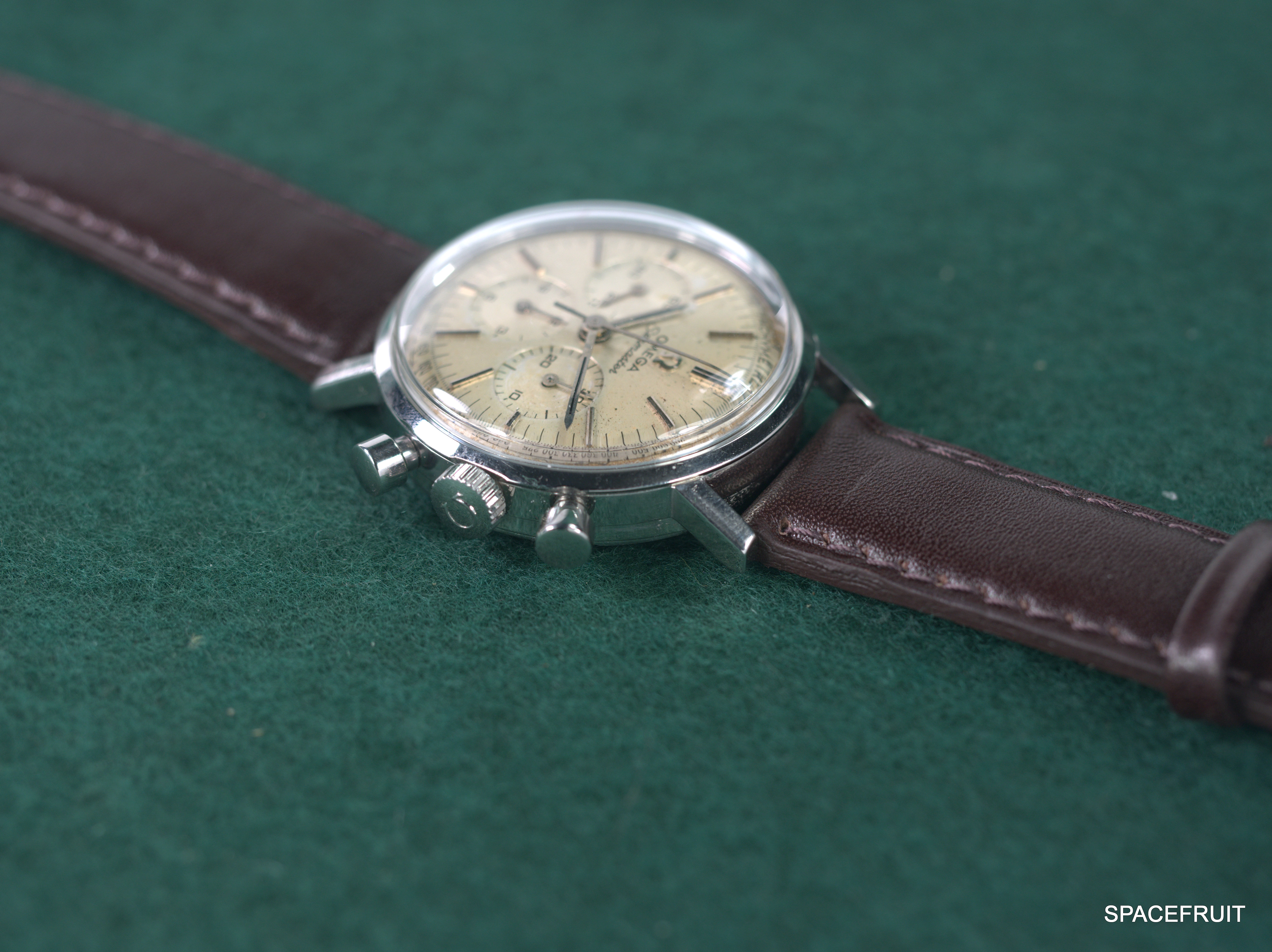 This was bought by me a little while ago and it is charming. I have just had it fully serviced and replaced the pushers, crown and crystal. Hands are original, and in beautiful patinated condition.