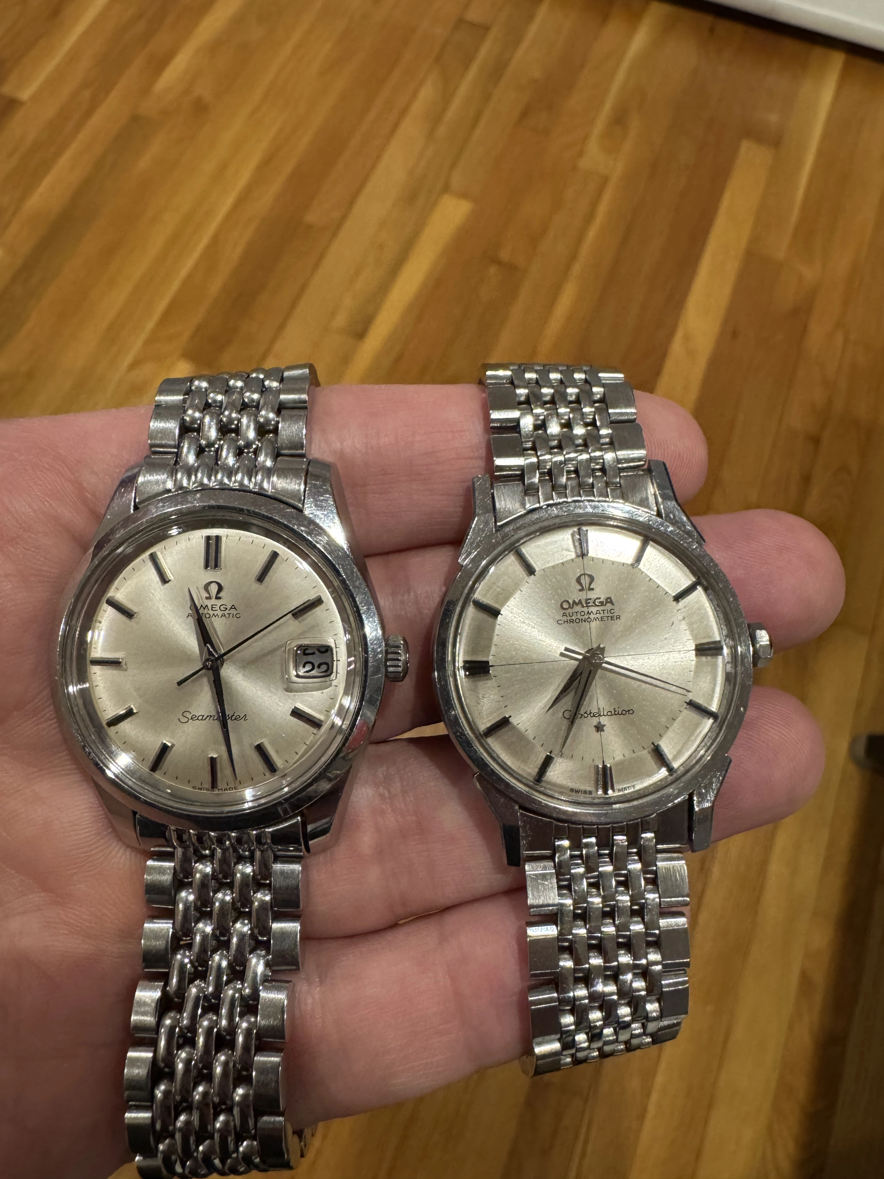 I’m looking to buy a 166.010 Seamaster to change up my collection a bit. I already own dog leg/lyre lug constellations so was hoping someone would be able to share a photo side by side please so I can see how differently they’ll wear