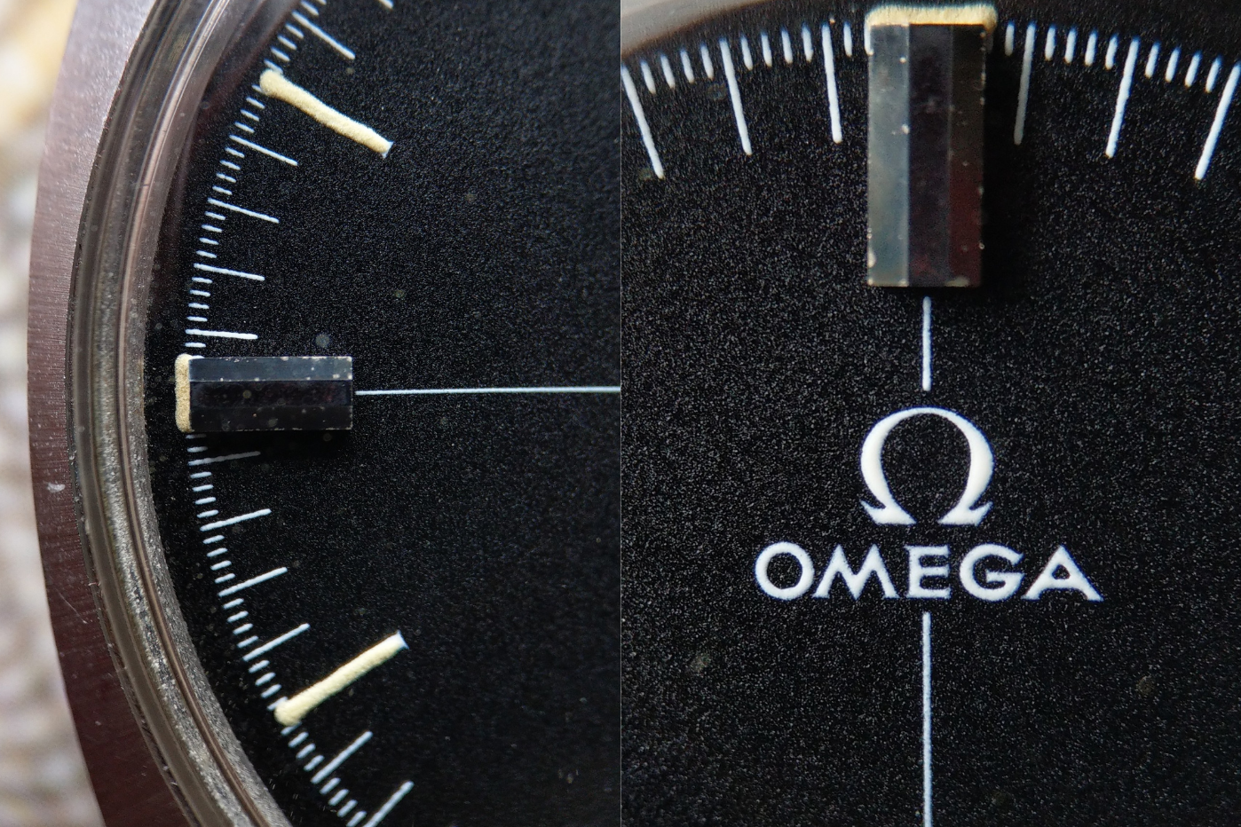 As always, redials are out there, although not that widespread of a problem compared to many other references. As is tradition, black is in vogue in “refurbishment” workshops. I’ve also seen quite a few colorful redials in green, red and blue, some of which are well printed. Often these originate from South Korea and American dealers love to peddle them. Generally speaking, Cosmic redials are easy to spot. Pay attention to texture (sunburst being the most common one), fonts and luminous tritium. In this thread you’ll find useful pics of correct text and texture for comparison. For example, my black dial Cosmic has granular texture, sharp white text & crosshair and tritium blobs at applied markers 12-3-6-9, rest are painted with tritium. Old tritium almost always looks tan/brown/dark, not pure white.