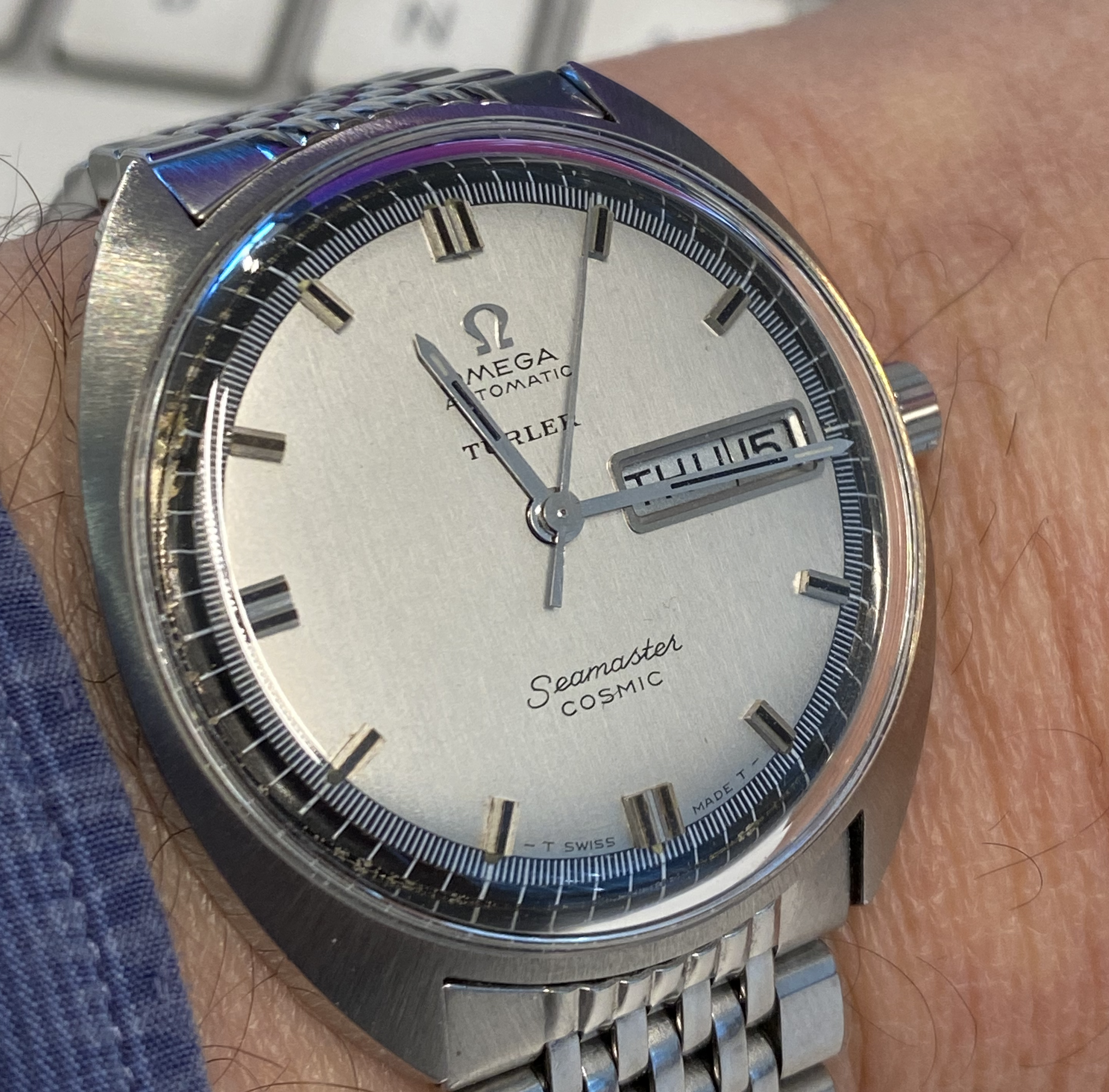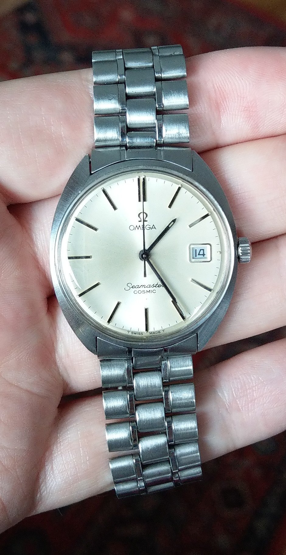 I didn’t even get to finish my sentence before the man popped up, yelled whatyoujustsay and tried to punch my teeth in. Luckily, I have good reflexes so I was able to dodge the punch. He started chasing me around the bar and I was just running, blocking and dodging strikes. But as a diehard Cosmic collector and our club’s apostle I was still trying to convince him of the joys of vintage Omega. I evaded attacks and shouted “Wait! Stop! Just heard me out!” but he flung a beer bottle at me. I kept trying to convert him: “Cosmic is lovely! Funky looks!” - evaded a strike - “Great bang for your buck!” - blocked a kick - “You will like a monocoque case!” - Nonetheless the man wasn’t having any of it. Instead, he shouted all sorts of profanities and even “I don’t want your homocock!” How rude!
