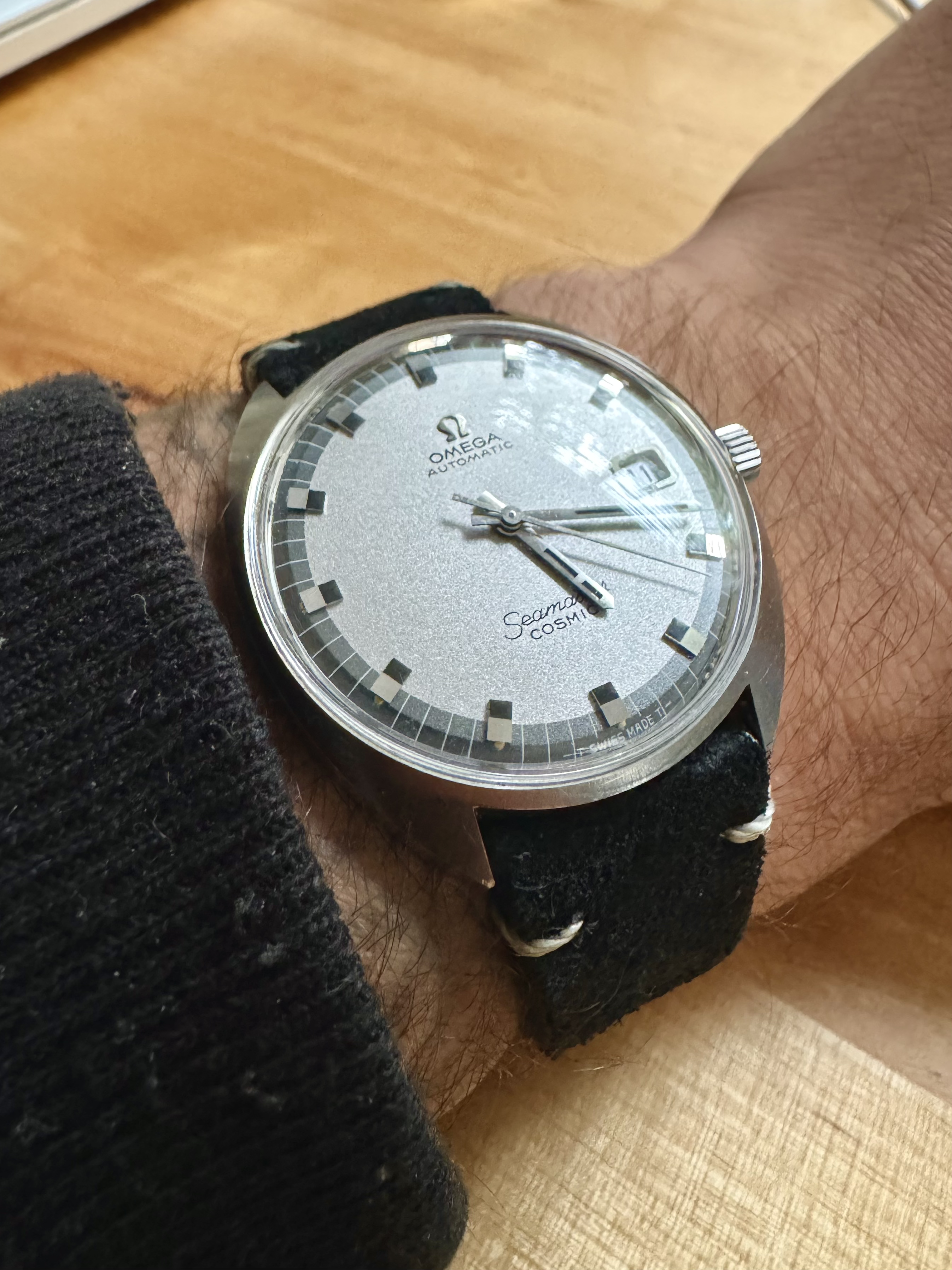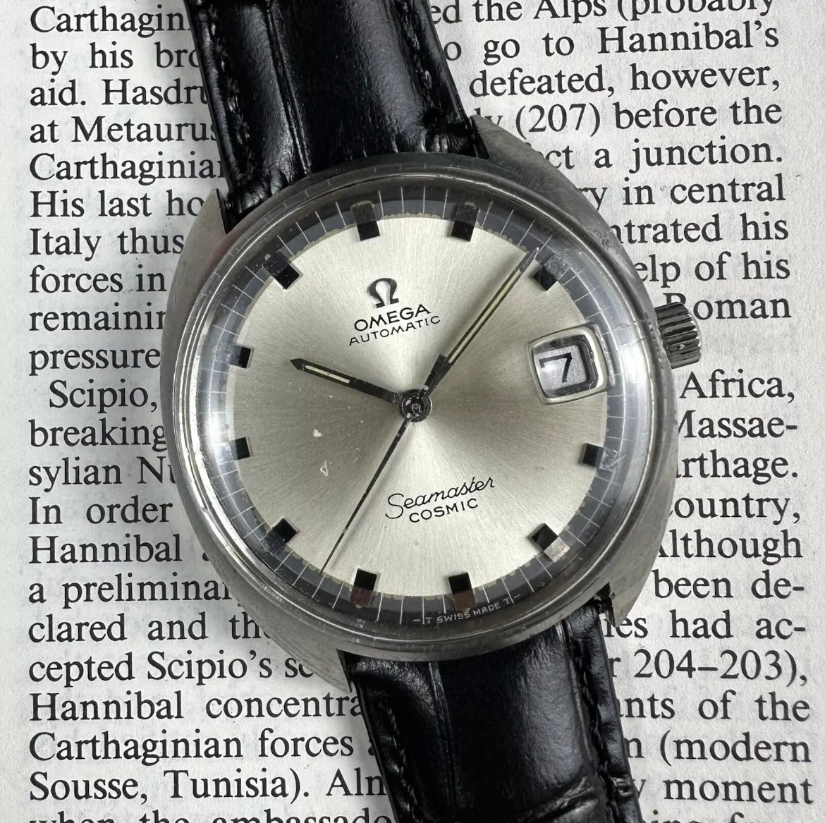 Omega released both manual wind and automatic COSMIC models; you didn't mention which type you own. (If the dial is original, an automatic model will have "Automatic" on the dial.)