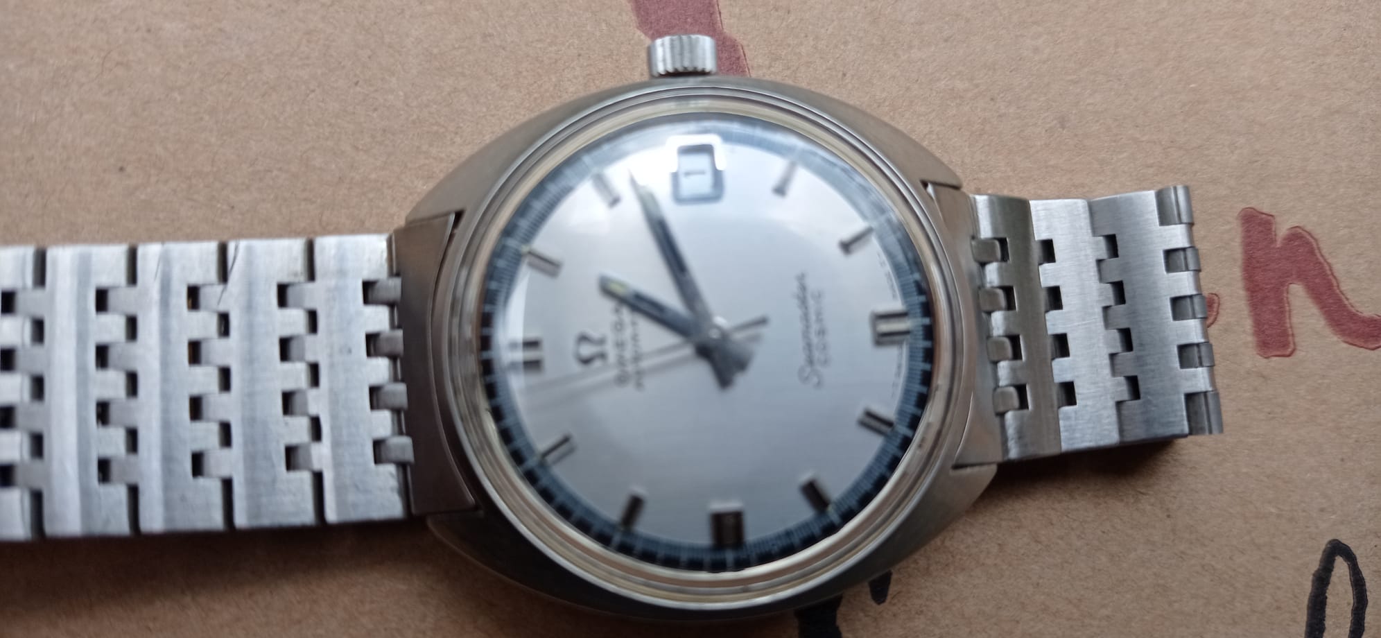 ·Good day to all OF members. After joining recently I've been researching so much into de forum but still too green to make certain decissions before asking. I already own a classic gold vintage piece, which I intend to present properly in the forum, by the way, and have been looking for a vintage steel Omega. Already checked a lot of them and the forum reading has been helping me to understand my preferences and taste. I found the Seamaster Cosmic of the pictures below. I've had a crush with the watch, love the look, bracelet, period when it was built, etc. It fits totally my expectations but I'm aware there may be objective issues to take into account and I'm asking for your expert advice. Seller claims its in good shape and works well. No reference of known service or maintenance. No pictures of the movement available. I cant neither have it in my hands as I'm far from seller's hometown so I guess this would a -leap of faith- buy. Price asked is 550 euros. I would really appretiate any thoughts given the information and pictures availabl