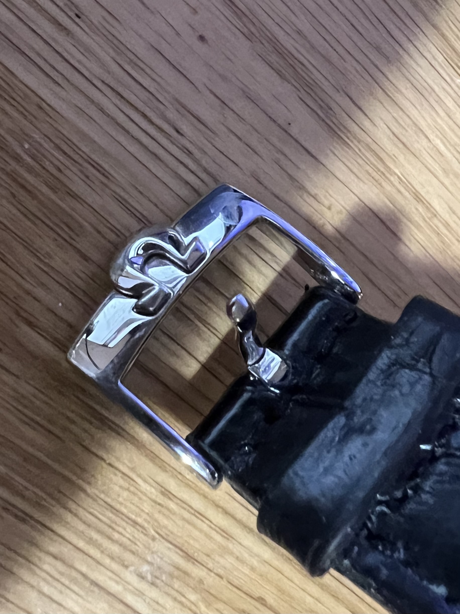 It comes on a genuine Alligator strap with the classic OEM Omega buckle reissue. The Crystal was recently replaced with a genuine Omega Crystal.