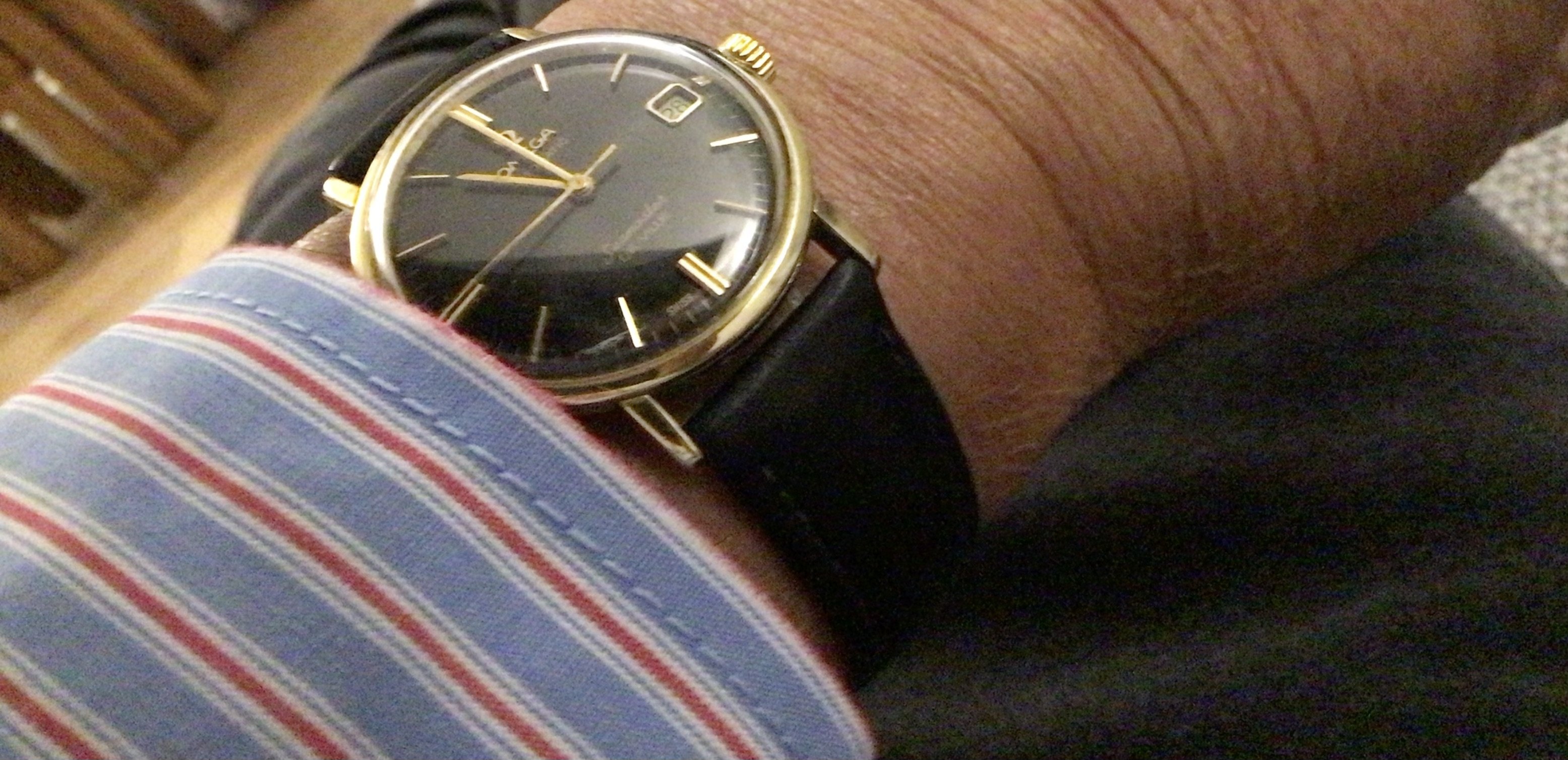 ·Hi all, I’ve owned this watch for about 20 years, now retired and don’t get dressed up much these days so tend not to wear the watch anymore. I’m thus thinking of selling but haven’t got any clue as to its possible value. Is anybody able to give me a rough ballpark figure I should be pitching it at. I’ve tried to research the watch as much as can but it seems the original black faced dials are quite rare. The watch is fully working (ignore the strap it doesn’t belong) Apologies for photo quality.