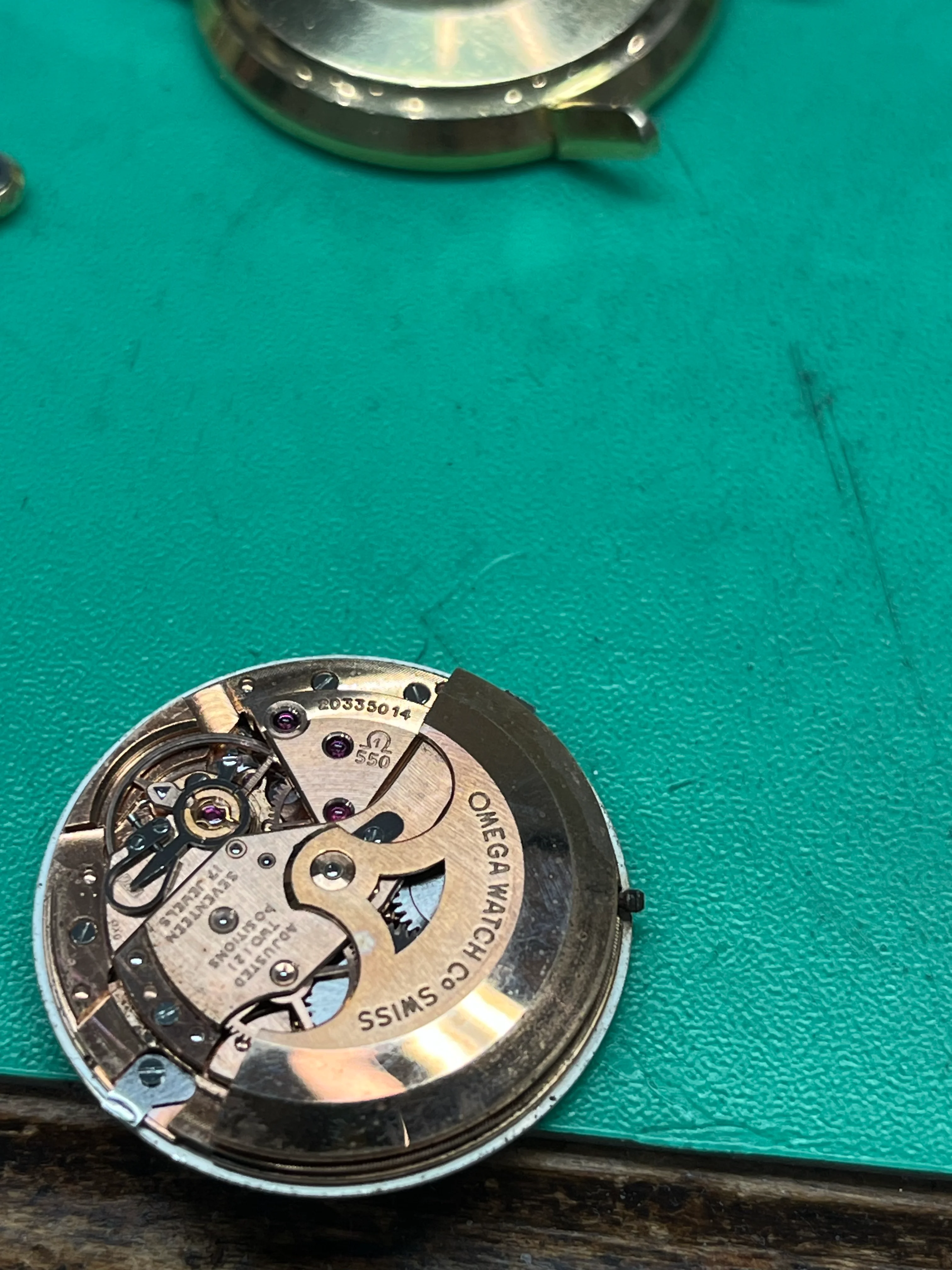 After purchasing the watch off eBay, I unfortunately noticed it would get stuck occasionally and so a service was needed. I fully expected this anyways as it seems like it hadn't been worn in a while and came from an estate per the eBay description. I first took it to an Omega Boutique just to see if what they thought of it and their prices for a service. They recommended a jeweler/watchmaker store only a few blocks away that worked on vintage watches. If you're in the DC area, DM and I can let you know where I went. The watchmaker sent me a video of it after he opened it up, mentioned there was a little bit of rust around the stem but not throughout luckily.