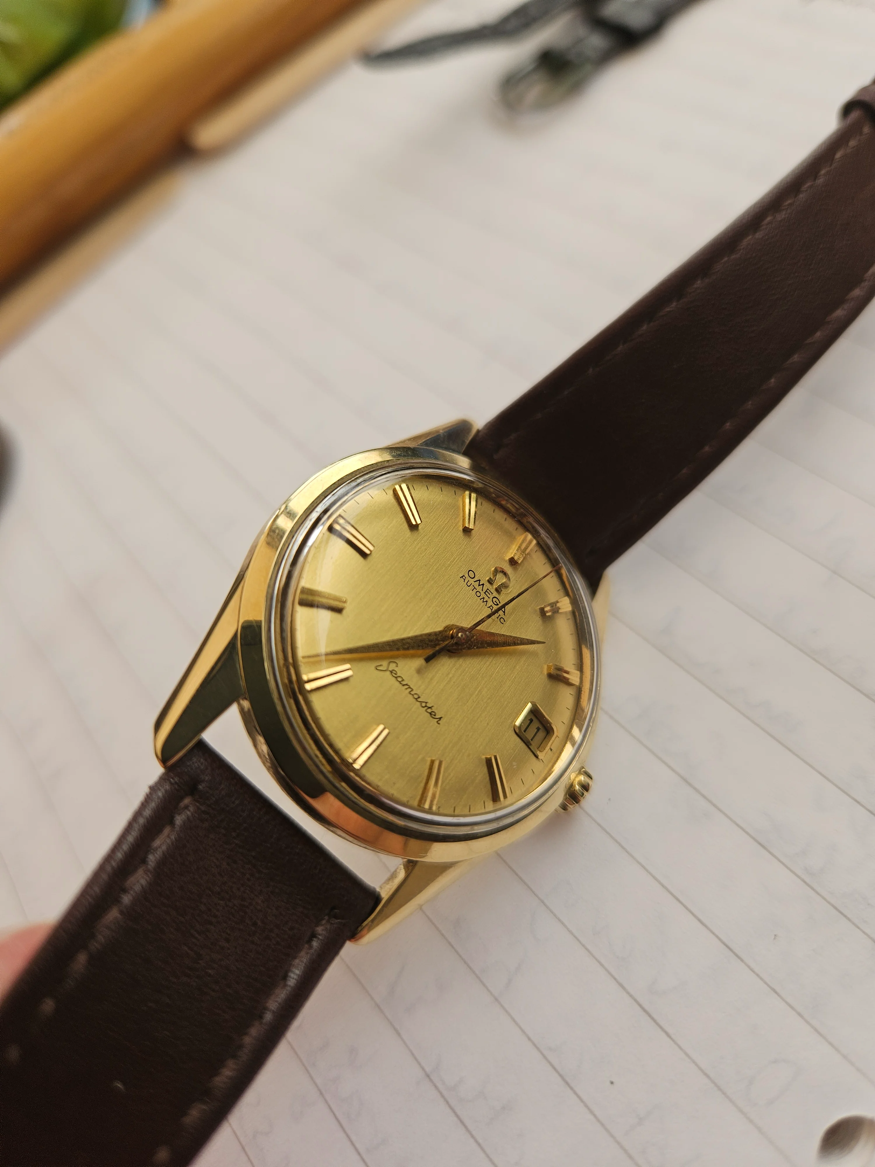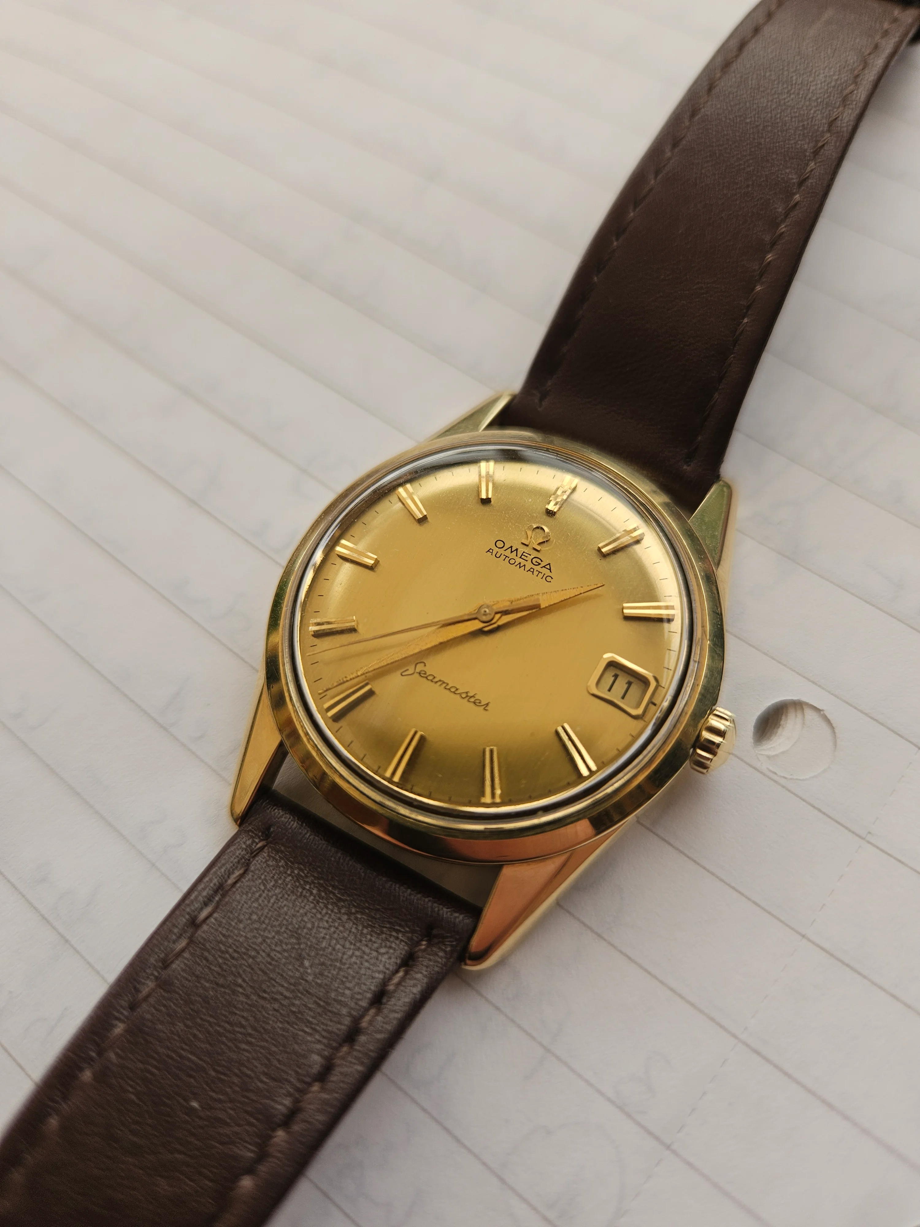 I have several Omegas from the 50s and 60s, but recently acquired a 14k gold Omega Seamaster, I believe it's a 1966 14701 SC, however I had a query about the dial. It appears to be a solid gold dial, sharing the same brushed effect as other deluxe models on the site, however these mainly seem to be 18k models. Is anyone aware if these were offered in 14k?