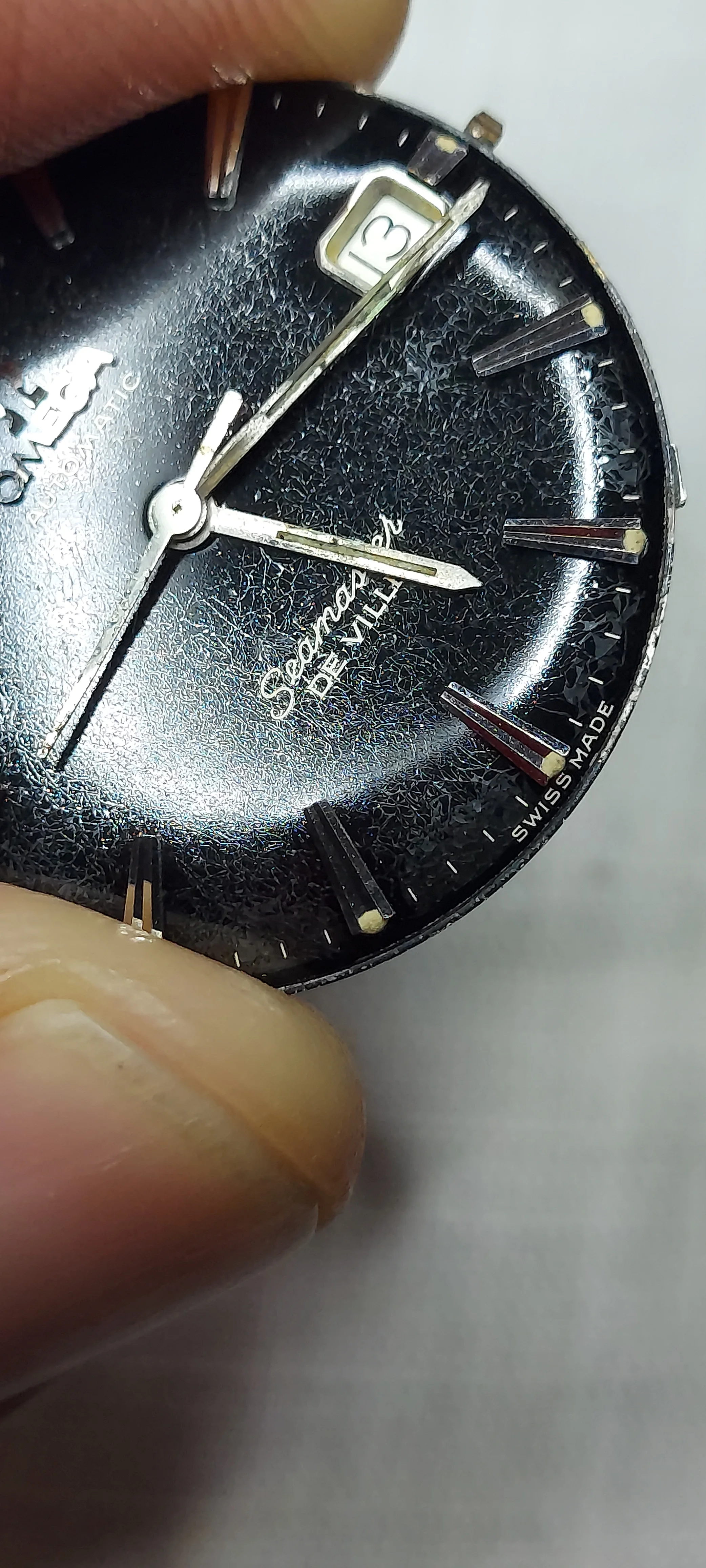 ·I'm looking for opinions on my Seamster Deville that is 560 cal. I have shown to many groups and people and they deem it an original example. 1 person is stating its a redial, as script too fat and should be different color. I'm highly confused by this, so I come to you. Thanks for your input. Cheers