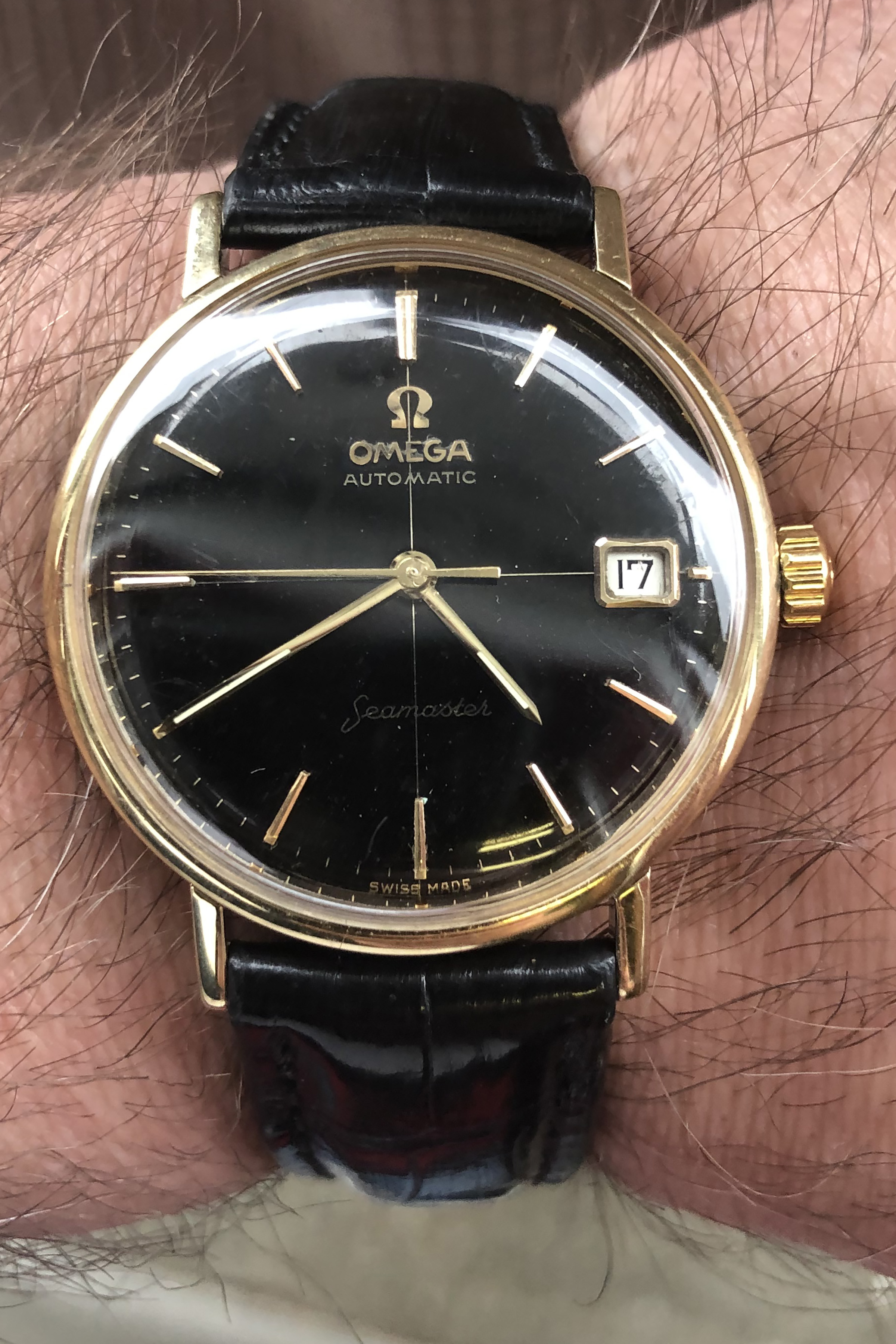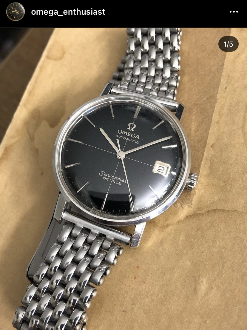 For those who aren’t aware, the watch in question is a 60’s Seamaster DeVille, unishell case and most importantly, black dial with crosshair. The one worn in the actual show is believed to have been a redial, but did the combination ever actually exist from Omega?