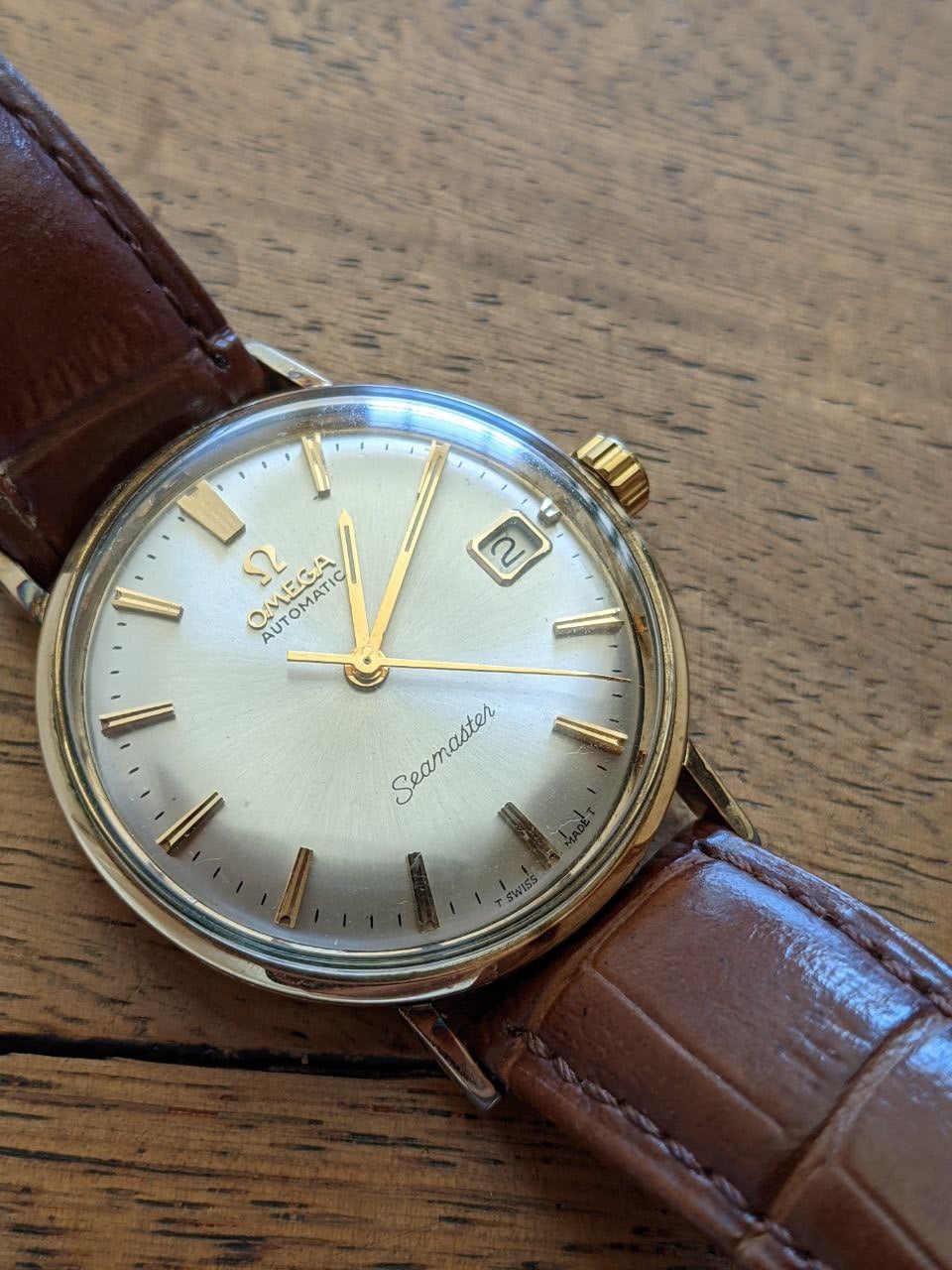 ·Dear All, I am not an expert in vintage Seamasters, so here's a question for OF experts. I think this one is is a Seamaster from 60s Cal 562, 24 Jewels Automatic Movement, solid 18k gold monocoque case 34 mm, the case reference number 917286 and model number 166020.SC.62. The plexiglass seems original, the monocoque case looks very lovely. I have some doubts about the face: should be there lume dots applied on hour markers (as the hands are lumed)? Can it be a re-dial?