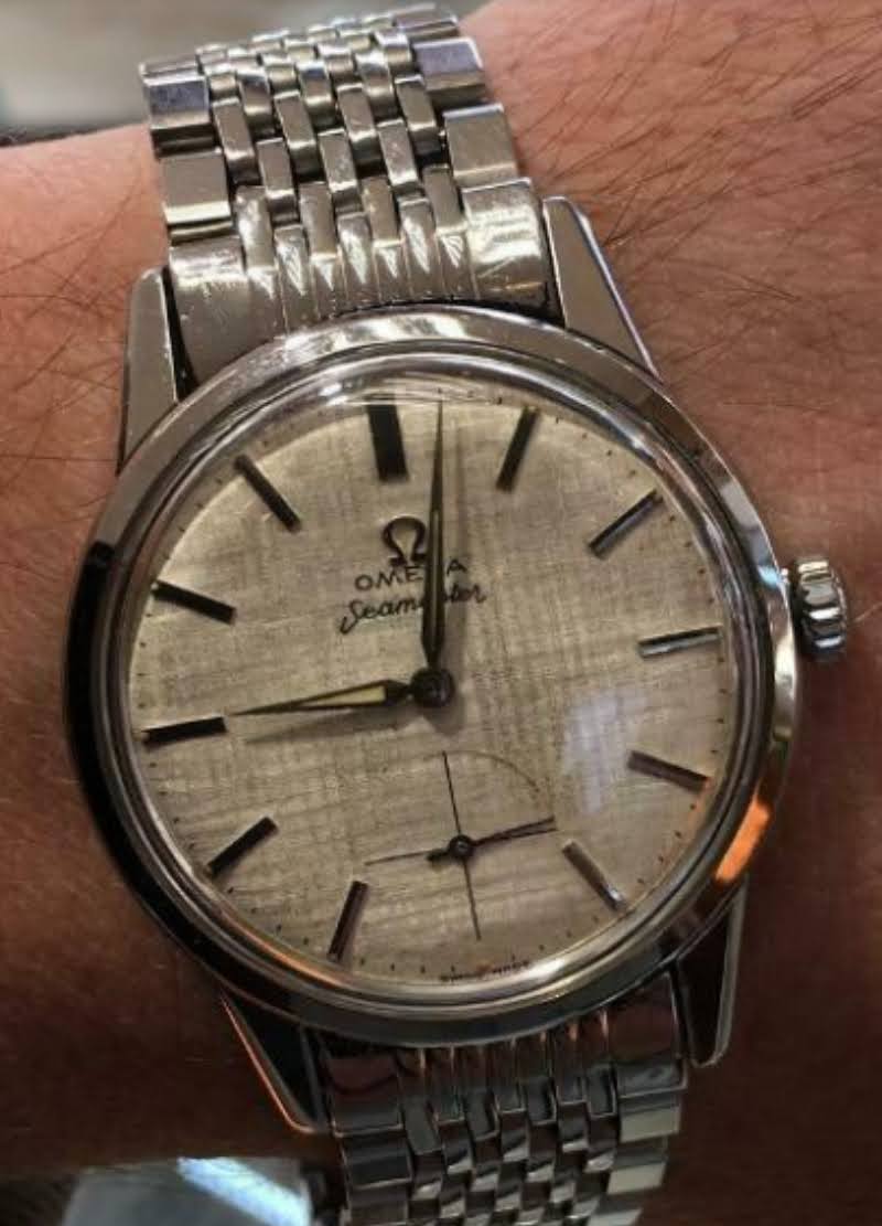 ·On the theme of been attracted to the unusual, I came across the following linen dialed seamaster. I think it's an attractive watch and the crosshair sub dial adds to the kerb appeal. Other than the soft edges on the lugs where it's obviously been well polished, I don't seen any other issues with my amateur eye. I accept the original BOD is attractive but wonder if a good quality leather band would do the linen dial more justice?