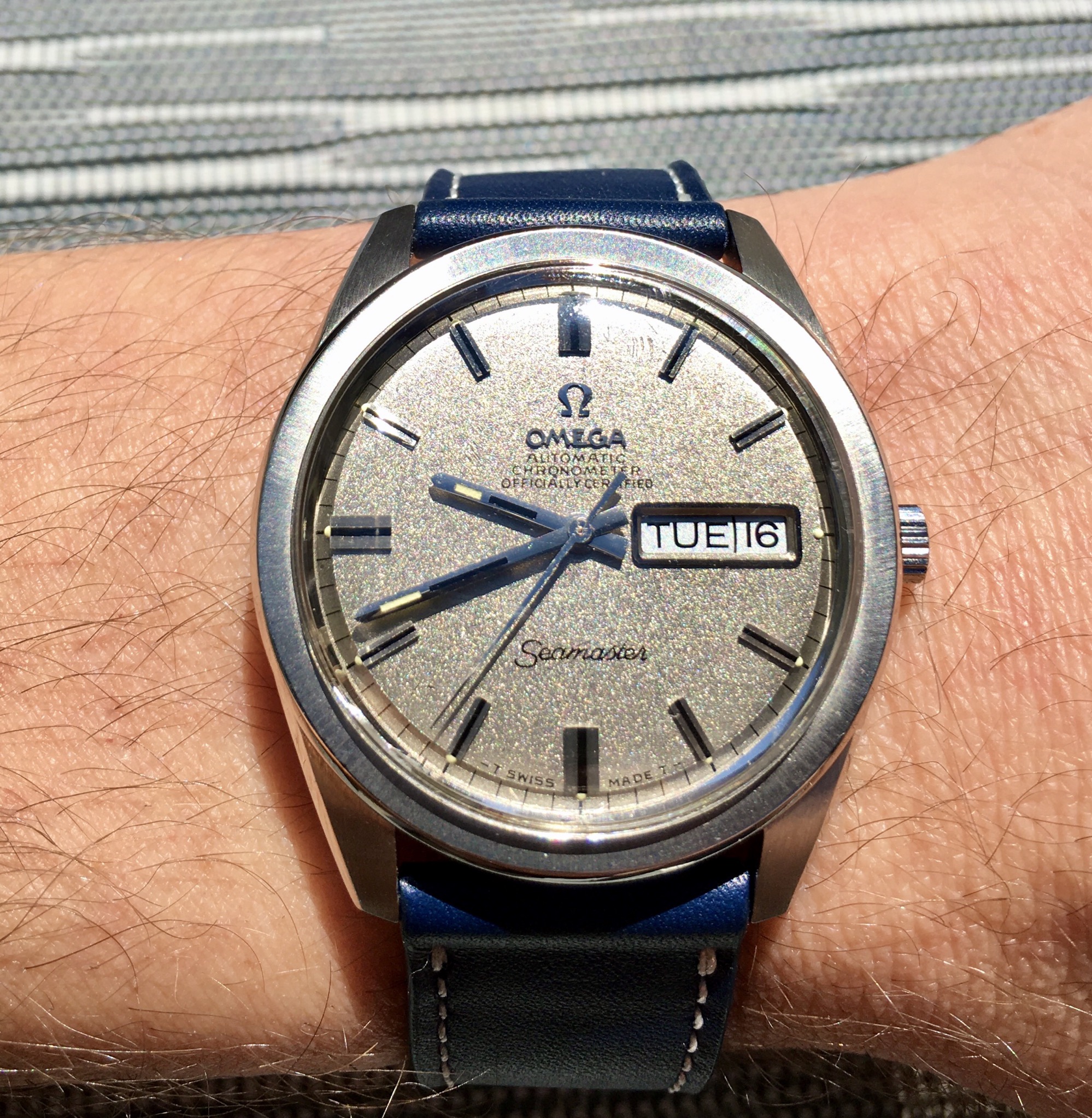 Can this maybe become an inclusive general sparkle dial thread? I wanted to start one with this, but it was actually in spa during lockdown - probably for the best. I know there are haters of this case - I love sharp lugs as much as the next guy/gal - but the shape is way short of the grotesque excesses of the early 70s (I was there at the time...), and the finish is slow to show scratches. Less commonly, although it is not signed "chronometre", it actually is powered by a beautiful cal 564. Maybe it was a custom order for Meister - anyone know?