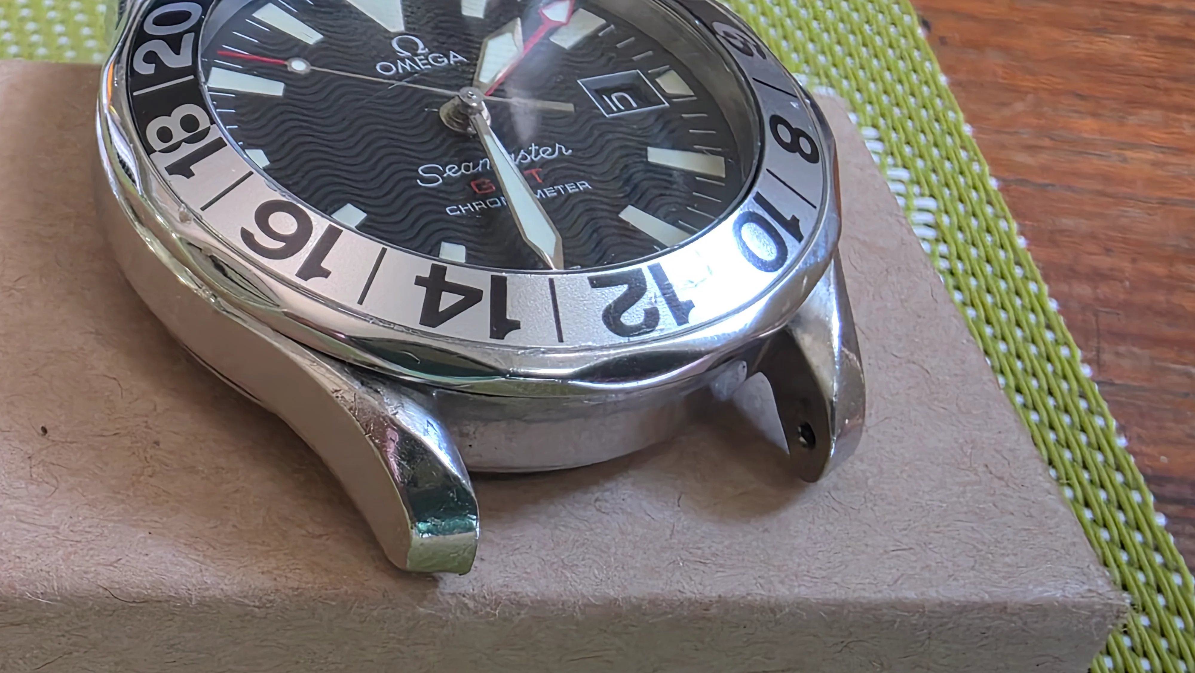 This is a worn watch, so it shows expected signs of use. As careful as I am, there are still wear marks along the case, scuffs on the outer bezel and insert, particularly around the 12:00 mark. Please refer to the photos for close-ups. The crystal has a couple scratches which are visible to the eye. The watch still presents well on the wrist, though of course macro photos will exaggerate imperfections. Please ask if you would like more photos of certain angles that I may have missed. This would be a good candidate for polishing, which would bring it back to its beautiful original condition.