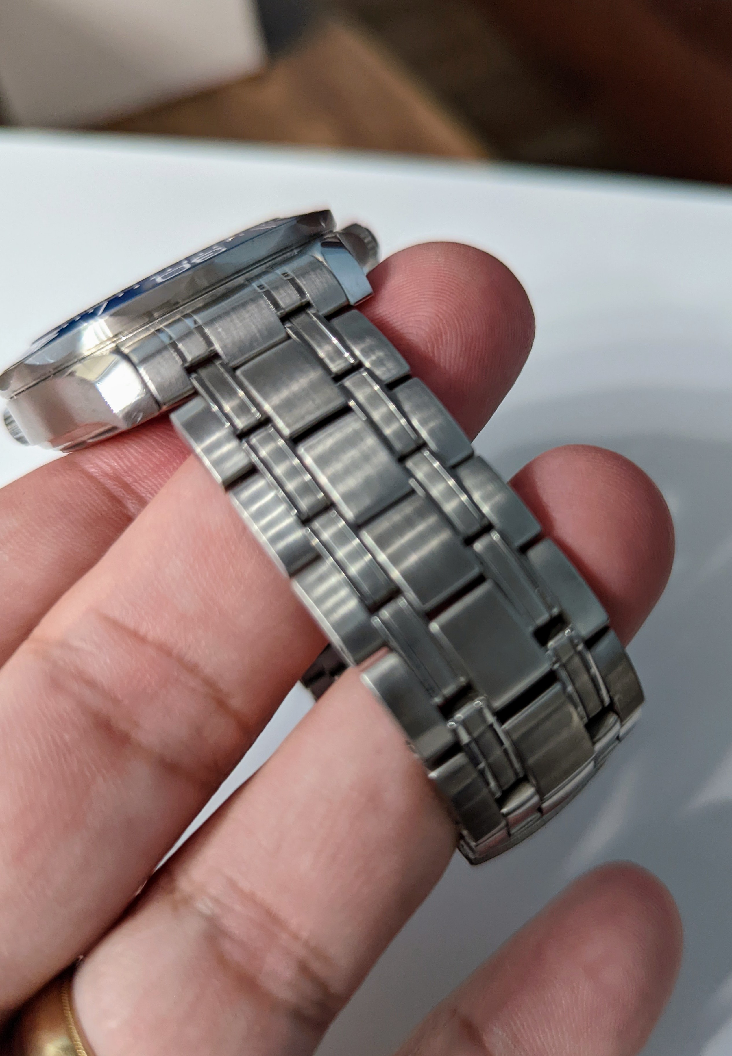 Watch head is in great shape, no scratches or dings. Bracelet has a few scratches on one side. It's seen in pics. It's two years old. I did have the OB install the previous gen clasp because it's a tad thinner. I have original clasp. I'm at 7.25 wrist size and there are two additional links.